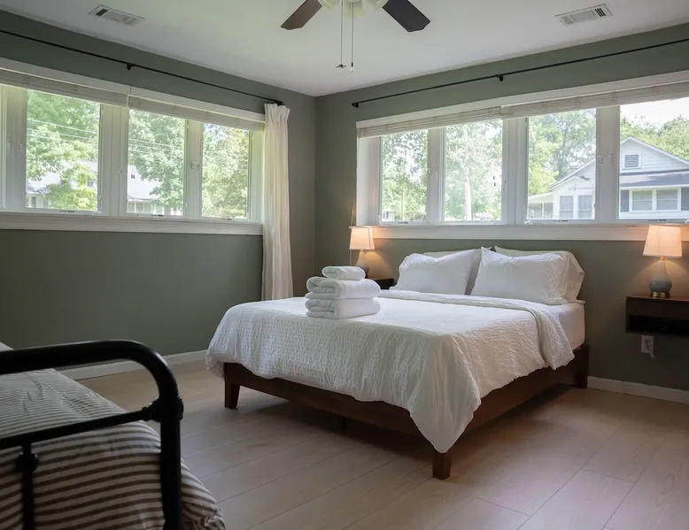 Welcome to your next home away from home! Our guest house is newly renovated and it has the charm of a farmhouse but with some modern touches! Our guest house is attached to the main house with its private entrance on the left side of the home. We are located in the beautiful mountains of NW Georgia just a 6 minute drive to Mentone, AL. Staying with us you will experience staying on a small homestead equipped with chickens (and a rooster) and a small garden on the front and back of the property. The space The space is a nicely curated farmhouse vibe blended with some mid century flare. The guest house is attached to our main home therefore the entrance is on a side door on the left side of the home. Where the guest house is attached to our main house is our large pantry/storage area that we go into sparingly. Upon arrival there is a keypad lock for your convenience and accessibility. As you enter you are greeted by a full kitchen equipped with almost anything you might need. It has plenty of spices, oil, pots and pans and utensils to cook with. We can also provide cast iron pans upon request. We can also provide cast iron pans upon request. We believe in healthy living and that carries over to our Airbnb. We aim to stock the Airbnb with almost all organic ingredients, so rest assure we will always have organic coffee grounds (either Organic Mayorga Dark Roast Coffee or Organic Charleston Coffee Roasters) and organic cane sugar, alongside organic spices at your disposal. Please ☺️ if there is anything that will make your stay more comfortable don’t hesitate to ask us! We would love to provide any extras to the kitchen that you may need. Once you are past the kitchen there is a small hallway where you will have your own thermostat to control the heating and cooling. There is a door on this hallway and this door is the one attached to the main house. The bedroom can sleep 4 people comfortably. There is a Casper mattress queen bed and a trundle twin bed that can be converted to a king. We love natural fibers at the Cloudland Homestead, our linens and towels are made from 100% cotton and our comforter is made of 100% down to make for a comfortable and breathable nights rest! In the bedroom there is armoire with some drawers and space to hang clothing. Once entering the bedroom, to your right is the bathroom. It is beautifully designed to provide a cozy farmhouse vibe with a tinge of modern. It has a large tub with a rain shower head and hand held shower head perfect to bathe kiddos. We have anti slip grips in the shower. The window in the bathroom is south facing and allows a lot of sunlight throughout the day. Guest access Guests can feel free to sit outside on the patio furniture equipped with an umbrella to enjoy a nice meal! Any chicken friendly food left in the airbnb will be donated to our chicken gals ☺️ Other things to note Our guests will enjoy farm fresh eggs! Our ladies are partly free ranged and are only fed organic feed. Things to note: We use Country Save detergent to wash all our linens which is fragrance free and natural. We aim to almost always use natural cleaning products for your safety but will use bleach on occasion when necessary. We have an outside dinning area with 4 chairs and an umbrella reserved just for our guests. It is not a closed off area but our neighborhood is peaceful, quiet and serene. Our aim is to provide our guests with an amazing experience that will draw them back to this beautiful part of the country. During your stay if there is anything that you might need that we do not have stocked please don't hesitate to ask! We are always happy to accommodate and provide any extras you may need ☺️ although we are not a hotel we like to pride ourselves in our hospitality and eagerness to help our guests.