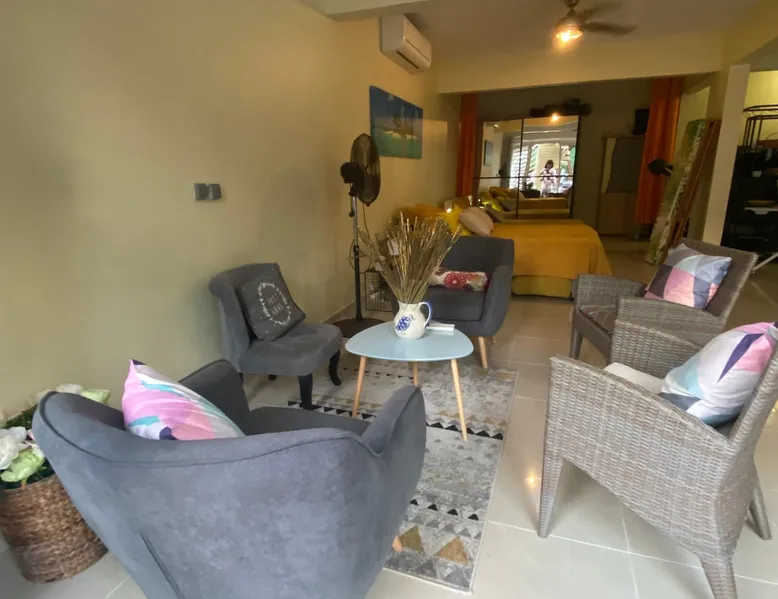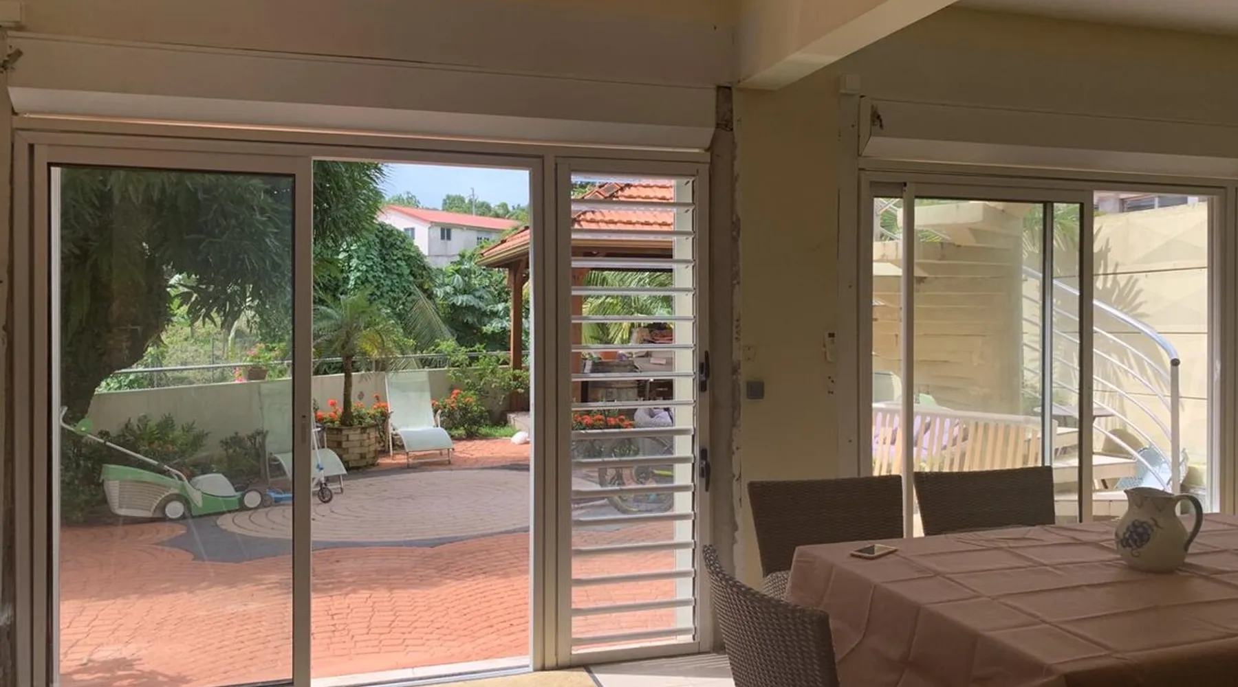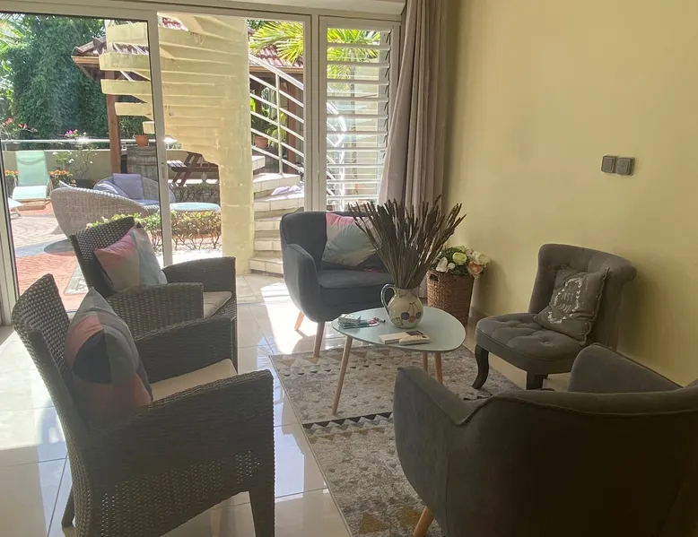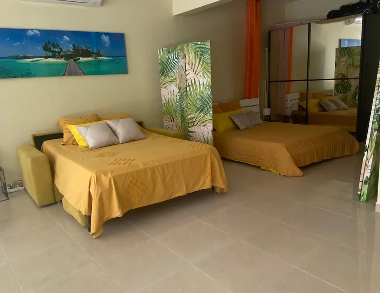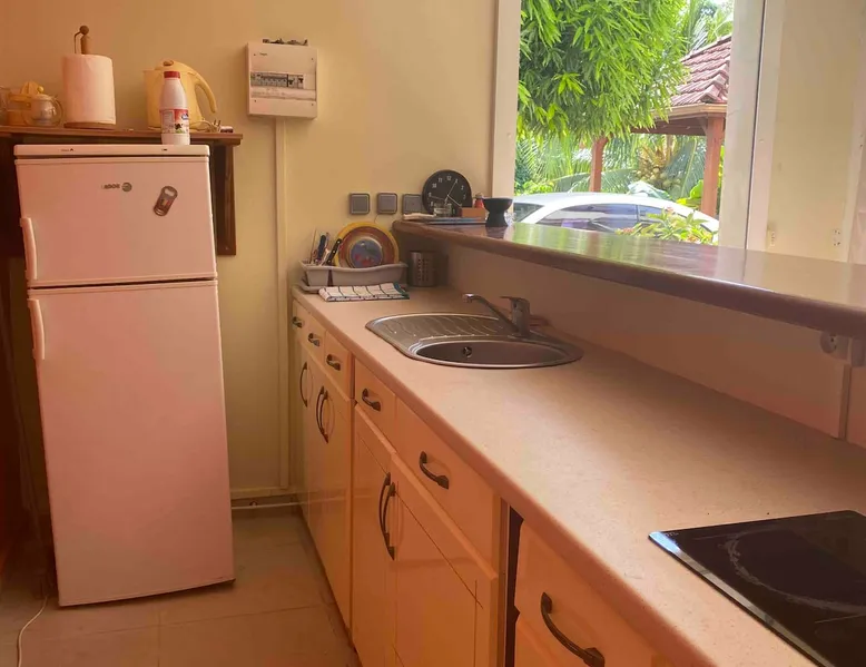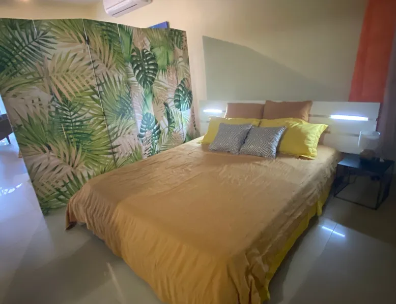 Spacious 100 m2 loft in private subdivision ideally located in Lamentin 2 minutes from La Galléria shopping center, 5 minutes from the airport, 20 minutes from the first beaches. This Loft has an independent entrance and indoor parking. It will be perfectly suitable for guests with or without children wishing to discover Martinique in all its seams thanks to its location allowing you to travel from north to south of the island without making too long trips. The space The 100 m2 loft is composed of a living area, an open bedroom, a dining area, an equipped kitchen, a bathroom. There is a walking mat and an elliptical bike. You have an outdoor courtyard of 100 m2, a gazebo with table bench, a garden furniture Guest access You have a private entrance with remote control electric gate and indoor parking space for your vehicle Other things to note Secure housing with electric roller shutters.