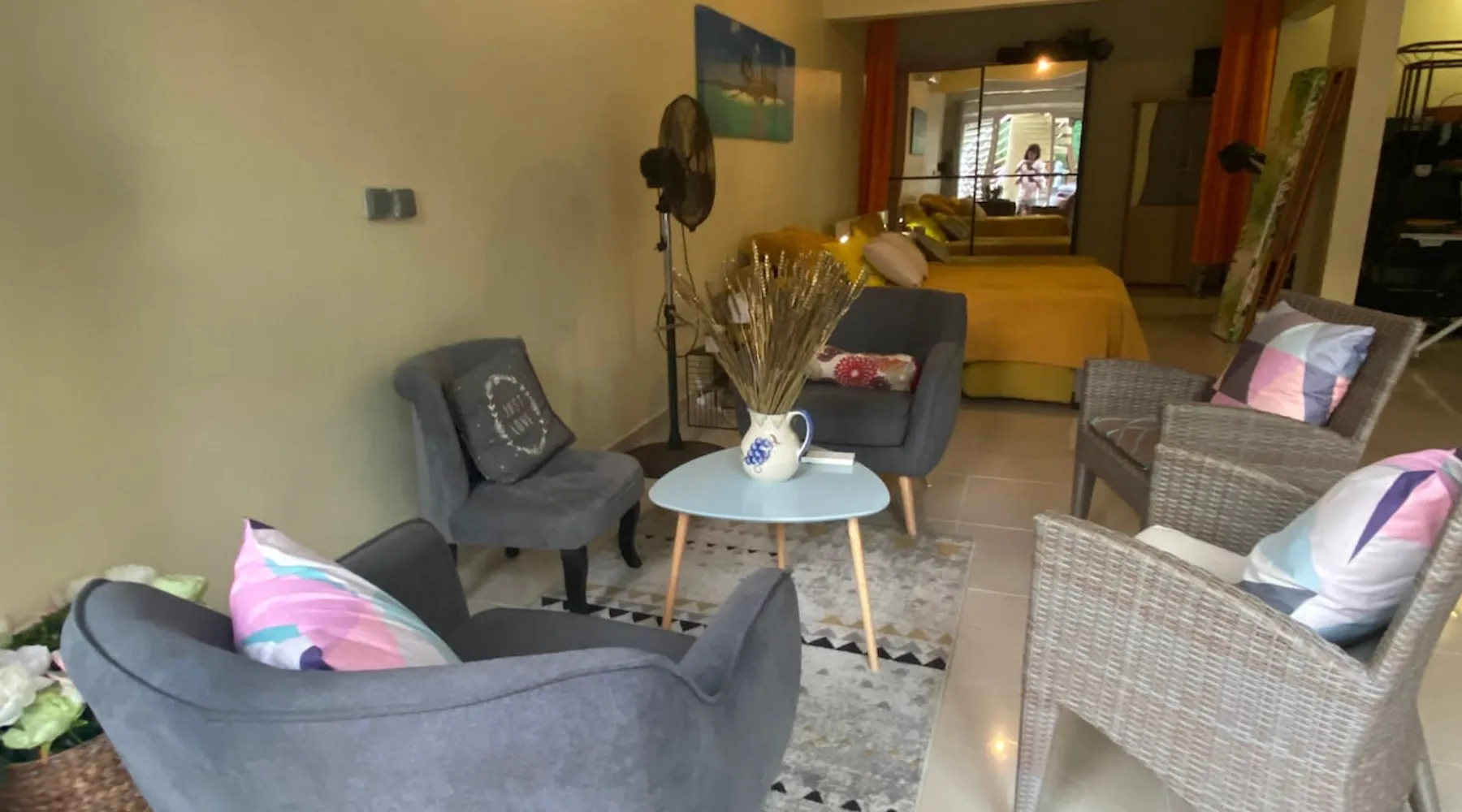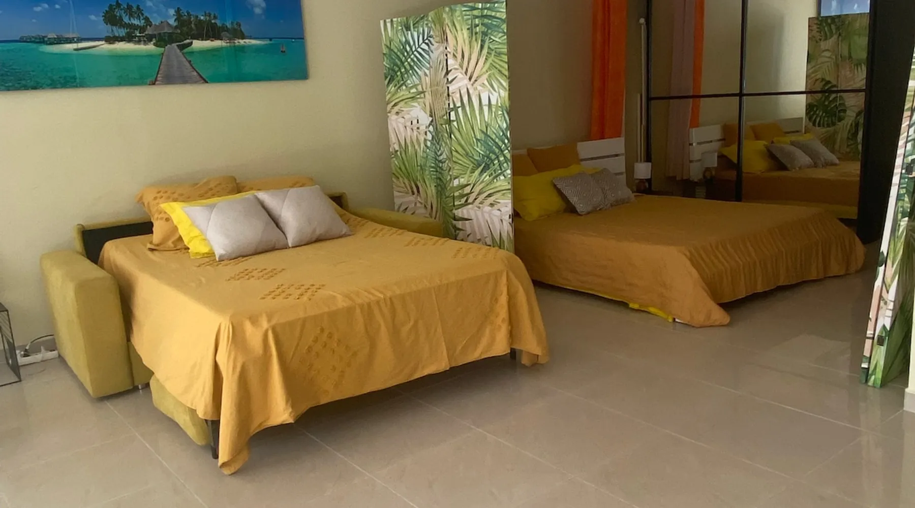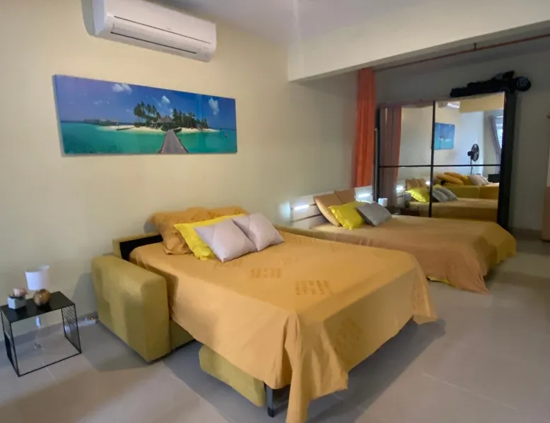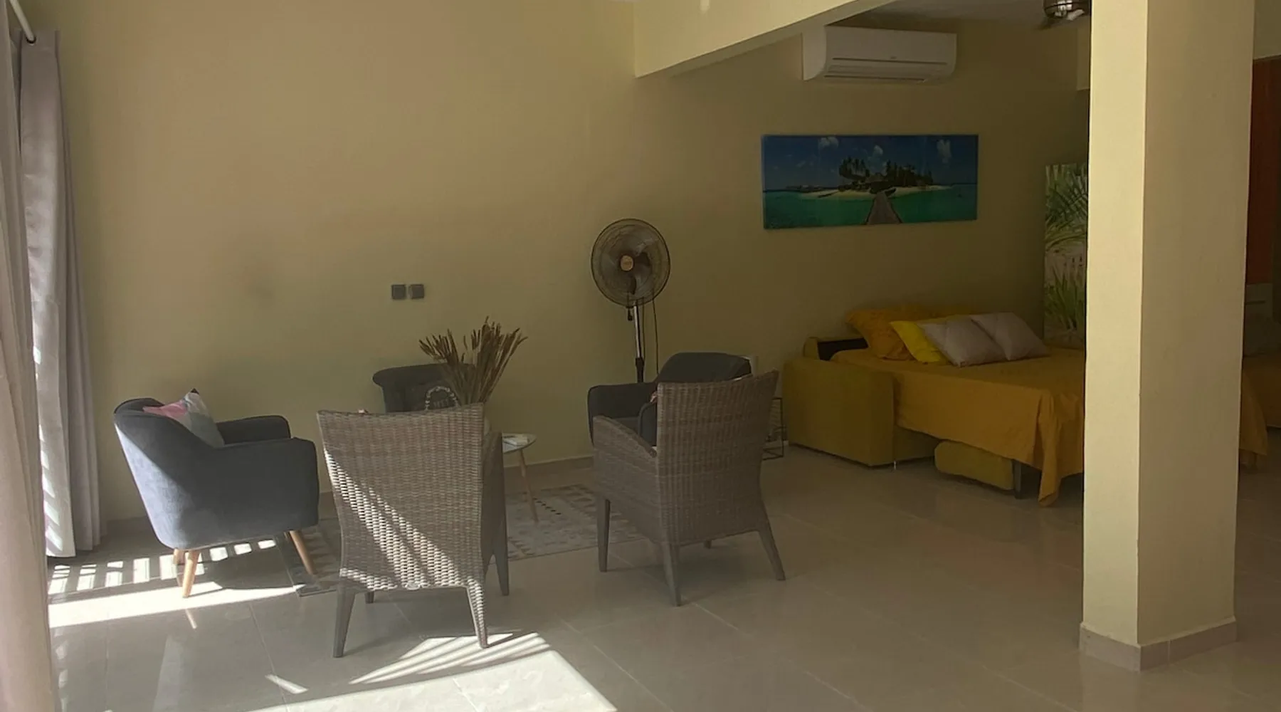 Spacious 100 m2 loft in private subdivision ideally located in Lamentin 2 minutes from La Galléria shopping center, 5 minutes from the airport, 20 minutes from the first beaches. This Loft has an independent entrance and indoor parking. It will be perfectly suitable for guests with or without children wishing to discover Martinique in all its seams thanks to its location allowing you to travel from north to south of the island without making too long trips. The space The 100 m2 loft is composed of a living area, an open bedroom, a dining area, an equipped kitchen, a bathroom. There is a walking mat and an elliptical bike. You have an outdoor courtyard of 100 m2, a gazebo with table bench, a garden furniture Guest access You have a private entrance with remote control electric gate and indoor parking space for your vehicle Other things to note Secure housing with electric roller shutters.
