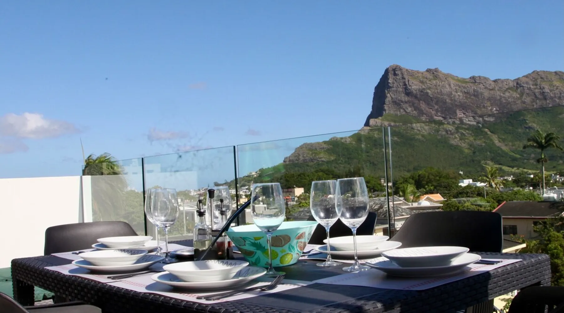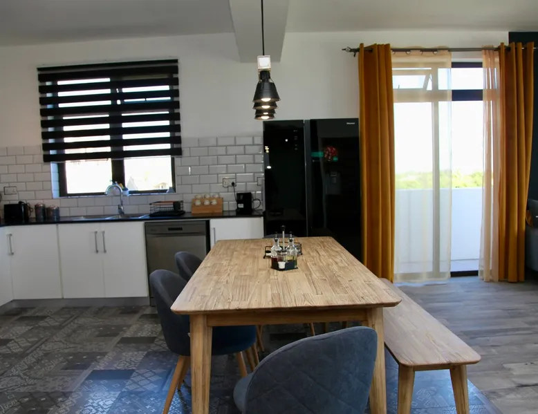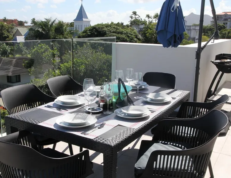 Luxury 3 bedroom penthouse in a very residential area in Quatre-Bornes. The Penthouse has three fully furnished bedrooms, 3 bathrooms, 3 toilets, a fully equipped modern American kitchen, a spacious dining room and a large friendly living room. All rooms open onto a large balcony terrace with a splendid view of the mountains. A laundry room and private parking complete this property. Penthouse in a closed and secure residence Other things to note Close to essential amenities such as the city center with its lively market, supermarkets, pharmacies, restaurants, shopping malls. The metro and bus station are a five-minute walk from the Penthouse. You will also find the municipal swimming pool (Pavillon Swimming Pool) and the Jean Roland Delaitre Sports Complex. Ebène is only about a five-minute drive away while the Flic en Flac seaside resort is a 20-minute drive away. Access to the sandy beaches of the North is about 45 minutes by car while the capital Port Louis is about 15 minutes by car. After your day at the beach, find peace and quiet for an exceptional stay.