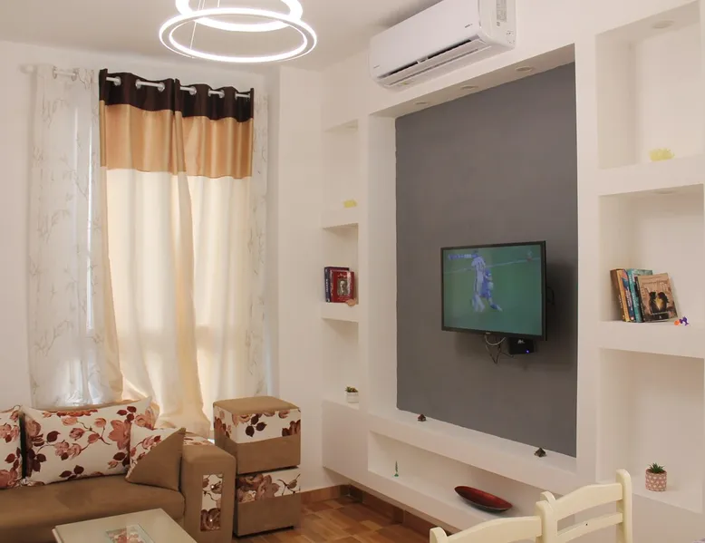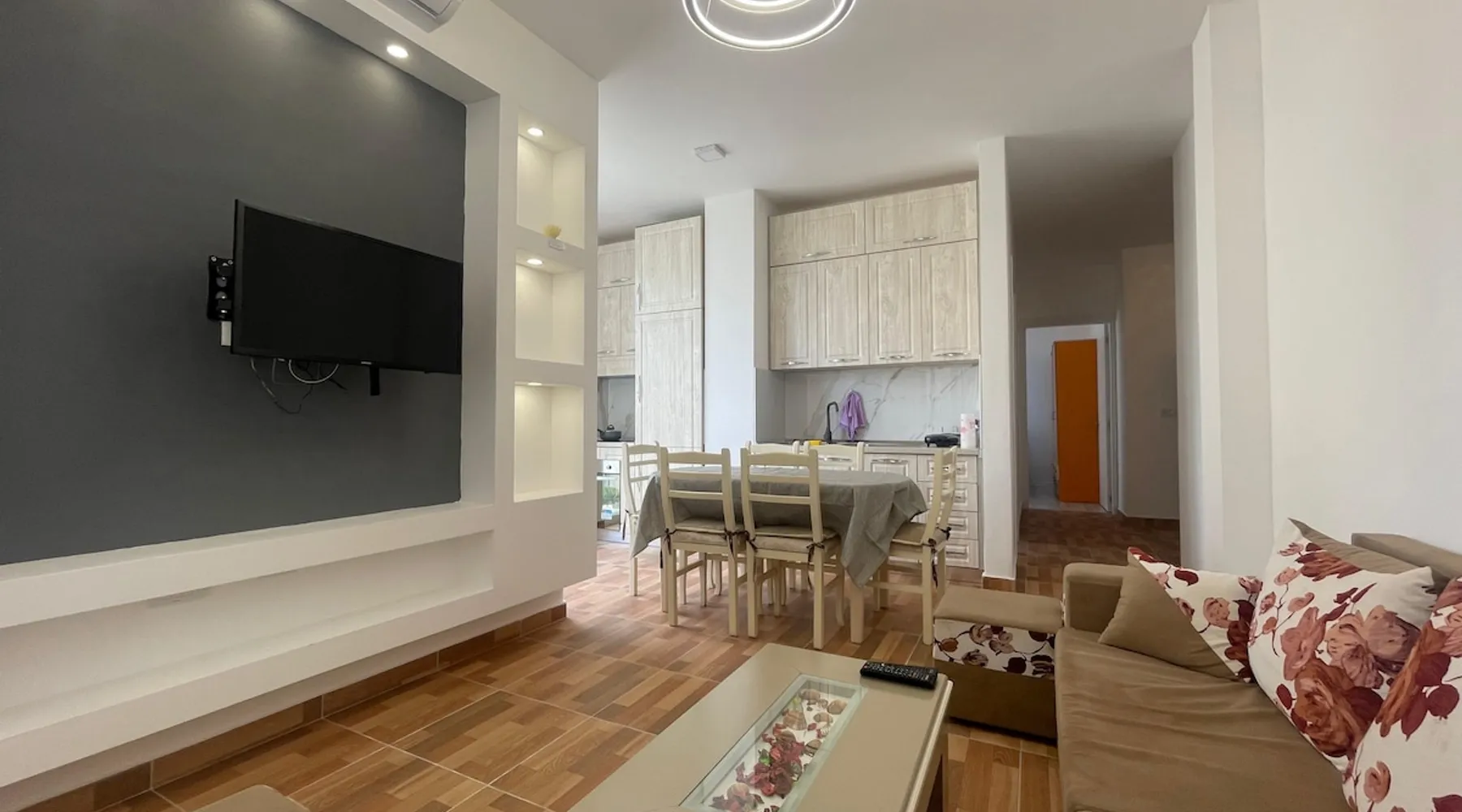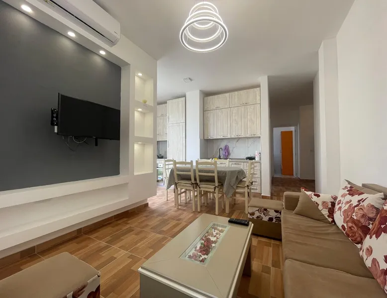 Welcome to your serene escape in Shengjin! Our spacious two-bedroom apartment offers the perfect blend of comfort and convenience, ideal for families or groups seeking a tranquil retreat. The space The construction of the building was completed in 2024, boasting contemporary standards. The building is also designed with ample natural light and modern lighting fixtures, enhancing its ambiance and functionality. It is equipped with accessibility features including lifts and ramps, ensuring ease of movement for all occupants. It offers abundant free outdoor parking space for its residents. It is going to be a home away from home for you as it has all the amenities like ironing facilities, fully-equipped kitchen, fast internet, washing machine and so on. We can't wait to welcoming at our apartment.
