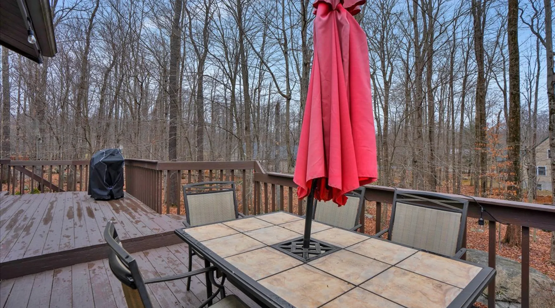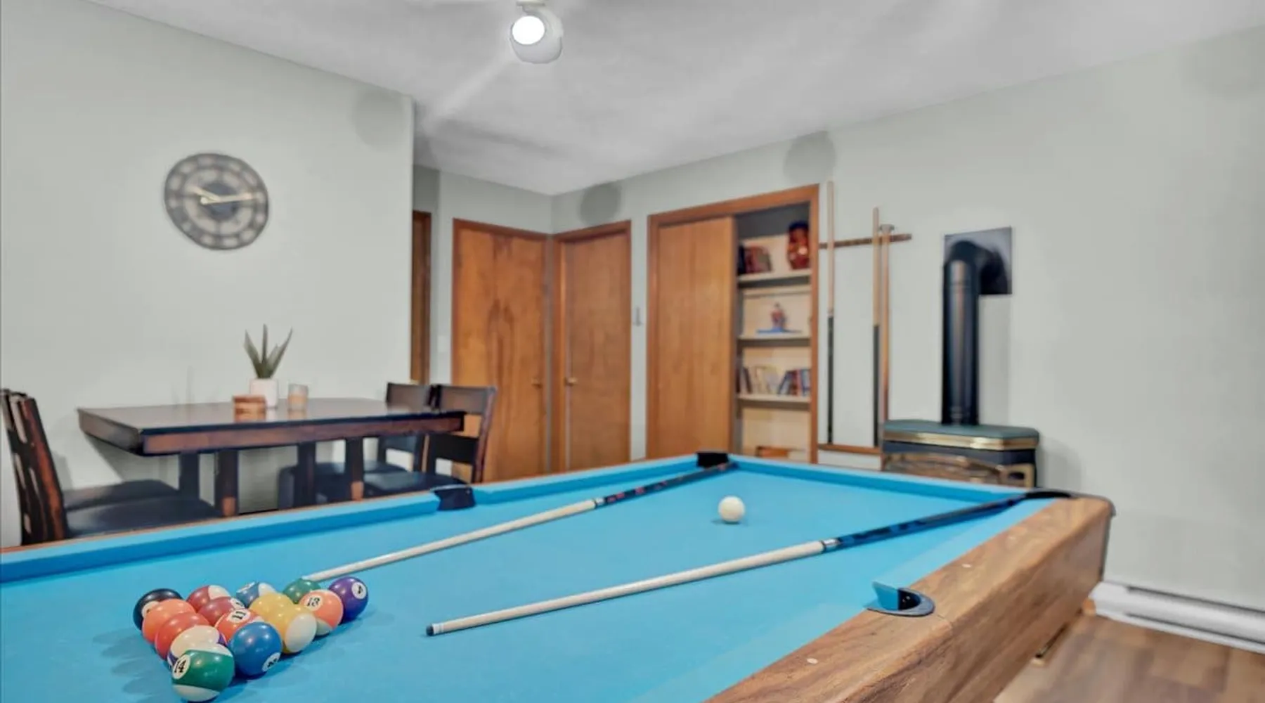 Bring the whole family to this centrally located Pocono Mountain retreat. This 4 bedroom, 2 bathroom home is in the amenity filled Big Bass Lake community and only a short drive from several ski mountains. This warm and inviting vacation rental features everything you need for a relaxing and entertaining stay. Enjoy watching the wildlife from the huge back deck, hang out around the outdoor fire pit, or stay entertained inside with a pool table, downstairs bar, smart TVs and a loaded game closet. The space This spacious home is located on a quiet cul-de-sac and is the perfect place for large families or groups of friends to relax and explore the area! There are 4 bedrooms including: - Master bedroom with king sized bed - Bedroom 2 with one queen bed - Bedroom 3 with 2 queen beds - Bedroom 4 with twin bunk beds and a full sized bed Indoor Living: - 4 smart TV's & wifi - Fully equipped kitchen with all the cooking and dining essentials, microwave, toaster and coffee bar with Keurig & traditional coffee maker - 2 gas fireplaces - Pool table - Downstairs bar (byob) - Stocked game closet and Super Nintendo game console Outdoor Living: - Large Private Deck - Blackstone outdoor griddle - Fire pit - Great scenery and lots of wildlife General: - Baseboard heating and 2 A/C split units (one in the upstairs living room and one in the master bedroom) - Washer / dryer - Linens / towels / beach towels provided - Pack & play crib and high chair - Complimentary toiletries Big Bass Lake Community Amenities (addt'l fee paid on site): - 2 lake beaches within a 5 minute drive - Indoor pool (winter) and outdoor pool (summer) - Splash Pad - Playground - Tennis and pickleball courts Guest access Guests will have access to the entire property except for the locked garage and 2 private locked closets inside.
