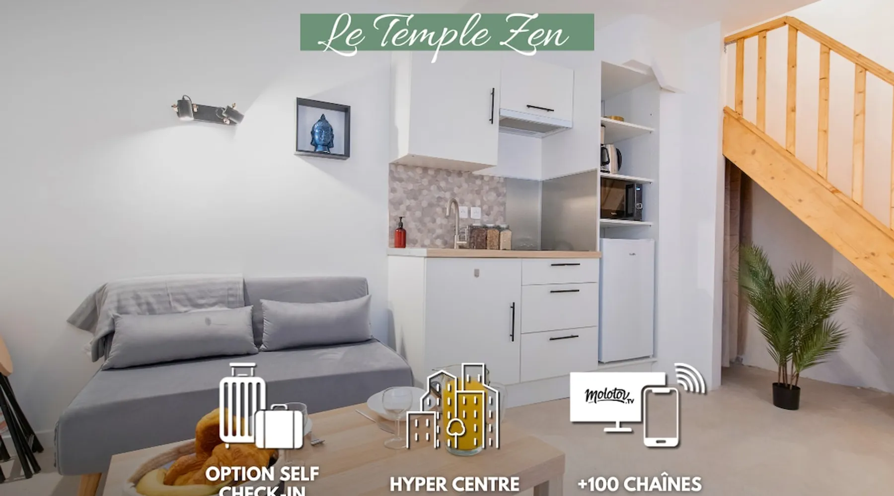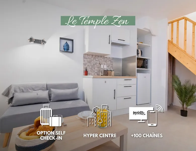 Do you want to sleep in the city center close to everything in the renovated and equipped Duplex Le Temple Zen? You are at the bottom of a courtyard for peaceful nights and have all the comforts to eat (equipped kitchen), entertain yourself (Smart TV, high speed internet) and rest (private bathroom, double bed). The accommodation is comfortable for 2 and up to 3 on request. Book now or contact us at the bottom of this page if you want to have a great stay:) The space FULL COMFORT – Bedroom with a well-designed bed for adults (140x200) – A fully equipped kitchen for great meals. – Extra bed for 1 other person with our sofa bed in the living room (120 × 190) – One en-suite – Small and large bed linen and bath towels -Iron, ironing board and vacuum cleaner – A Smart TV with more than 100 channels and the ability to connect to Netflix sound. – A free laundry and luggage storage area upon request – Hi-Speed WiFi for working or relaxing IMPERIAL CALM – An indoor patio for coffee and quietly relaxing. – Quiet one-way street, but within walking distance of all amenities. HYPER CENTRAL – Paid parking around the accommodation (Indigo Les Capucins) or free a little further away (Parking Sub-prefecture) – Possibility to park on the street directly, places are free from 6pm to 8:30 am and from 12pm to 1.30 pm. Outside of these times, you will need to take a ticket at the parking meter. – 10 minute walk to Compiègne Train Station. – Less than 5 minutes to the castle and town hall. Discover the historical and natural richness of Compiègne, where the majestic castle and vast forest await you for unforgettable moments. Soak up the peaceful atmosphere of the Imperial Palace Park and explore fascinating museums like the historic figure. Finally, relax along the banks of the Oise and enjoy the simple pleasures of life in this charming city. When you book, you will receive a guide to organize your stay in our beautiful city, and we are always at your disposal to answer any questions you may have. Book now for an unforgettable getaway in the heart of the Imperial City. Guest access the Entire Apartment. The indoor patio is shared. Shared luggage storage upon request. Please note that the apartments are in a historic building with a staircase, this can be uncomfortable for some people or to carry large luggage. Other things to note The bed in the home is comfortable for 1 or 2 people. If you decide to use the sofa bed in addition, please select the number of people suitable for booking so we can provide the necessary bedding.