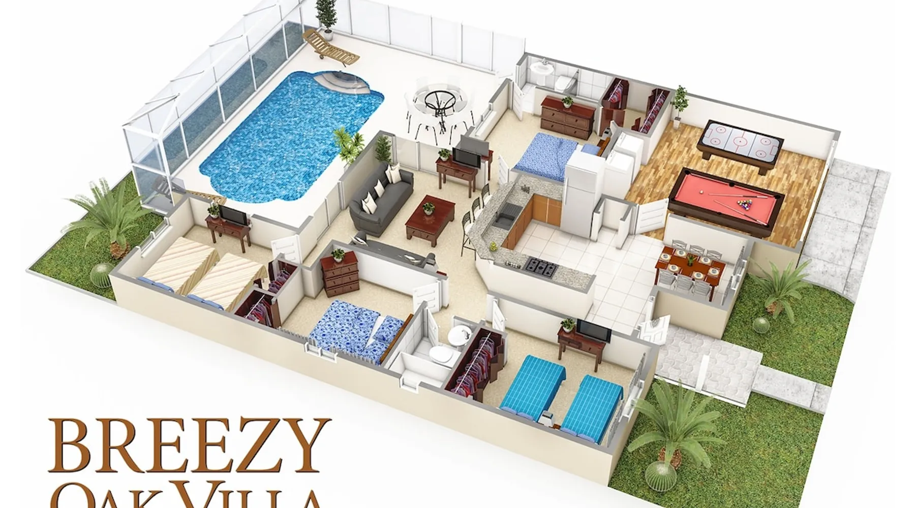 TripAdvisor Cert. of Exc! 150+5-Star Reviews & 16 yrs in business! New to AirBnB! Featuring an amazing, intimately private pool area in a tropical retreat located just two miles south of the Disney World Property. The most relaxing place you'll ever experience on vacation, Breezy Oak Villa is the perfect place to enjoy your spouse, or the whole family in a unique retreat hidden away, but still so close to all the action of Central Florida! The space Hidden away on the edge of a beautiful conservation area, with a pool surrounded by forest and lush landscaping, this terrific villa provides tranquility, intimate privacy and safety, yet is a short fifteen minute drive to the Magic Kingdom in Disney World. You’ll cherish the memories you make in this comfortable 4 bed/2 bath villa that raises the standard for Orlando vacation rentals. Forget no rear neighbors! How about no SIDE neighbors? Enjoy the amazing privacy of Breezy Oak Villa! You’ll quickly appreciate the care and attention to detail that goes into this beloved Florida home. Everything is considered, planned and provided to make your stay the best it can be. Please also see our other properties: Happy Oak Villa, with an identical floor plan – located only two doors away, and Pleasant Oak Villa, with 40+ 5-Star Reviews! Important Notes: Christmas Bookings Due to the Holiday Season being a Peak Demand time in Orlando, bookings are subject to the following requirements: Bookings are subject to a minimum charge of one week/seven nights. One week bookings may include either Christmas Eve through Boxing Day (the day after Christmas), or New Year’s Eve and New Year’s Day, but not both. In other words, one week (or less) bookings MUST have an arrival or departure date on December 27th through December 29th. This is done to leave a full week available around the unbooked holiday for other guests to book. Bookings which fail to meet this criteria, regardless of length, will be subject to a minimum charge of two weeks/fourteen nights. In other words, a guest could book only six nights, for example December 26th to January 1st, but would be subject to the minimum fourteen nights charge. The minimum periods/charges apply to any additional or extra options added to the rental. Your understanding is appreciated. A $500 Security/Account Deposit will be taken by uncharged Credit Card Authorization just prior to your arrival. This will be administered outside of AirBnB. Now with the small print out of the way, read on to discover just what makes Breezy Oak Villa so Amazingly Private! The Villa This fully air-conditioned villa comfortably sleeps eight people (on recent quality mattresses) in four bedrooms, each with its own closet. (We don't use a sofa bed to increase capacity). Three double bedrooms (2 Twins, 1 Queen, 2 Twins) and the main bath (sink, toilet, tub w/shower) are located on one side of the home, while the master bedroom (King Double Pillow-Top Mattress) with ensuite (sink, toilet, large walk-in shower with direct access to the lanai) and walk-in closet is located on the other side of the home. You’ll find the kitchen well-equipped with quality appliances, cutlery and cookware for family meals, far beyond the typical area vacation home standards. Quality furniture, electronics, and games room allow you to enjoy your vacation in carefree style. The open layout home encourages everyone sharing and enjoying their time together, while the four bedrooms allow them to retreat to their own private space when desired. And the pool… Oh, the pool! The pool at Breezy Oak Villa is truly a piece-of-heaven on earth. Enjoy relaxing in the 89º degree water (with Optional Pool Heating at an extra charge), listening to tropical birds in the forest beyond, serenading you as your troubles float away on a gentle Florida breeze. One of our first guests described Breezy Oak Villa as the most relaxing place he’s ever been on vacation. It truly is! The lounge opens out to the Lanai (covered deck) which overlooks the pro-maintained South-facing pool, completely covered by a screen enclosure to keep out insects and debris. A separate entrance gives access to the pool from the master bath. Jump out of the pool and into the shower to warm up and rinse off! Amazing Privacy Unlike most vacation homes, Breezy Oak Villa provides true privacy! The Villa has no rear neighbors, and it has practically no SIDE neighbors as well! See photographs. The pool is surrounded by a landscaped yard, bordered by tropical forest. The villa surrounds the pool and lanai on the other two sides. No one will be watching you in your pool, and you won't be looking at them in theirs either! No barking dogs, obnoxious or noisy neighbors to bother you... just the sounds of nature and your own family splashing in the clear water of your very private pool under the warm Florida sun! (As you study vacation rentals, pay close attention to the proximity of neighbors to the pool enclosure, especially on the side of the home. You’ll discover that a ‘private’ pool usually isn’t so private after all, even at homes without rear neighbors.) Security and Convenience Amenities like Fibre-Optic Internet and Streaming TV, with Hi-Speed Wifi, a video library of kids and family movies, X-Box console, TVs in every bedroom, an AIR CONDITIONED games room with a quality slate pool table and full-size air hockey, provide hours of fun for our guests. Even though the home is located in a very safe area, we take the security and comfort of our guests seriously. Emergency lighting, fire extinguishers, pool safety alarms, smoke detectors, remote monitored alarm system, CCTV cameras monitoring the exterior front and sides (only) of the home, electronic door locks and automatic patio door closers, along with remote-monitored heating, A/C, hot water, electrical, internet, pool pump and heating, mean we can promptly provide service if needed (often before guests are aware of an issue). Location Just ou
