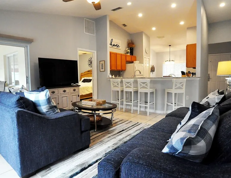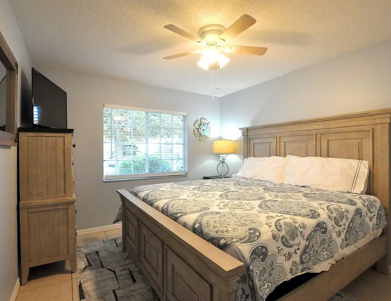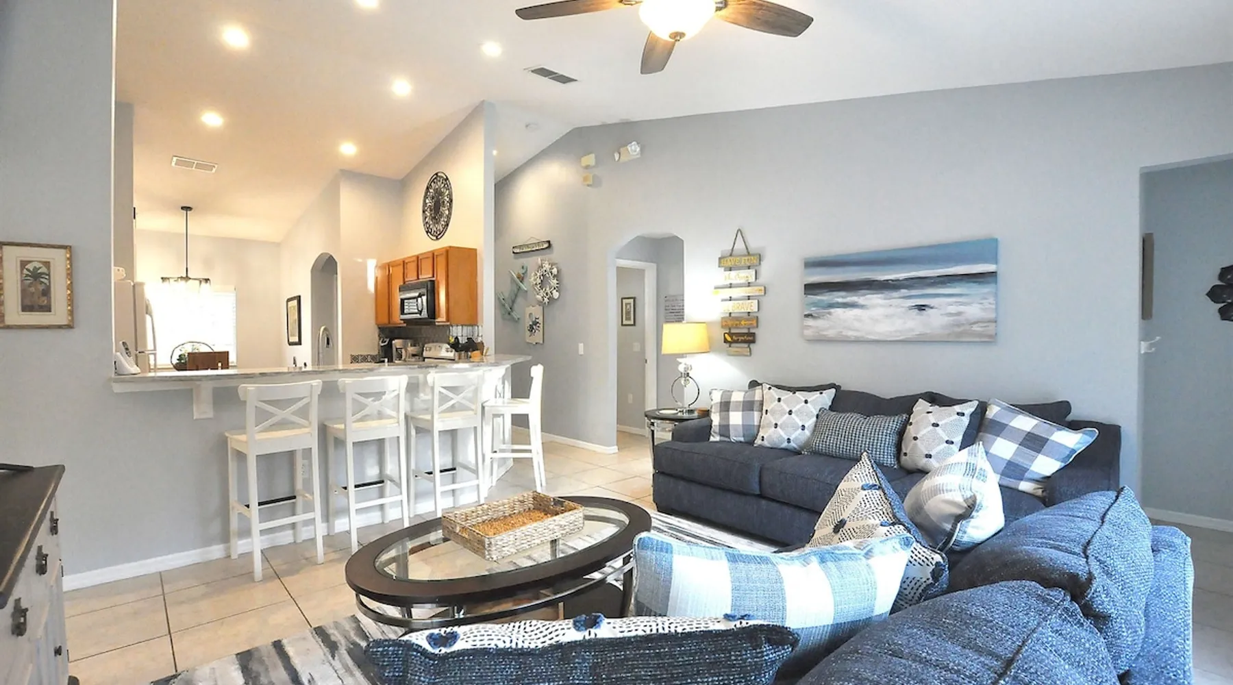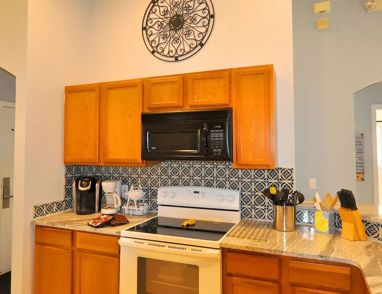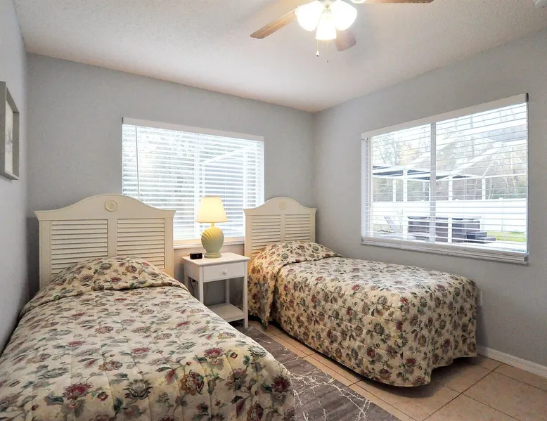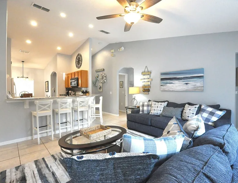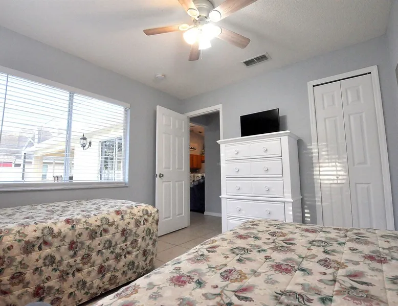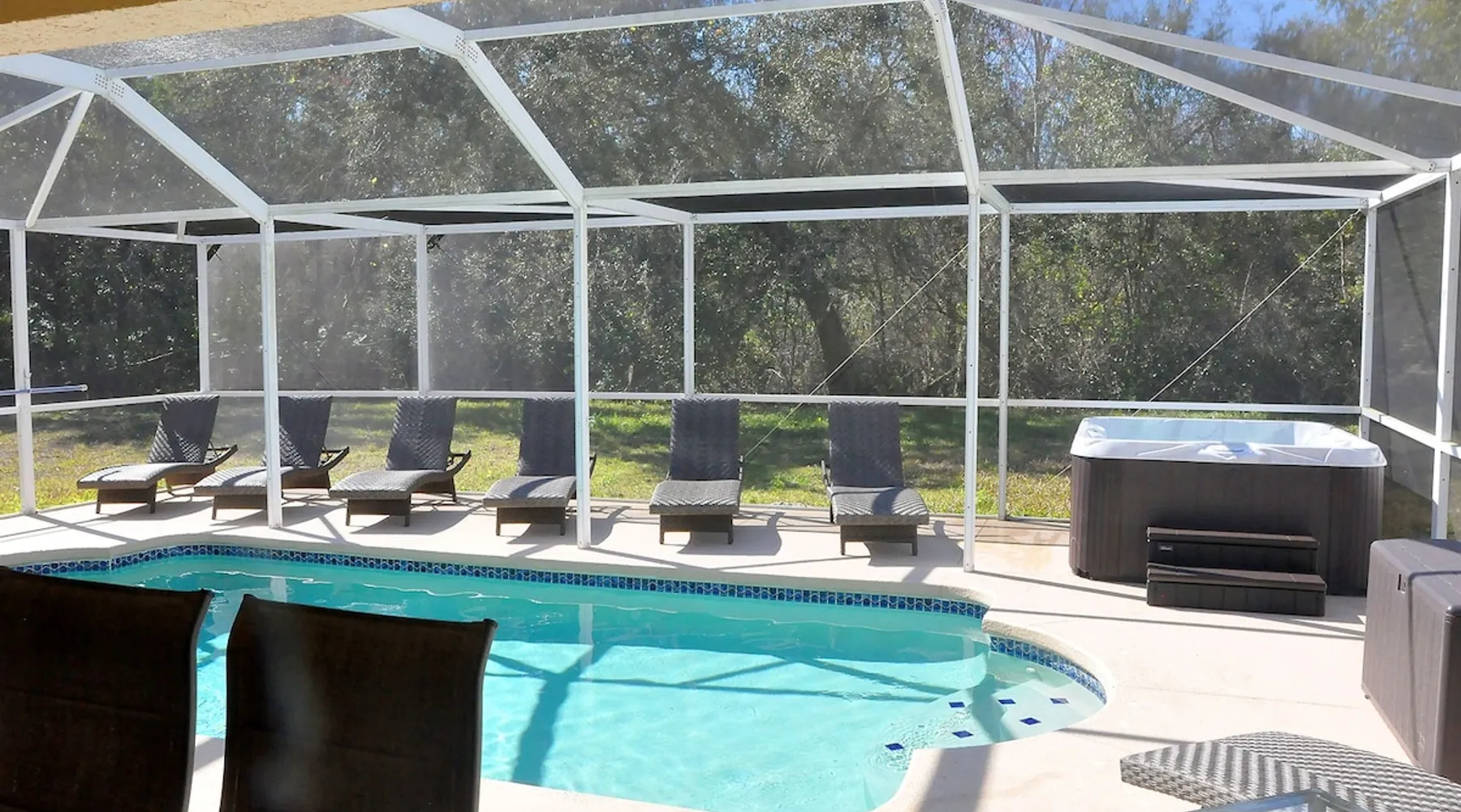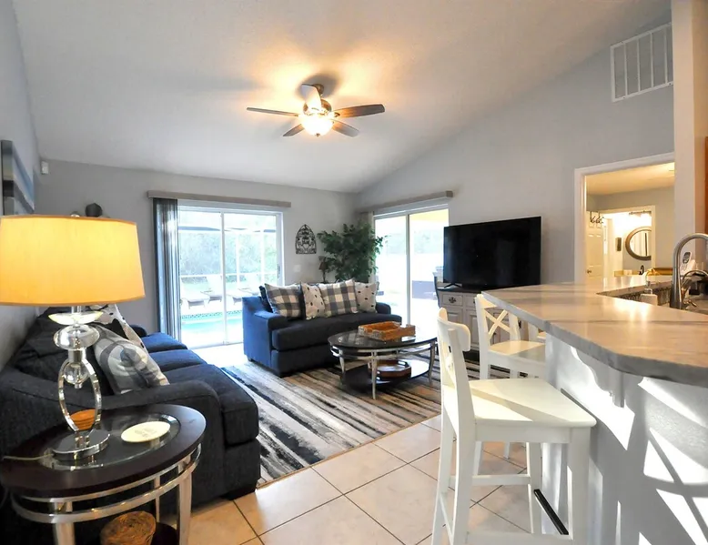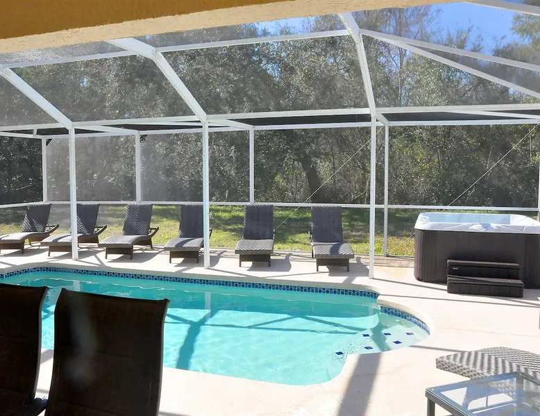 Recently renovated (January 2023) our 'Beach House in Orlando' features an expanded South-West facing pool deck with hot tub and lots of loungers. Your family will love the private mini-resort we've created just for them in a wonderful location just two miles south (15-20 minute drive to MK parking) of the Walt Disney World Resort Property. Besides the villa you'll enjoy a full games room featuring slate pool table, high-end foosball, and classic video arcade game! The space Welcome to Happy Oak Villa... our Happy Place, and soon to be yours too! The newest property to join the Breezy Oak Villas family. Photos taken January 2023. Please also see our other properties: Breezy Oak Villa, with an identical floor plan – located only two doors away, with 50+ 5-Star Reviews, and Pleasant Oak Villa, with 40+ 5-Star Reviews! Important Notes: Christmas Bookings Due to the Holiday Season being a Peak Demand time in Orlando, bookings are subject to the following requirements: Bookings are subject to a minimum charge of one week/seven nights. One week bookings may include either Christmas Eve through Boxing Day (the day after Christmas), or New Year’s Eve and New Year’s Day, but not both. In other words, one week (or less) bookings MUST have an arrival or departure date on December 27th through December 29th. This is done to leave a full week available around the unbooked holiday for other guests to book. Bookings which fail to meet this criteria, regardless of length, will be subject to a minimum charge of two weeks/fourteen nights. In other words, a guest could book only six nights, for example December 26th to January 1st, but would be subject to the minimum fourteen nights charge. The minimum periods/charges apply to any additional or extra options added to the rental. Your understanding is appreciated. A $500 Security/Account Deposit will be taken by uncharged Credit Card Authorization just prior to your arrival. This will be administered outside of AirBnB. Now with the small print out of the way, read on to discover just what makes Happy Oak Villa so Magical! Located on the edge of a beautiful conservation area, with a yard backed by forest and lush landscaping, this terrific villa provides tranquility, privacy and safety, yet is a short fifteen minute drive to Disney World. You’ll cherish the memories you make in this comfortable and beautiful 4 bed/2 bath Orlando vacation rental. Situated on a on a large pie-shaped lot at the back of a cul-de-sac, Happy Oak Villa will bring peace and tranquility to your vacation! You’ll love the care and attention to detail that goes into this beloved Florida home. Everything is considered, planned and provided to make your stay the best it can be. The Villa This fully air-conditioned villa comfortably sleeps eight people (on recent, quality mattresses) in four bedrooms, each with its own closet. (We don't use a sofa bed to increase capacity). Three double bedrooms (1 King, Twin/Double Bunk, 2 Twins) and the main bath (sink, toilet, tub w/shower) are located on one side of the home, while the master bedroom (Queen Double Pillow-Top Mattress) with ensuite (sink, toilet, large walk-in shower with direct access to the lanai) and walk-in closet is located on the other. You’ll find the kitchen well-equipped with quality appliances, cutlery and cookware for family meals, far beyond typical area vacation home standards. New Quartz Countertops and hand-made Mexican Tile BackSplash accent the kitchen! Quality furniture, electronics, and games room allow you to enjoy your vacation in style. The open layout encourages everyone sharing and enjoying their time together, while the four bedrooms allow them to retreat to their own private space when desired. Private Pool & Hot Tub The pool at Happy Oak Villa is a wonderful bonus you'll love to use. Enjoy the 89º degree water (Optional Pool Heating available at extra charge) while listening to tropical birds in the forest beyond, serenading you as your troubles float away on a gentle Florida breeze. In the evenings, wind down in the relaxing hot tub on the expanded pool deck. Both pool and spa are professionally maintained for you. All you have to do is enjoy them! The lounge/living room opens out to the Lanai (covered deck) which overlooks the SouthWest-facing pool, covered by a screen enclosure to keep out insects and debris. A separate entrance gives access to the pool from the master bath. Jump out of the pool and into the shower to warm up and rinse off! Wonderful Privacy Unlike many vacation homes, Happy Oak Villa provides great privacy with no rear neighbours! The pool overlooks a large yard, bordered by 6' solid fence on two sides and a small pond & tropical forest at the back. No one will be watching you in your pool, and you won't be looking at them in theirs either! No barking dogs, or obnoxious or noisy neighbors to bother you... just the sounds of nature and your own family splashing in the clear water of your very private pool under the warm Florida sun! (As you study vacation rentals, pay close attention to the proximity of neighbors to the pool enclosure, especially on the side of the yard. You’ll discover that a ‘private’ pool usually isn’t so private after all, even at most homes without rear neighbors.) Security and Convenience Amenities like Fibre-Optic Internet and Streaming content plus 80 live channels, with Hi-Speed WiFi, TVs in every bedroom, a games room with a gorgeous slate pool table, quality foosball table and commercial arcade video game with hundreds of games, provide hours of fun for our guests. Even though this home is located in a very safe area, we take the security and safety of our guests seriously. Emergency lighting, fire extinguishers, pool safety alarms, smoke detectors, remote monitored alarm system, and electronic door locks, along with remote-monitored heating, A/C, hot water, electrical, internet, pool pump and heating, mean we can promptly provide service if 