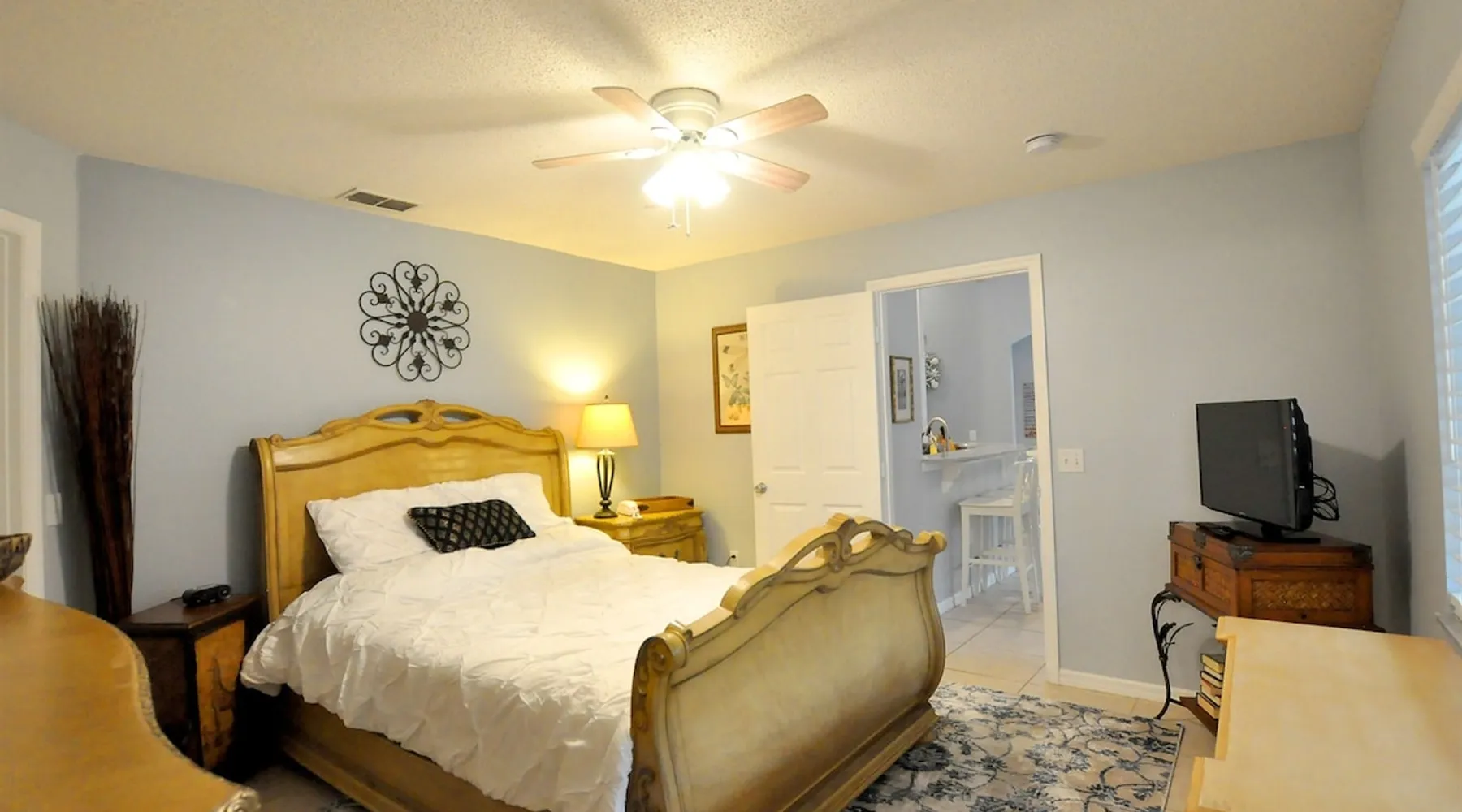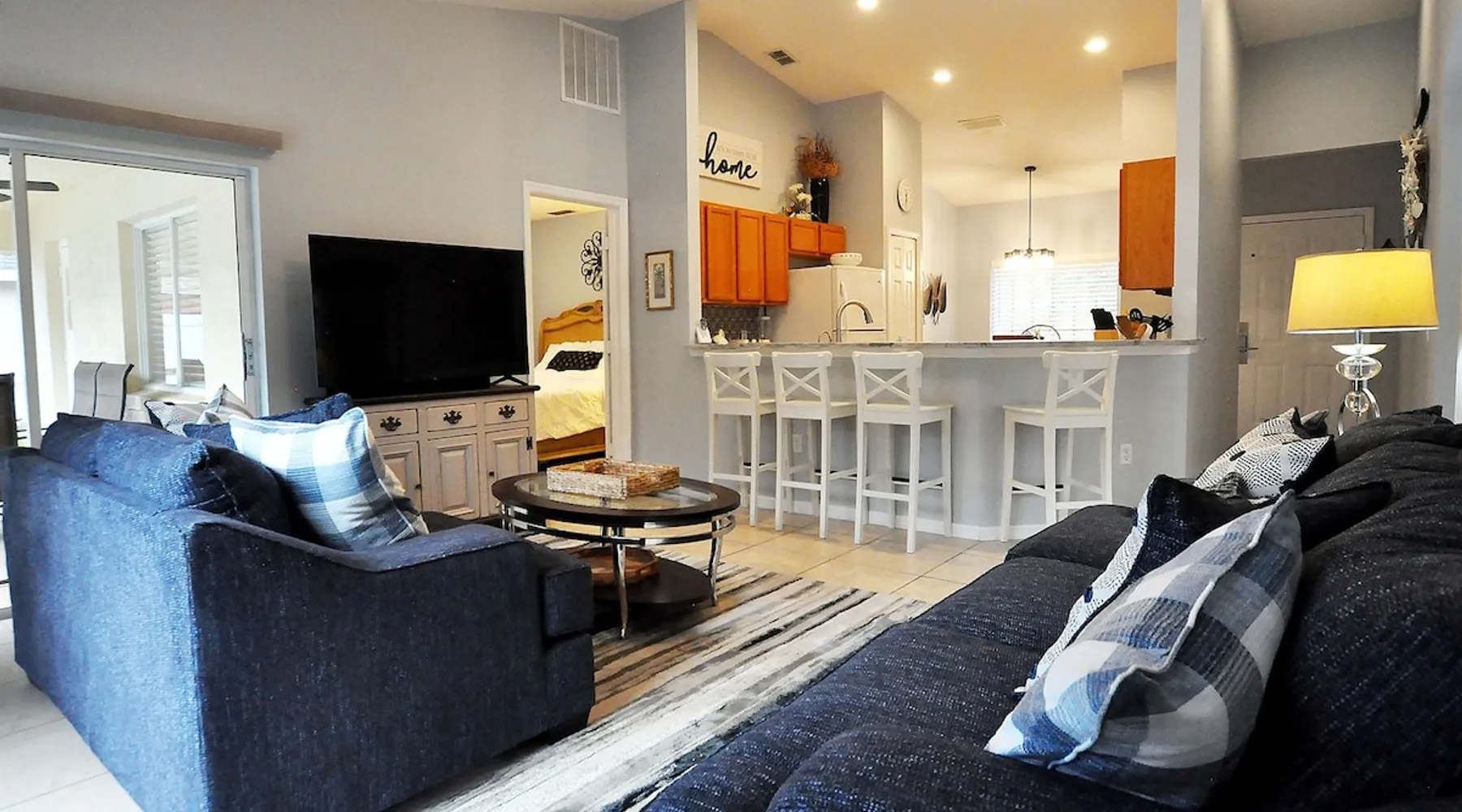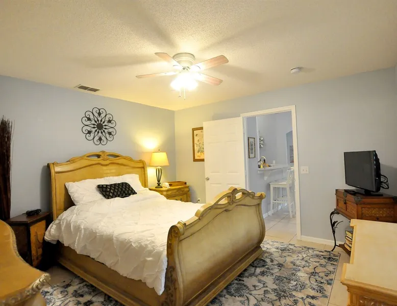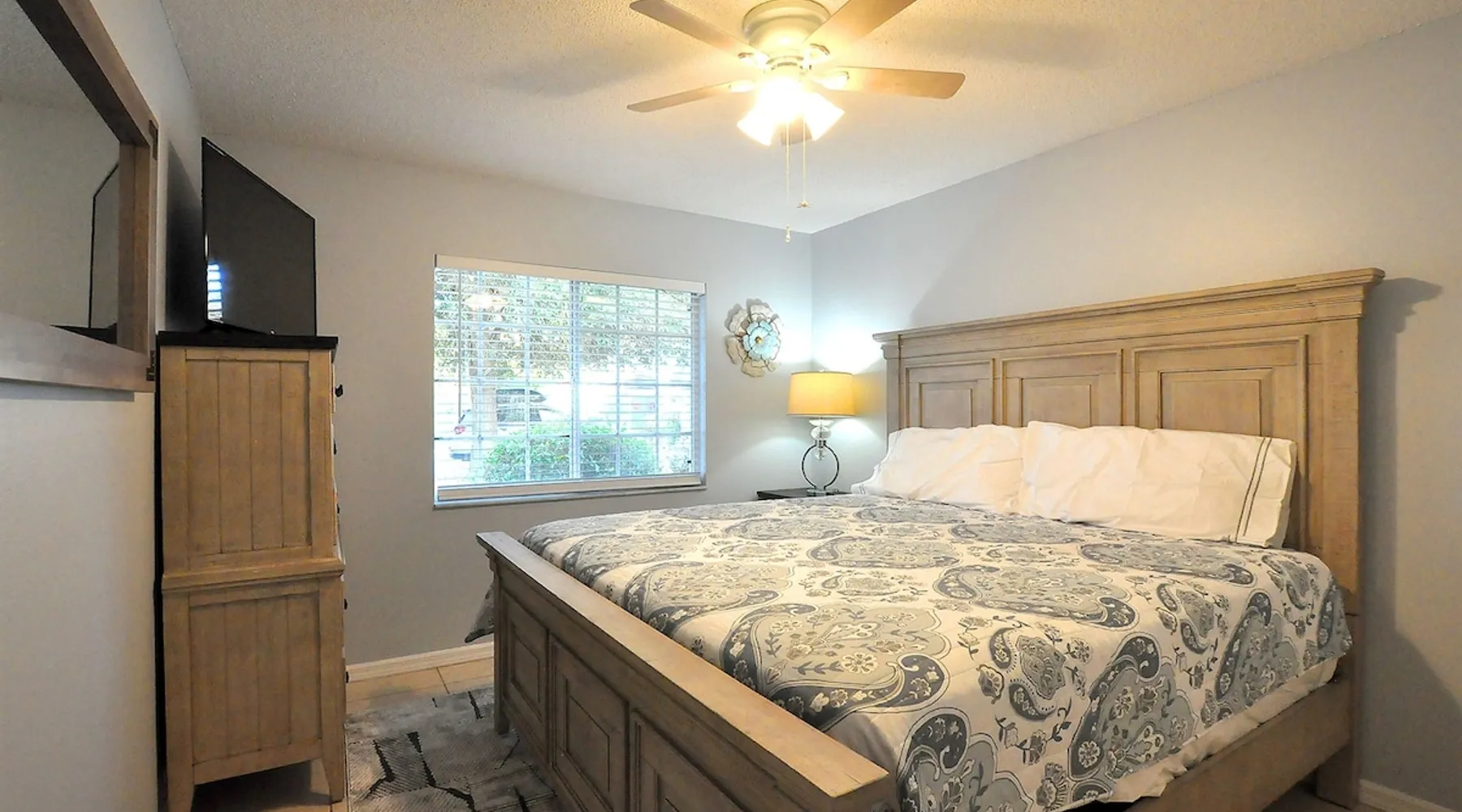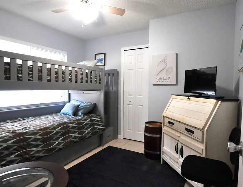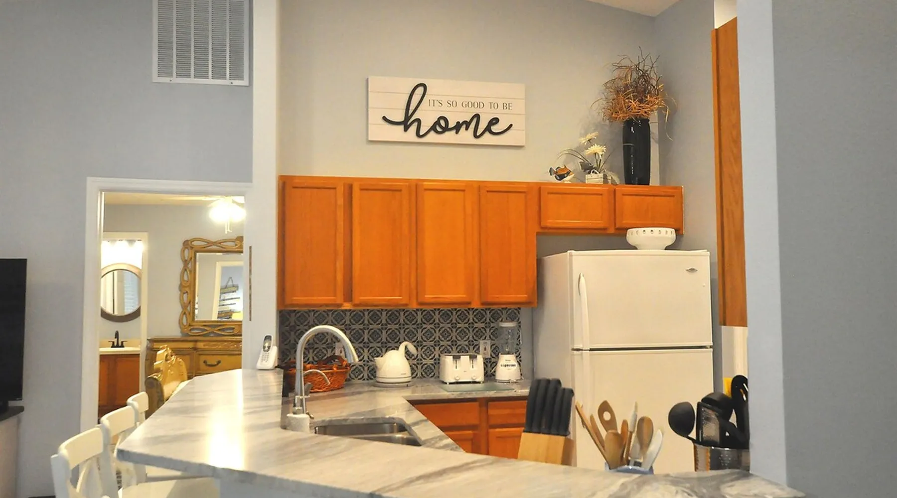 Recently renovated (January 2023) our 'Beach House in Orlando' features an expanded South-West facing pool deck with hot tub and lots of loungers. Your family will love the private mini-resort we've created just for them in a wonderful location just two miles south (15-20 minute drive to MK parking) of the Walt Disney World Resort Property. Besides the villa you'll enjoy a full games room featuring slate pool table, high-end foosball, and classic video arcade game! The space Welcome to Happy Oak Villa... our Happy Place, and soon to be yours too! The newest property to join the Breezy Oak Villas family. Photos taken January 2023. Please also see our other properties: Breezy Oak Villa, with an identical floor plan – located only two doors away, with 50+ 5-Star Reviews, and Pleasant Oak Villa, with 40+ 5-Star Reviews! Important Notes: Christmas Bookings Due to the Holiday Season being a Peak Demand time in Orlando, bookings are subject to the following requirements: Bookings are subject to a minimum charge of one week/seven nights. One week bookings may include either Christmas Eve through Boxing Day (the day after Christmas), or New Year’s Eve and New Year’s Day, but not both. In other words, one week (or less) bookings MUST have an arrival or departure date on December 27th through December 29th. This is done to leave a full week available around the unbooked holiday for other guests to book. Bookings which fail to meet this criteria, regardless of length, will be subject to a minimum charge of two weeks/fourteen nights. In other words, a guest could book only six nights, for example December 26th to January 1st, but would be subject to the minimum fourteen nights charge. The minimum periods/charges apply to any additional or extra options added to the rental. Your understanding is appreciated. A $500 Security/Account Deposit will be taken by uncharged Credit Card Authorization just prior to your arrival. This will be administered outside of AirBnB. Now with the small print out of the way, read on to discover just what makes Happy Oak Villa so Magical! Located on the edge of a beautiful conservation area, with a yard backed by forest and lush landscaping, this terrific villa provides tranquility, privacy and safety, yet is a short fifteen minute drive to Disney World. You’ll cherish the memories you make in this comfortable and beautiful 4 bed/2 bath Orlando vacation rental. Situated on a on a large pie-shaped lot at the back of a cul-de-sac, Happy Oak Villa will bring peace and tranquility to your vacation! You’ll love the care and attention to detail that goes into this beloved Florida home. Everything is considered, planned and provided to make your stay the best it can be. The Villa This fully air-conditioned villa comfortably sleeps eight people (on recent, quality mattresses) in four bedrooms, each with its own closet. (We don't use a sofa bed to increase capacity). Three double bedrooms (1 King, Twin/Double Bunk, 2 Twins) and the main bath (sink, toilet, tub w/shower) are located on one side of the home, while the master bedroom (Queen Double Pillow-Top Mattress) with ensuite (sink, toilet, large walk-in shower with direct access to the lanai) and walk-in closet is located on the other. You’ll find the kitchen well-equipped with quality appliances, cutlery and cookware for family meals, far beyond typical area vacation home standards. New Quartz Countertops and hand-made Mexican Tile BackSplash accent the kitchen! Quality furniture, electronics, and games room allow you to enjoy your vacation in style. The open layout encourages everyone sharing and enjoying their time together, while the four bedrooms allow them to retreat to their own private space when desired. Private Pool & Hot Tub The pool at Happy Oak Villa is a wonderful bonus you'll love to use. Enjoy the 89º degree water (Optional Pool Heating available at extra charge) while listening to tropical birds in the forest beyond, serenading you as your troubles float away on a gentle Florida breeze. In the evenings, wind down in the relaxing hot tub on the expanded pool deck. Both pool and spa are professionally maintained for you. All you have to do is enjoy them! The lounge/living room opens out to the Lanai (covered deck) which overlooks the SouthWest-facing pool, covered by a screen enclosure to keep out insects and debris. A separate entrance gives access to the pool from the master bath. Jump out of the pool and into the shower to warm up and rinse off! Wonderful Privacy Unlike many vacation homes, Happy Oak Villa provides great privacy with no rear neighbours! The pool overlooks a large yard, bordered by 6' solid fence on two sides and a small pond & tropical forest at the back. No one will be watching you in your pool, and you won't be looking at them in theirs either! No barking dogs, or obnoxious or noisy neighbors to bother you... just the sounds of nature and your own family splashing in the clear water of your very private pool under the warm Florida sun! (As you study vacation rentals, pay close attention to the proximity of neighbors to the pool enclosure, especially on the side of the yard. You’ll discover that a ‘private’ pool usually isn’t so private after all, even at most homes without rear neighbors.) Security and Convenience Amenities like Fibre-Optic Internet and Streaming content plus 80 live channels, with Hi-Speed WiFi, TVs in every bedroom, a games room with a gorgeous slate pool table, quality foosball table and commercial arcade video game with hundreds of games, provide hours of fun for our guests. Even though this home is located in a very safe area, we take the security and safety of our guests seriously. Emergency lighting, fire extinguishers, pool safety alarms, smoke detectors, remote monitored alarm system, and electronic door locks, along with remote-monitored heating, A/C, hot water, electrical, internet, pool pump and heating, mean we can promptly provide service if 