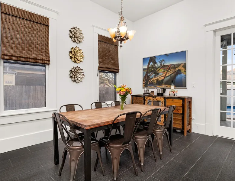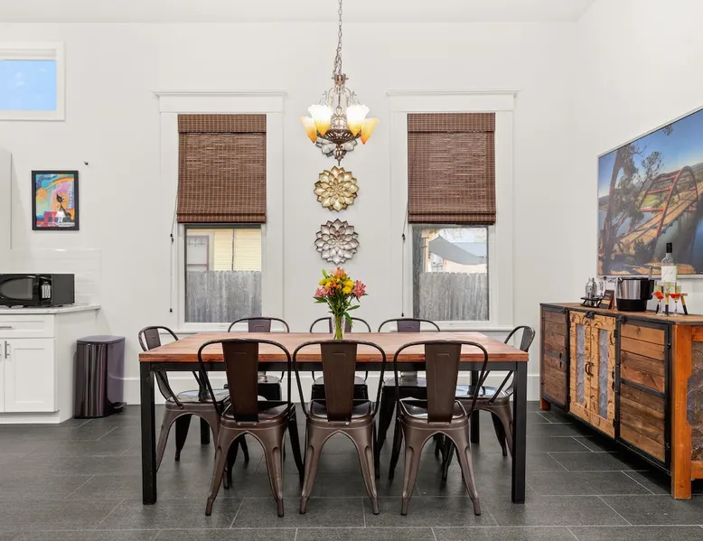 ✨ Your Southtown Stay Starts Here! ✨ Relax, reconnect, and explore in this designer 3BR home in San Antonio’s iconic Southtown district. Lounge by your private pool, cook together in the chef’s kitchen, or stroll to top restaurants and local art spots just minutes away. • Sleeps 8 | 3 Bedrooms | 2 Baths • Pool • Patio • Grill • Fire Table • Arcade & Foosball • Coffee Bar • Walk to Michelin-Starred Dining & River Walk The space Key Features ☀ Sleeps up to 8 guests comfortably ☀ 3 bedrooms / 2 bathrooms all on one level ☀ Private in-ground pool with chiminea & propane fire table ☀ Covered patio with grill and outdoor dining ☀ Arcade game + foosball table for family fun ☀ Fully stocked kitchen with two dishwashers + coffee bar ☀ Large open-concept living & dining area ☀ Fast fiber WiFi + washer/dryer ☀ Family-friendly with pack ’n play provided ☀ Walkable to 3 Michelin-starred restaurants & Southtown hot spots ☆☆ BEDROOMS ☆☆ 🛏 Primary Suite: King bed with handmade frame, ensuite bath featuring a double shower, and luxe linens for restful nights. 🛏 Bedroom 2: King bed, shared bath, cozy décor, and ample closet space. 🛏 Bedroom 3: Two queen beds, ideal for families or groups, with shared bath access and comfortable layout. All bedrooms are on one level for easy access. ☆☆ BATHROOMS ☆☆ Two bright and modern bathrooms, fully stocked with shampoo, conditioner, body wash, plush towels, and hair dryers. The primary ensuite features a double showerhead spa experience, while the shared bath is fresh and functional for group stays. ☆☆ KITCHEN & RELAXING AREAS ☆☆ Gather in the open kitchen - the heart of the home - complete with two dishwashers, stainless steel appliances, full cookware, and a coffee bar for your morning routine. The living area features a large leather sectional, travel-inspired art, and playful touches like a stand-up arcade machine, foosball table, and an antique piano desk for work or creativity. ☆☆ OUTSIDE SPACE ☆☆ Your private backyard oasis includes: ☀ In-ground pool with loungers ☀ Covered patio with grill & outdoor dining ☀ Propane fire table & chiminea fireplace for cozy evenings ☀ Fenced yard for privacy and peace Driveway parking for up to 2 cars (outside the gate) plus free street parking nearby. ★☆ Book Today & Let Us Take Care Of You ☆★ From morning coffee by the pool to evening strolls through Southtown’s artsy streets, this designer retreat offers space, comfort, and connection in San Antonio’s most vibrant neighborhood. ✨ Book your stay today and make your Southtown getaway unforgettable! ✨ *** ✅ This property follows local compliance standards and uses a simple, secure platform called Happy Guest to streamline the check-in process. You don’t need to download an app or create an account. It’s just a quick and secure website that gives you everything you need for a smooth arrival. You’ll also get access to your personalized guest portal, where you can find all the info about the home and some of our favorite local spots. The portal also offers optional upgrades to help you customize your stay: • Extra Guest – $50 • Late Checkout – $50 • Stock the Fridge – $100 Guest access You and your group will have complete privacy and access to the home! We have a few cabinets in the primary bedroom and kitchen that we keep locked for supplies. *Please park outside of the fence. The pool area storage shed is locked for pool supply storage as well. Easy Check-In Process🏡 It’s just like when you check in at a hotel and give your ID to the front desk, except our front desk is online! It's super easy to complete on your phone! We use a web-based system called Happy Guest, and you’ll receive a personalized rental agreement to sign in order to receive your arrival instructions. It’s simple: finish these steps, and you’re all set to enjoy your stay! Note: arrival info won’t be sent without completing these steps, and refunds aren’t possible if skipped. Your personalized guidebook will give you all the info about the home, our favorite local spots, automatic early check-in notifications, and sometimes even late checkout! You can even share it with friends and family! Got questions? Just message us anytime! Other things to note Please be aware of posted signs by the pool. No lifeguard is on duty and you are to swim at your own risk. No diving in the pool and please be aware of children at all times. Registration Details STR-24-13500070