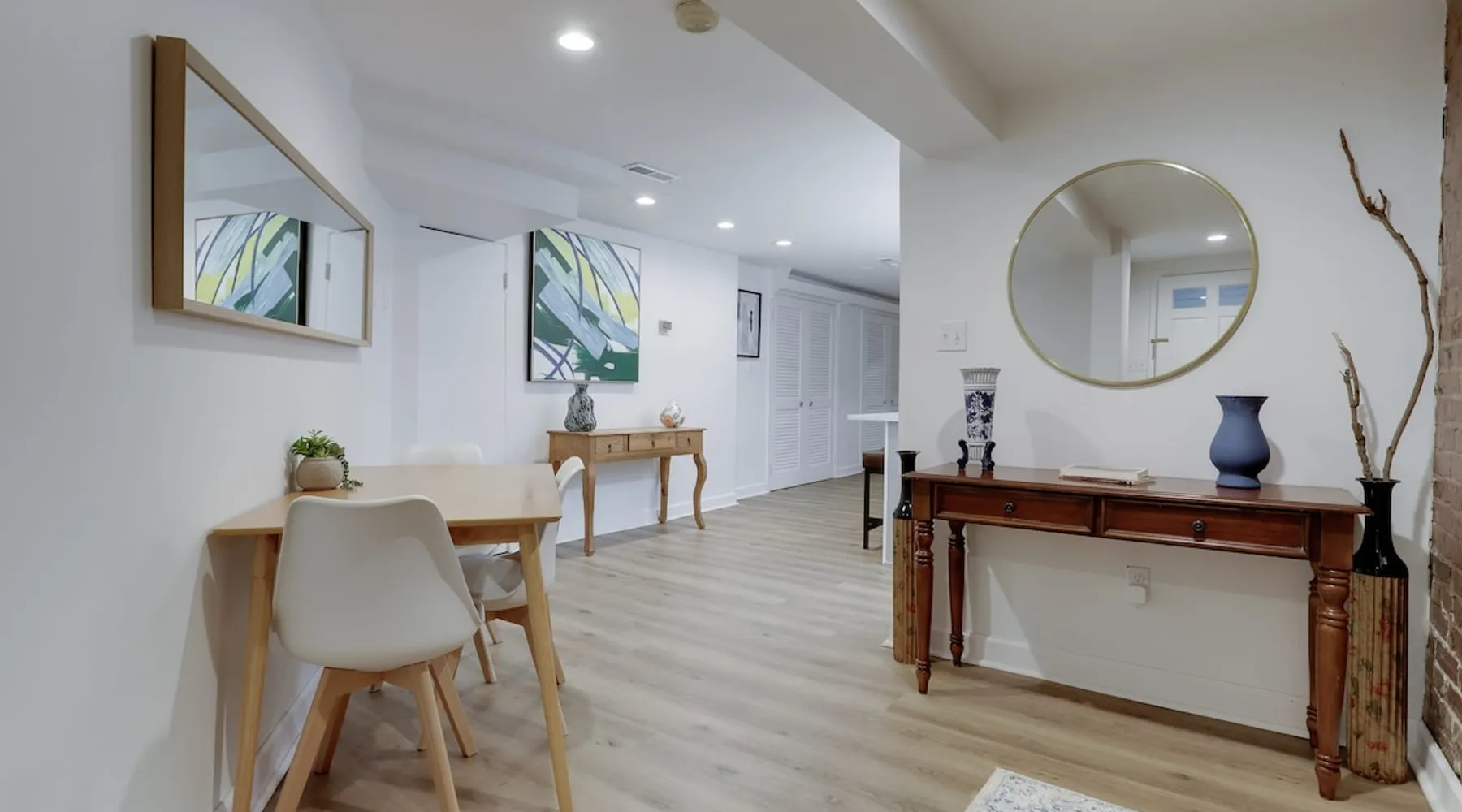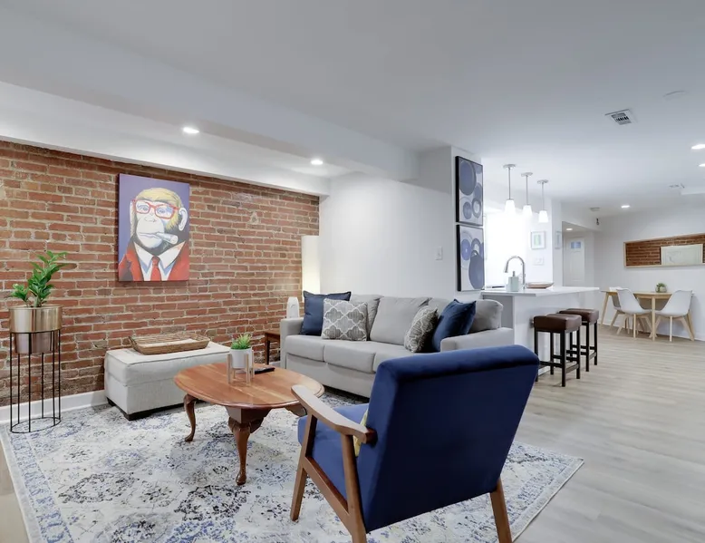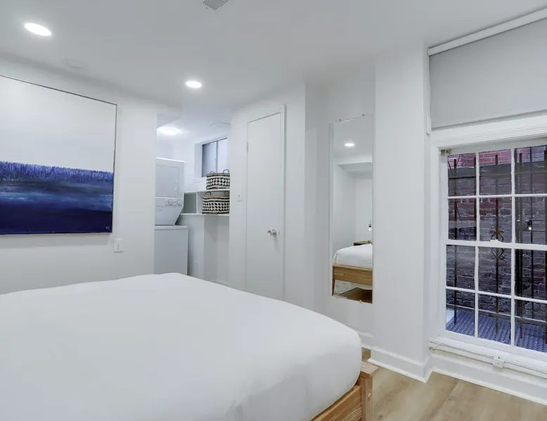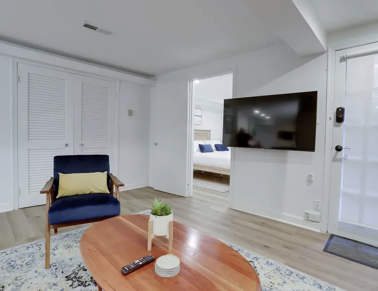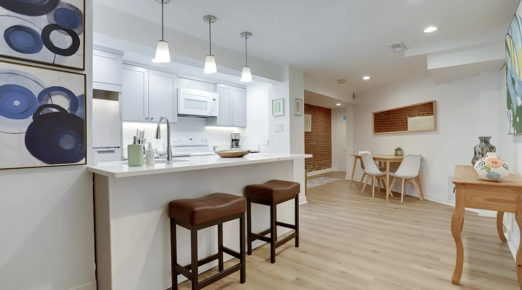 Welcome to your conveniently located 1-bedroom basement apartment in Dupont Circle. This home features a fully equipped kitchen, queen sized bed, and a comfortable living area. Enjoy the convenience of in-unit laundry and access to a patio. You are located in a vibrant neighborhood with shops, restaurants, and public transport within walking distance. This Sojourn is ideal for urban living. There is the option for parking a paid parking space if you have a vehicle. The space Nestled in the heart of Dupont Circle, this 1-bedroom basement apartment offers a blend of historic elegance and modern convenience and is thoughtfully designed for long-term stays. The living area is comfortable and inviting, featuring recessed lighting and ample room for comfortable seating, perfect for relaxing. The kitchen is a modern chef's delight, fully equipped with cooking utensils, a refrigerator, stove, and microwave. A breakfast bar provides additional seating and a perfect spot for casual meals. The bedroom is a peaceful retreat, generously sized with feather down pillows, additional lighting and an en-suite washer and dryer. Additional amenities include central heating and cooling to keep the space comfortable year-round, and access to a patio area, ideal for enjoying a morning coffee or evening relaxation. The location is unbeatable, situated in one of Washington D.C.'s most vibrant neighborhoods. Just steps away from the apartment, you'll find a plethora of trendy cafes, gourmet restaurants, boutique shops, and lively nightlife. Public transportation options, including the Dupont Circle Metro Station, are within easy walking distance, making commuting a breeze. If you arrive with a vehicle, there is the option to purchase parking on a monthly basis. This basement apartment is ideal for those seeking a stylish and convenient urban living experience in the heart of Dupont Circle. Guest access Our home is contactless seamless and easy self check in. A code will be set for you and shared 48 hours before your arrival. At Sojourn we take your happiness and comfort seriously. No request is too big or too small for our team and we strive to make your stay as comfortable and memorable as possible. Don't hesitate to ask. Other things to note At Sojourn, we’re committed to making your stay seamless, serene, and comfortable. Every one of our homes is thoughtfully appointed with everything you need to settle in and relax—from high-speed Wi-Fi and smart TVs to fully stocked kitchens and freshly laundered linens, Frette towels, hairdryers and luxurious Lather brand soaps. Our team is also just a message away, with thoughtful communication from the moment you book to the day you depart. Before your stay, we kindly ask you to review the following important information to ensure a smooth arrival and peaceful experience: Guest Verification with Truvi To protect our homes and enhance your peace of mind, Sojourn partners with Truvi, a third-party guest verification and damage assurance platform. You’ll receive a direct message from Truvi to complete your verification and purchase a damage waiver. Please complete this step before check-in. Visit Truvi’s website to learn more. Property Access & Maintenance From time to time, our homes may require preventative or emergency maintenance or during long term stays, a showing to prospective tenants. While we make every effort to avoid any interruptions to your stay, Sojourn reserves the right to access the property after providing 24 hours’ written notice. Your comfort is our priority, and we appreciate your understanding. Baby Gear (Optional Add-On) Traveling with little ones? We’re happy to offer Pack & Plays and high chairs for your convenience. These items must be reserved in advance and are available for a $25 rental fee per item. Parking Information Driving to your Sojourn? Please inquire with the Sojourn team to make a parking reservation to ensure your arrival is seamless and stress-free. Sojourn and the property owner are not responsible for loss, theft, damage, or injury involving your vehicle or its contents. We cannot guarantee the safety or security of any parking location and disclaim liability for any incidents. Thank you for your understanding. Pet Policy Most of our residences are pet friendly and welcome your four-legged companions. While most booking platforms include the pet fee upon reservation, any exclusions will be invoiced at $15 per night for stays up to 30 days and $450 total for stays 31 days or longer. Kindly inform us of any pets joining your stay so we may update your reservation accordingly. We do love furry companions, but we do have some properties that are not pet-friendly. If you’re traveling with a pet please ensure this is a pet-welcoming home. If it is not, we’d be happy to recommend one of our many pet-friendly stays. Fireplace (If Applicable) The fireplace is a charming decorative feature, meant to add ambiance rather than be used. This unit is below a home used sometimes throughout the year and there may be some noise during the day, a portion of the year. We have done our best to mitigate sound transfer. Please let us know how we can make your stay more comfortable. Let us know if you have any questions—we’re here to help make your stay serene & unforgettable. Registration details Exempt