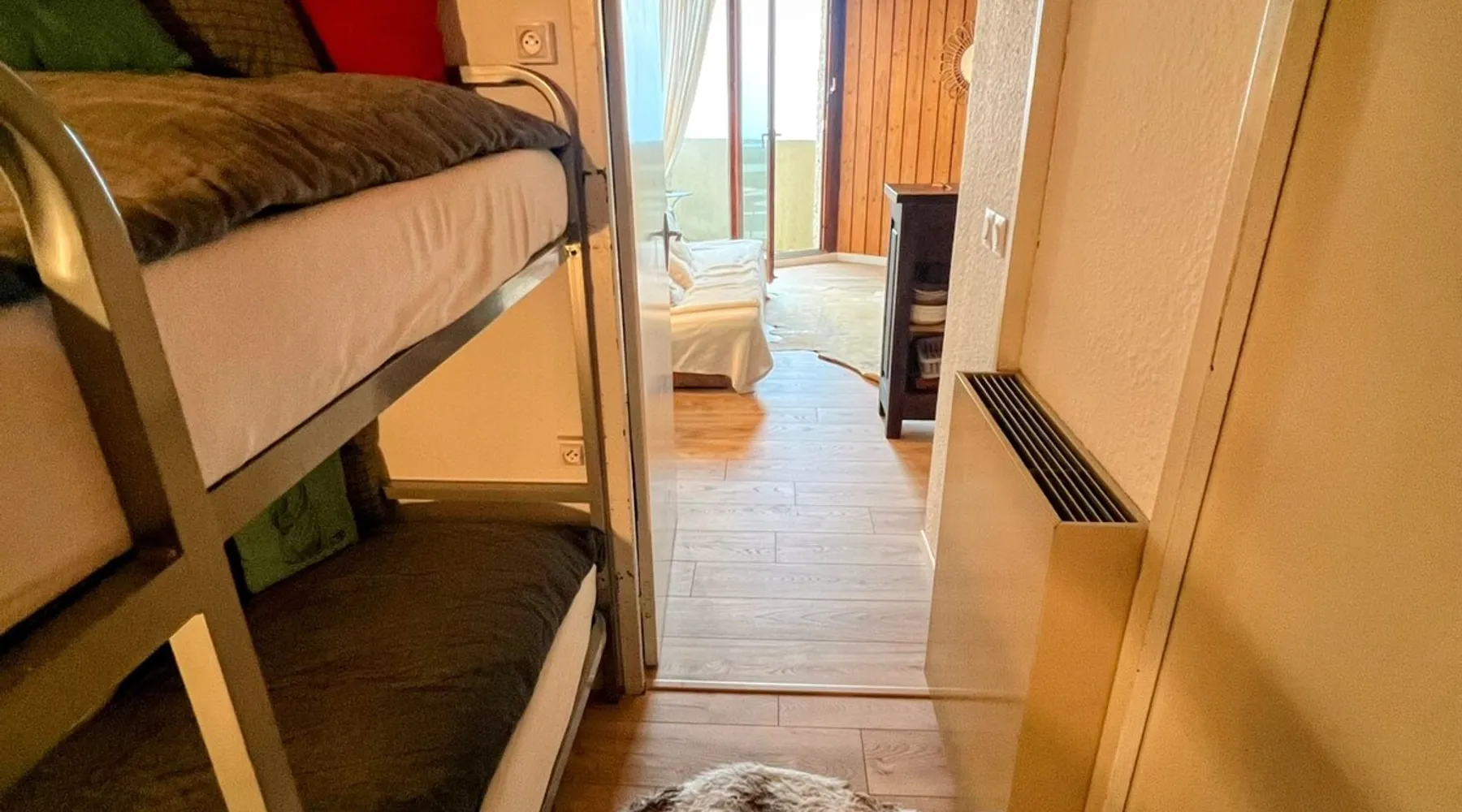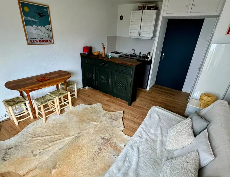 Discover this apartment ideally located in the heart of the charming resort of Les Orres. At the foot of the slopes, you will forget your car for the time of your stay. Snowfront departure with locker, you will access the shops, terraces and restaurants located just below. In the evening your balcony will offer you an extraordinary view of the valley, sheltered from the hustle and bustle of the resort. The ideal address for a sporting stay, as a couple or family in this sunny and wooded resort The space Well-appointed studio comprising a mountain area with bunk beds, a bathroom with toilet, a living room with kitchenette, dining table and sofa bed, and a balcony with views of the valley and mountains Please note that linens and towels are not provided You can book them on site with Rodolphe who is in charge of the keys.