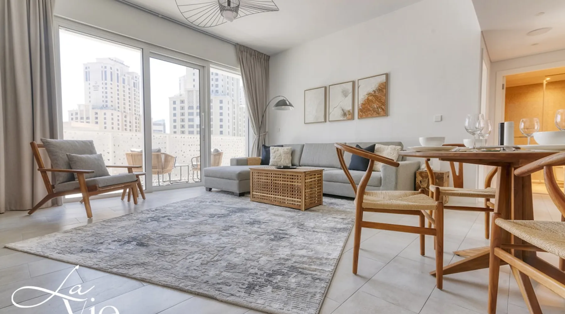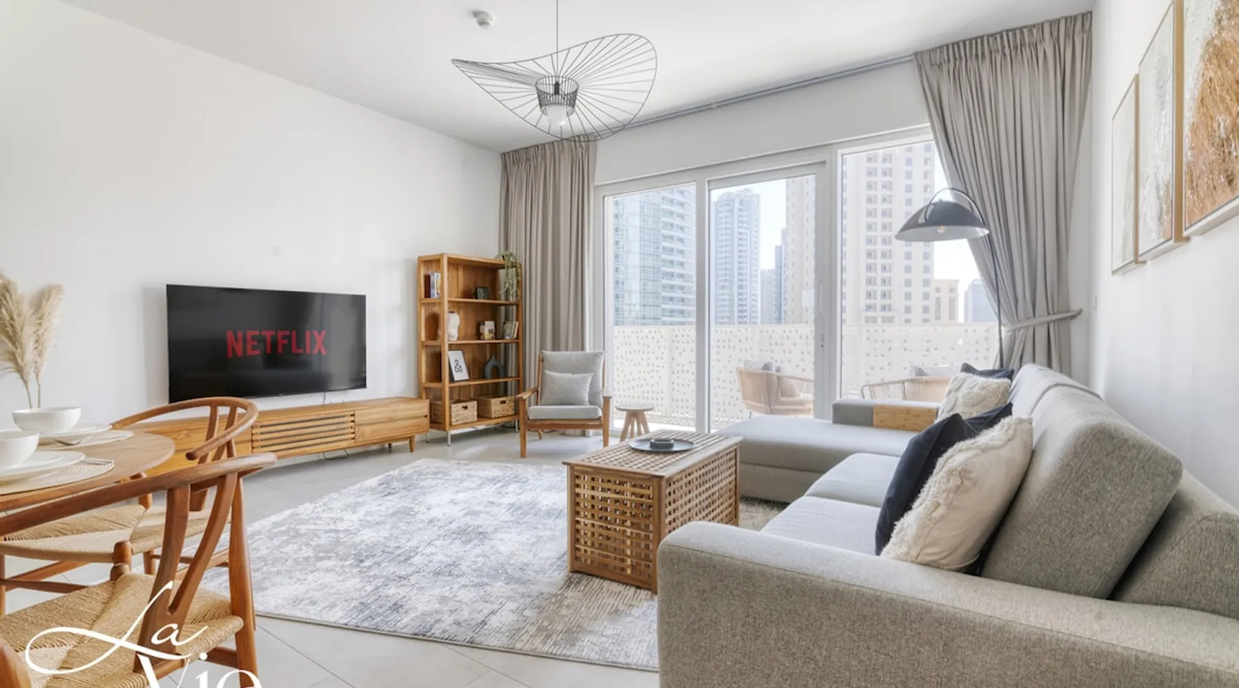 Your ultimate getaway at our 1-bedroom retreat! Ideal for a couple or a small family with a child, our cozy sofa ensures comfort for all. Experience exclusive beachfront access and a stunning infinity pool boasting breathtaking views of Ain Dubai. Take leisurely sunset walks along the shoreline or keep active with our state-of-the-art gym and children's playground. Whether you seek relaxation or adventure, our modern apartment promises an unforgettable holiday retreat! The space Step into our recently adorned 1-bedroom apartment, nestled snugly within a contemporary edifice. Complete with all the indispensable amenities, this snug abode guarantees both comfort and ease. Spoil yourself with the extravagance of exclusive beachfront entry and bask in the sweeping sea vistas, accentuated by the breathtaking spectacle of Ain Dubai visible from the pool deck. Strategically located in the lively core of JBR, this residence grants effortless access to a myriad of facilities and beloved tourist attractions, promising an unforgettable sojourn for guests in pursuit of both tranquility and excitement. Registration Details MAR-LA-AQFCD