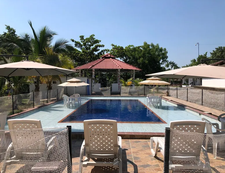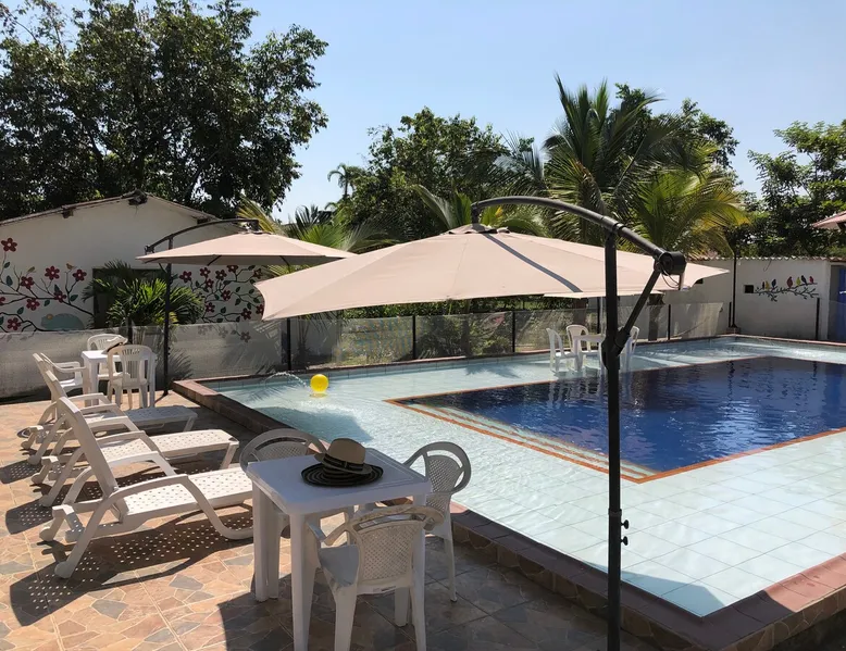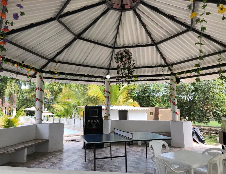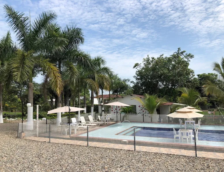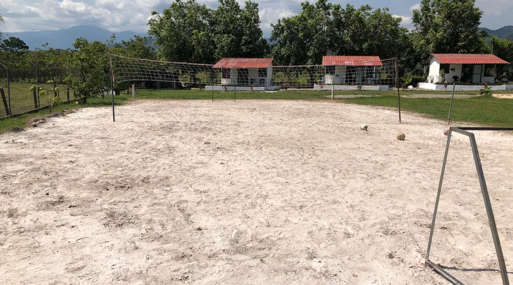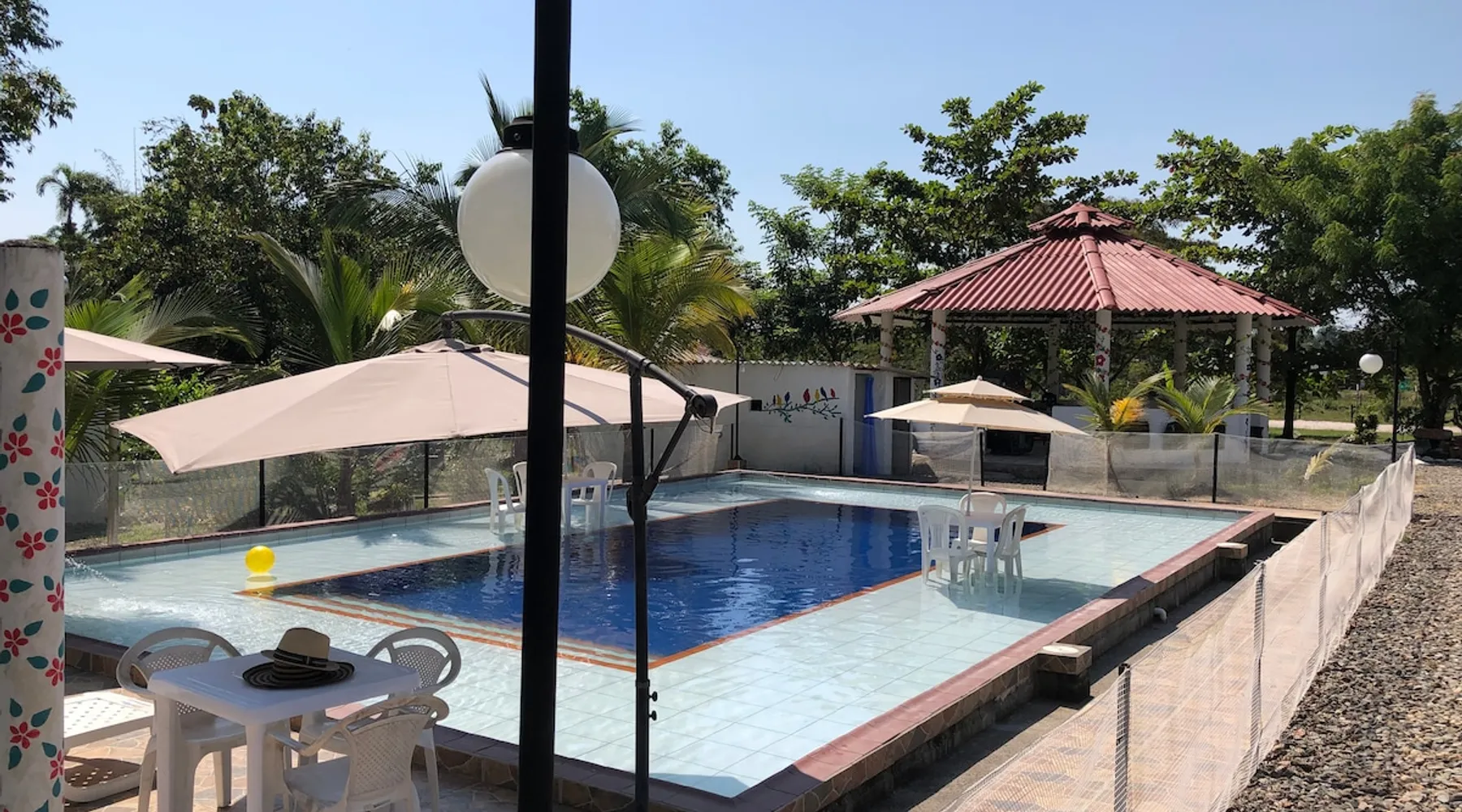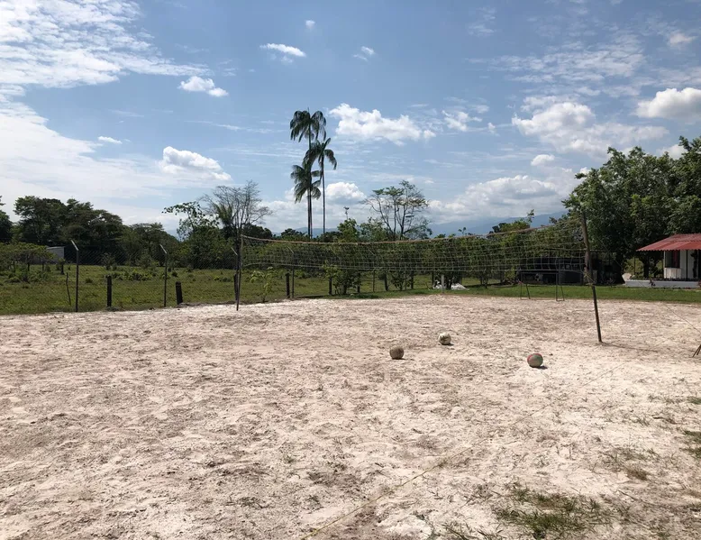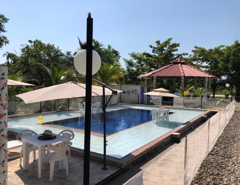 Villa Juanes farm located 15 minutes on the Villavicencio-Acacias road, It has a swimming pool, fishing lake, yew field, kiosk, soccer field in sand, barbecue area, fruit trees and an ideal space to rest away from the noise of the city. It is located 15 minutes away from the Villavicencio and 10 minutes from Acacias City. Close to restaurants and tourist attractions. The space With an area of approximately 1 hectare, it is an ideal space to share with the family. The rooms have a fan and the cabin has kitchen utensils and a refrigerator. Guest access Swimming pool, kiosk, shuffleboard, fishing lake, barbecue area, soccer field in sand, green areas and washing area. During your stay The farm has managers, Hector and his wife Luz, who will be more than willing to resolve any concerns during your stay. Registration Details 110617