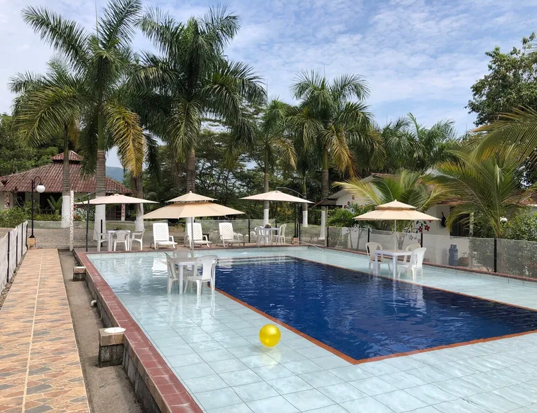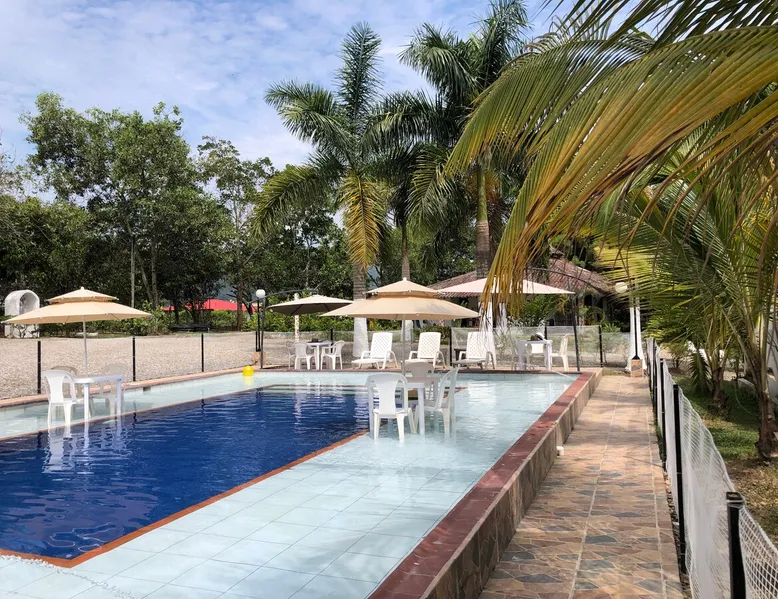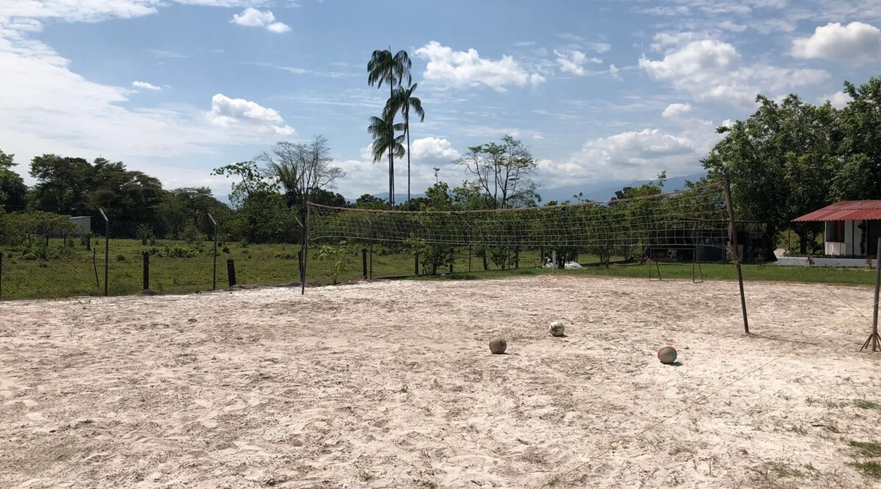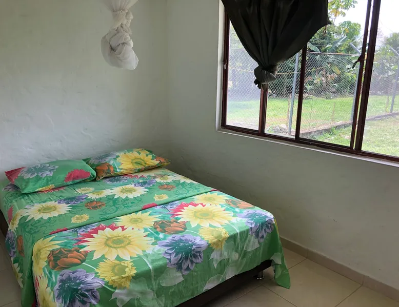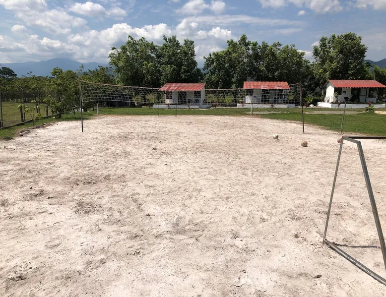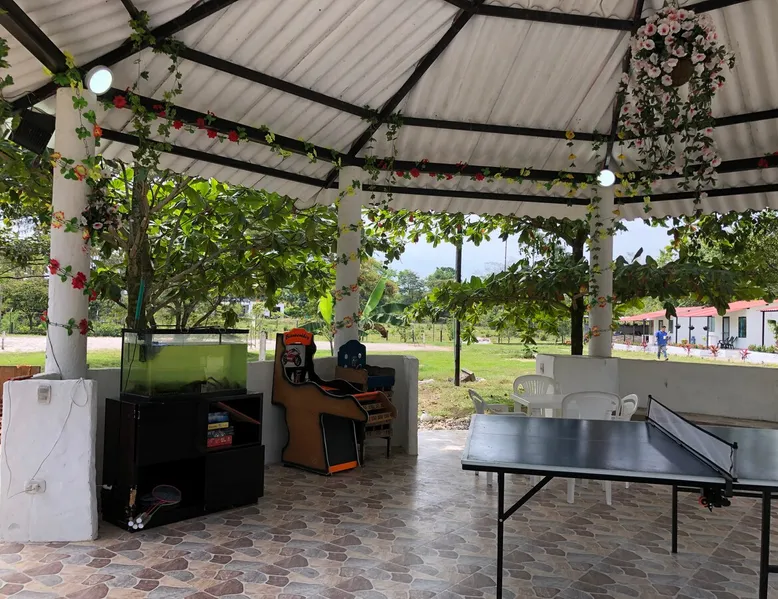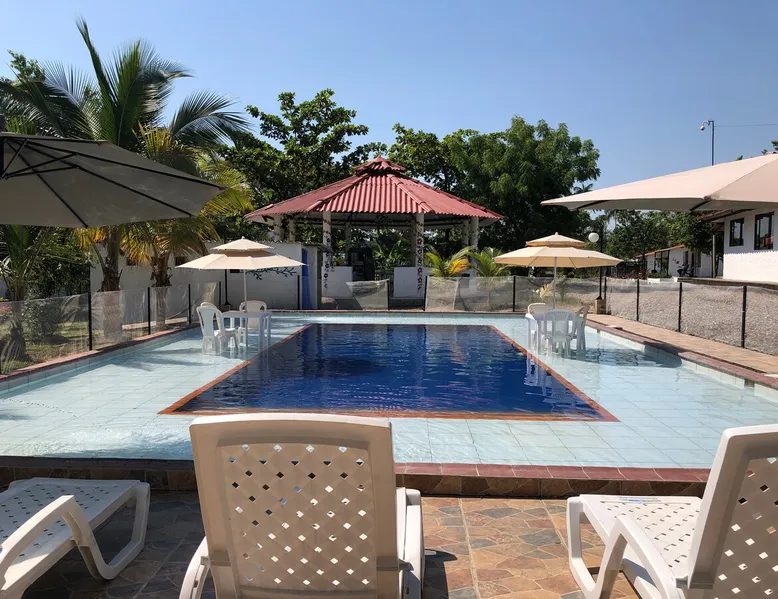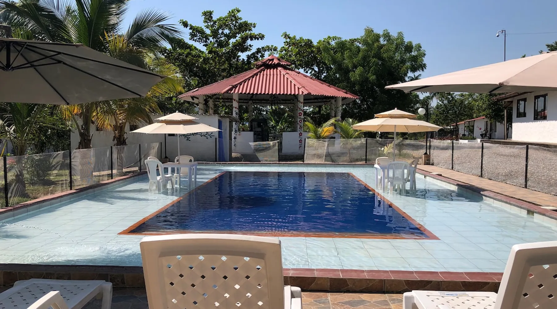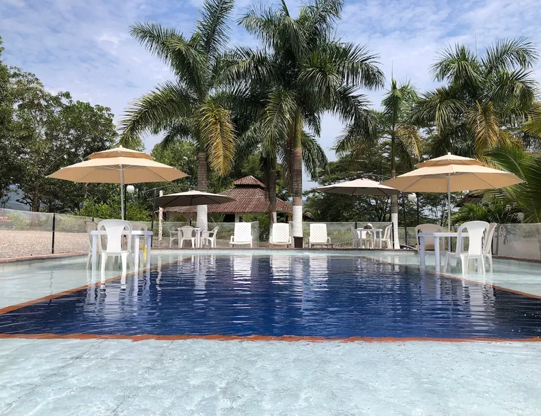 Villa Juanes farm located 15 minutes on the Villavicencio-Acacias road, It has a swimming pool, fishing lake, yew field, kiosk, soccer field in sand, barbecue area, fruit trees and an ideal space to rest away from the noise of the city. It is located 15 minutes away from the Villavicencio and 10 minutes from Acacias City. Close to restaurants and tourist attractions. The space With an area of approximately 1 hectare, it is an ideal space to share with the family. The rooms have a fan and the cabin has kitchen utensils and a refrigerator. Guest access Swimming pool, kiosk, shuffleboard, fishing lake, barbecue area, soccer field in sand, green areas and washing area. During your stay The farm has managers, Hector and his wife Luz, who will be more than willing to resolve any concerns during your stay. Registration Details 110617