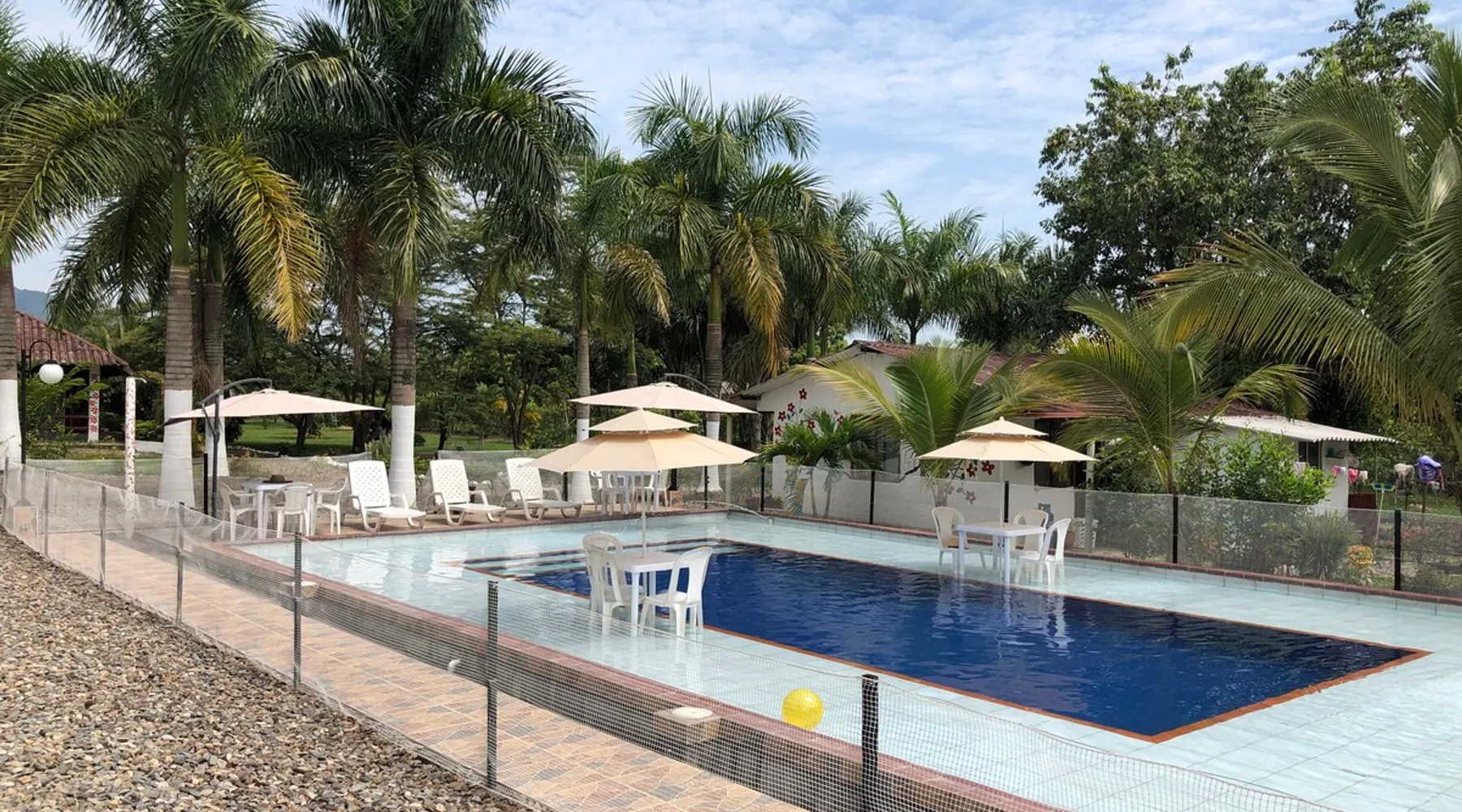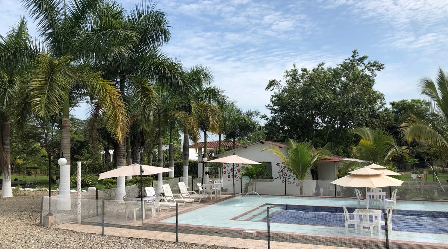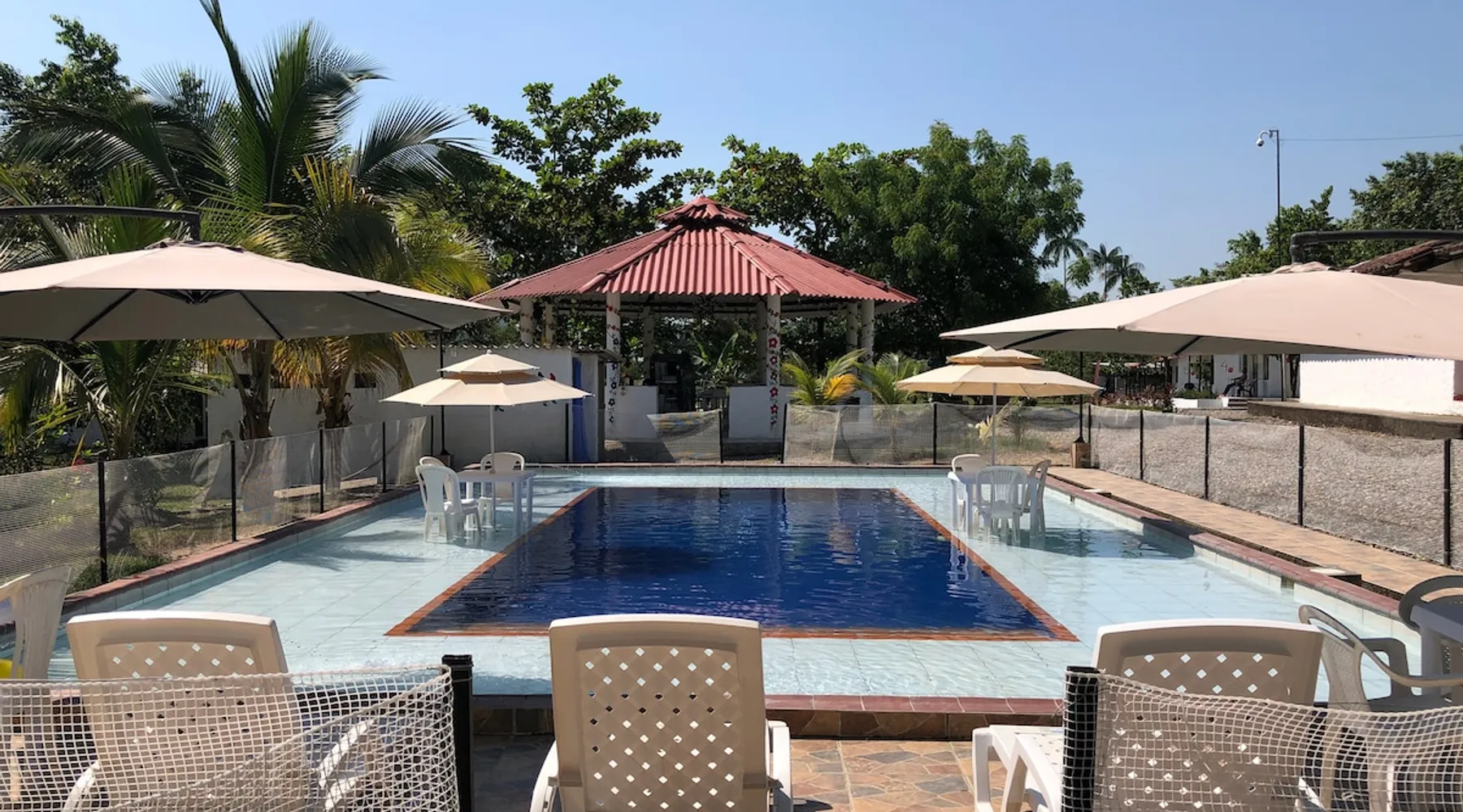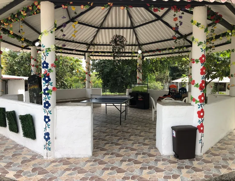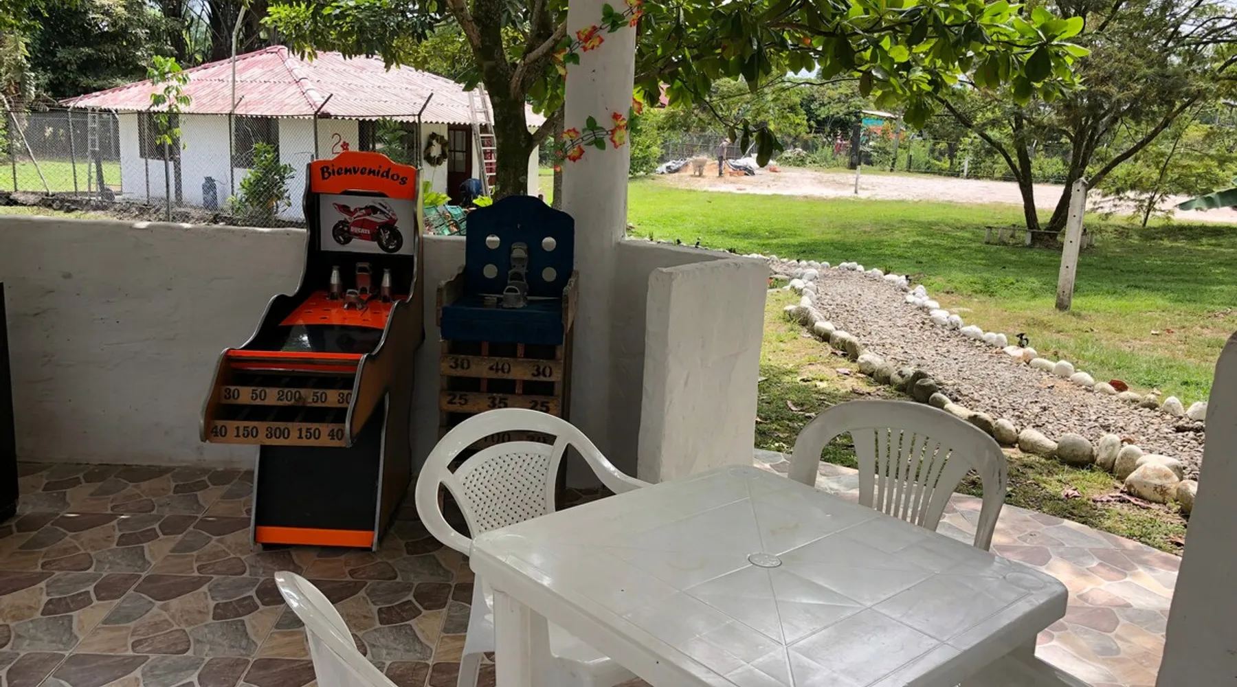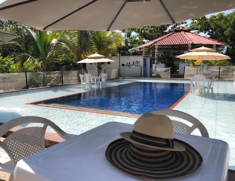 Villa Juanes farm located 15 minutes on the Villavicencio-Acacias road, It has a swimming pool, fishing lake, yew field, kiosk, soccer field in sand, barbecue area, fruit trees and an ideal space to rest away from the noise of the city. It is located 15 minutes away from the Villavicencio and 10 minutes from Acacias City. Close to restaurants and tourist attractions. The space With an area of approximately 1 hectare, it is an ideal space to share with the family. The rooms have a fan and the cabin has kitchen utensils and a refrigerator. Guest access Swimming pool, kiosk, shuffleboard, fishing lake, barbecue area, soccer field in sand, green areas and washing area. During your stay The farm has managers, Hector and his wife Luz, who will be more than willing to resolve any concerns during your stay. Registration Details 110617