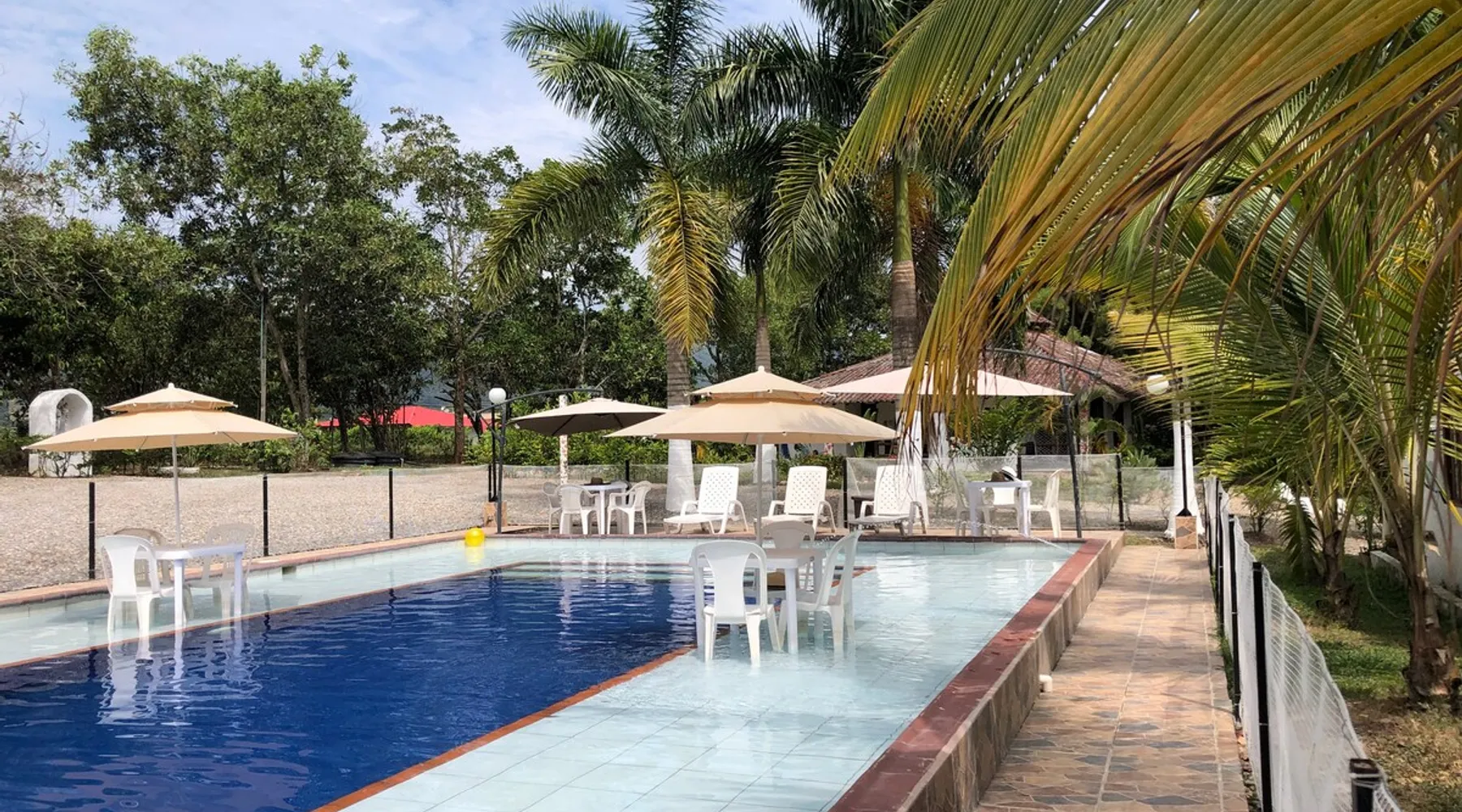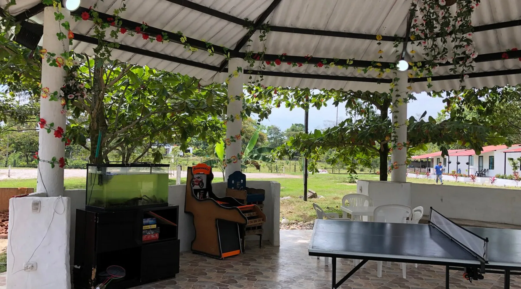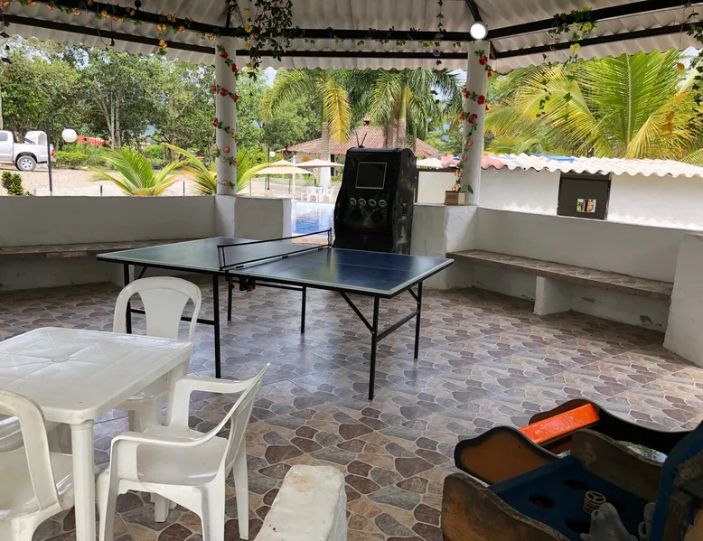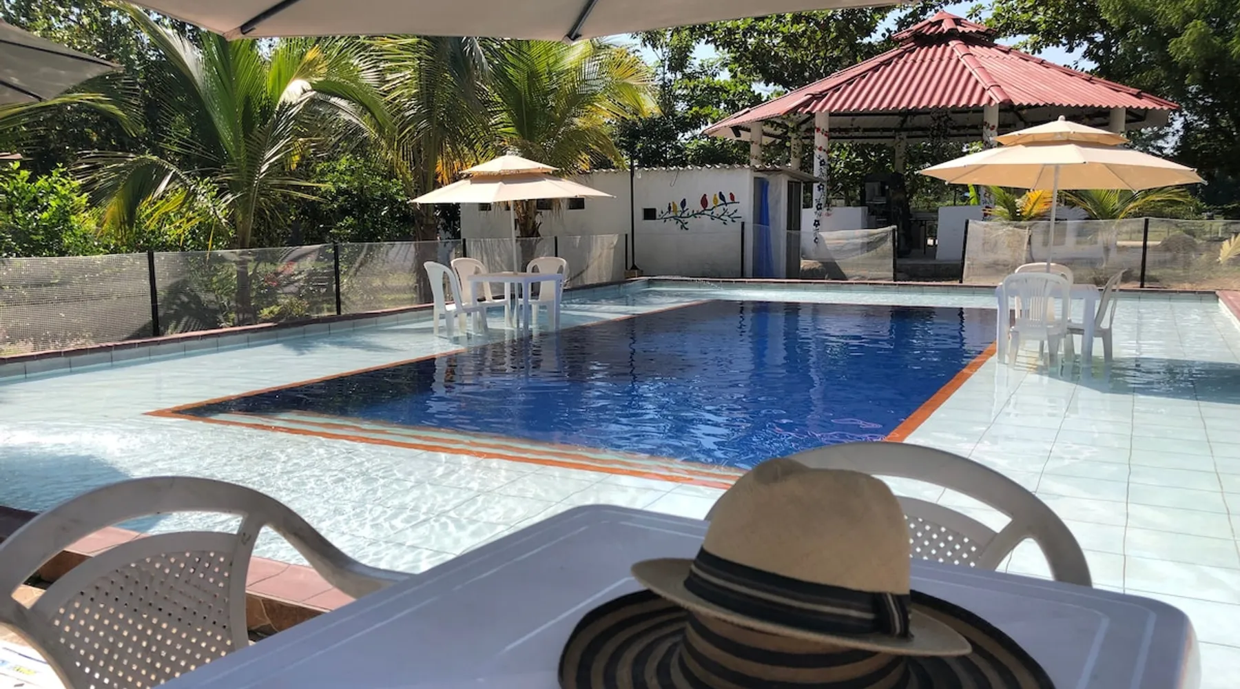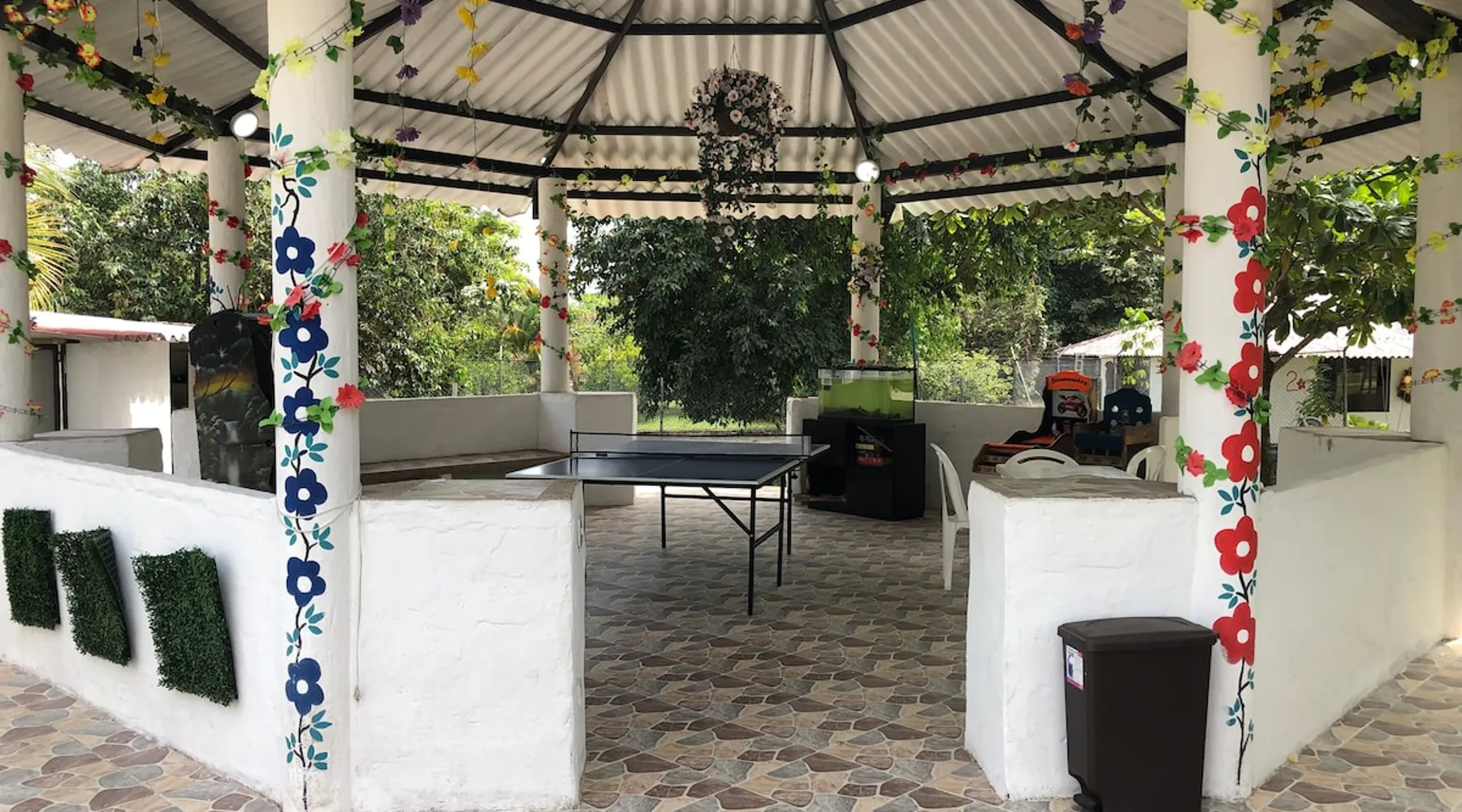 Villa Juanes farm located 15 minutes on the Villavicencio-Acacias road, It has a swimming pool, fishing lake, yew field, kiosk, soccer field in sand, barbecue area, fruit trees and an ideal space to rest away from the noise of the city. It is located 15 minutes away from the Villavicencio and 10 minutes from Acacias City. Close to restaurants and tourist attractions. The space With an area of approximately 1 hectare, it is an ideal space to share with the family. The rooms have a fan and the cabin has kitchen utensils and a refrigerator. Guest access Swimming pool, kiosk, shuffleboard, fishing lake, barbecue area, soccer field in sand, green areas and washing area. During your stay The farm has managers, Hector and his wife Luz, who will be more than willing to resolve any concerns during your stay. Registration Details 110617