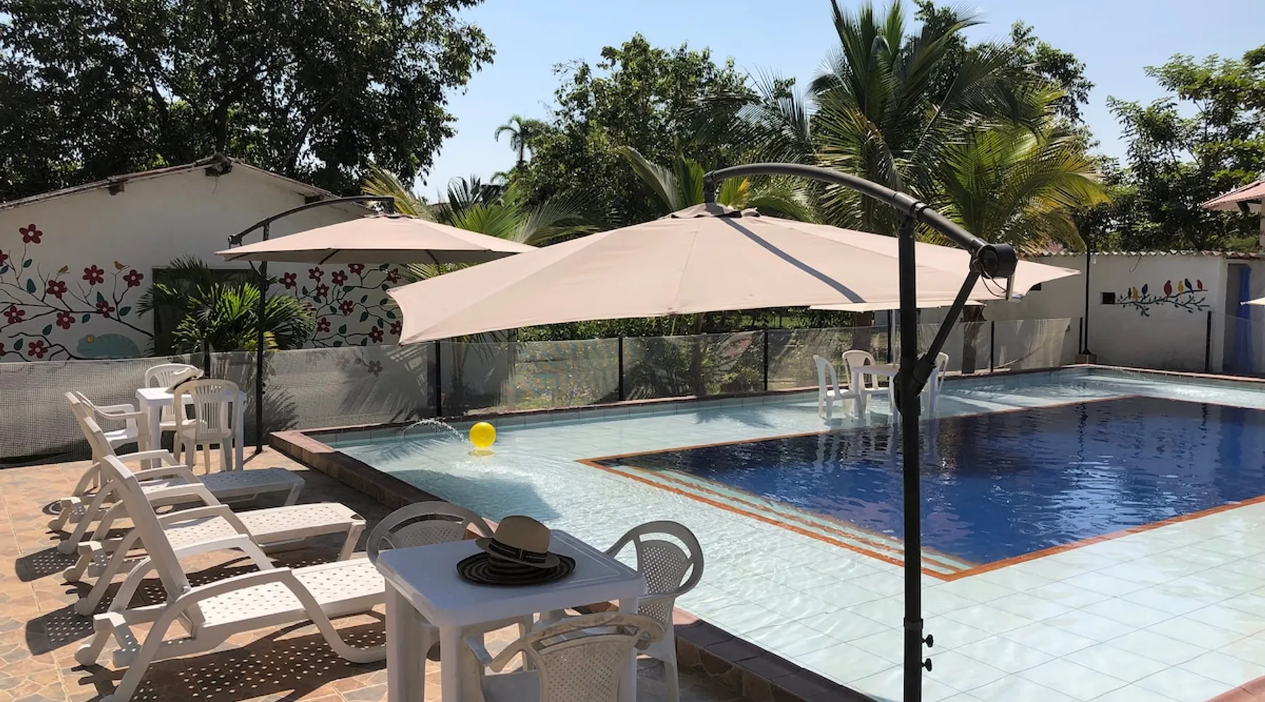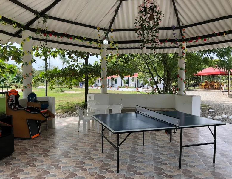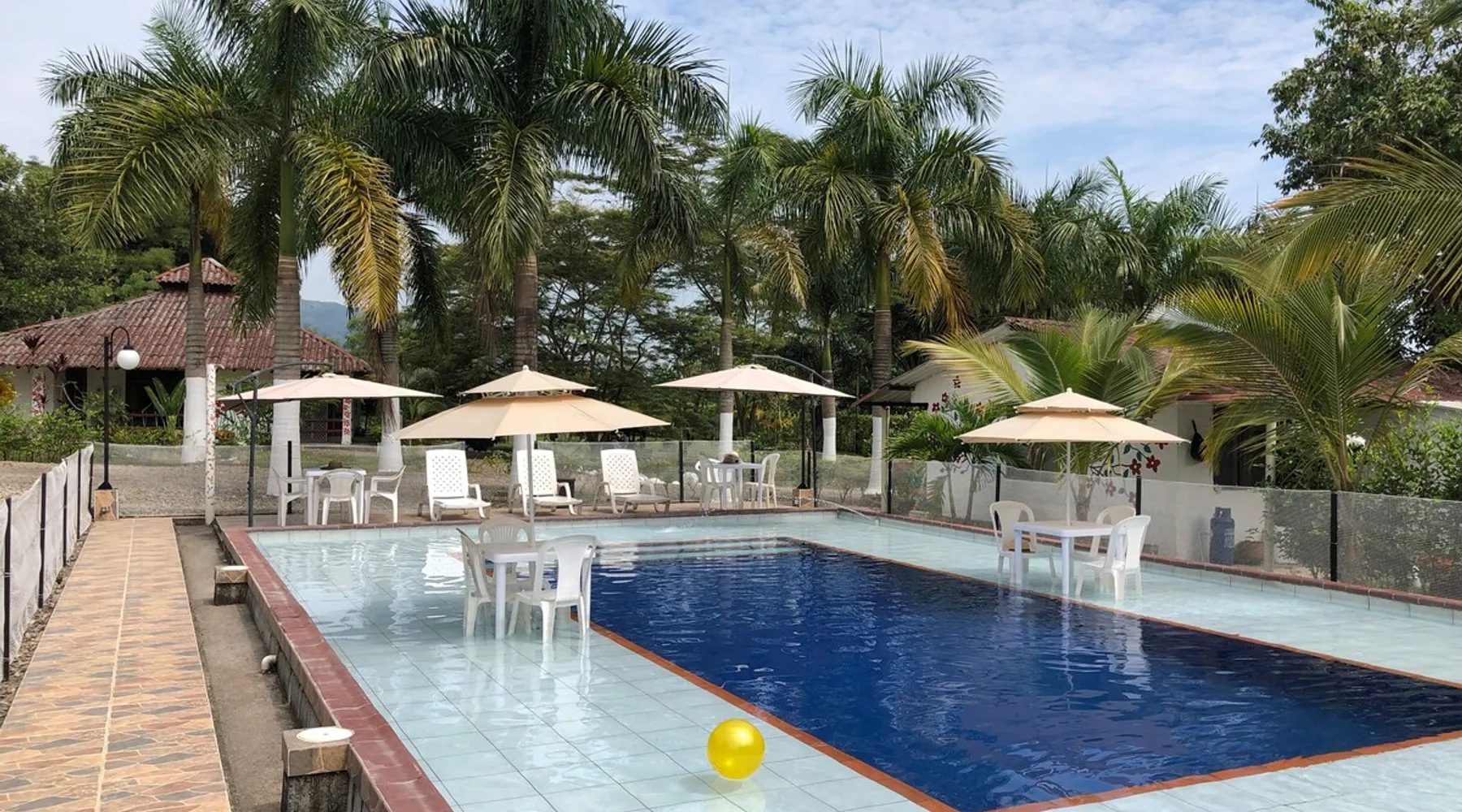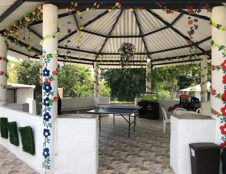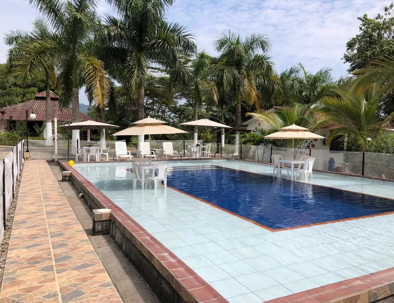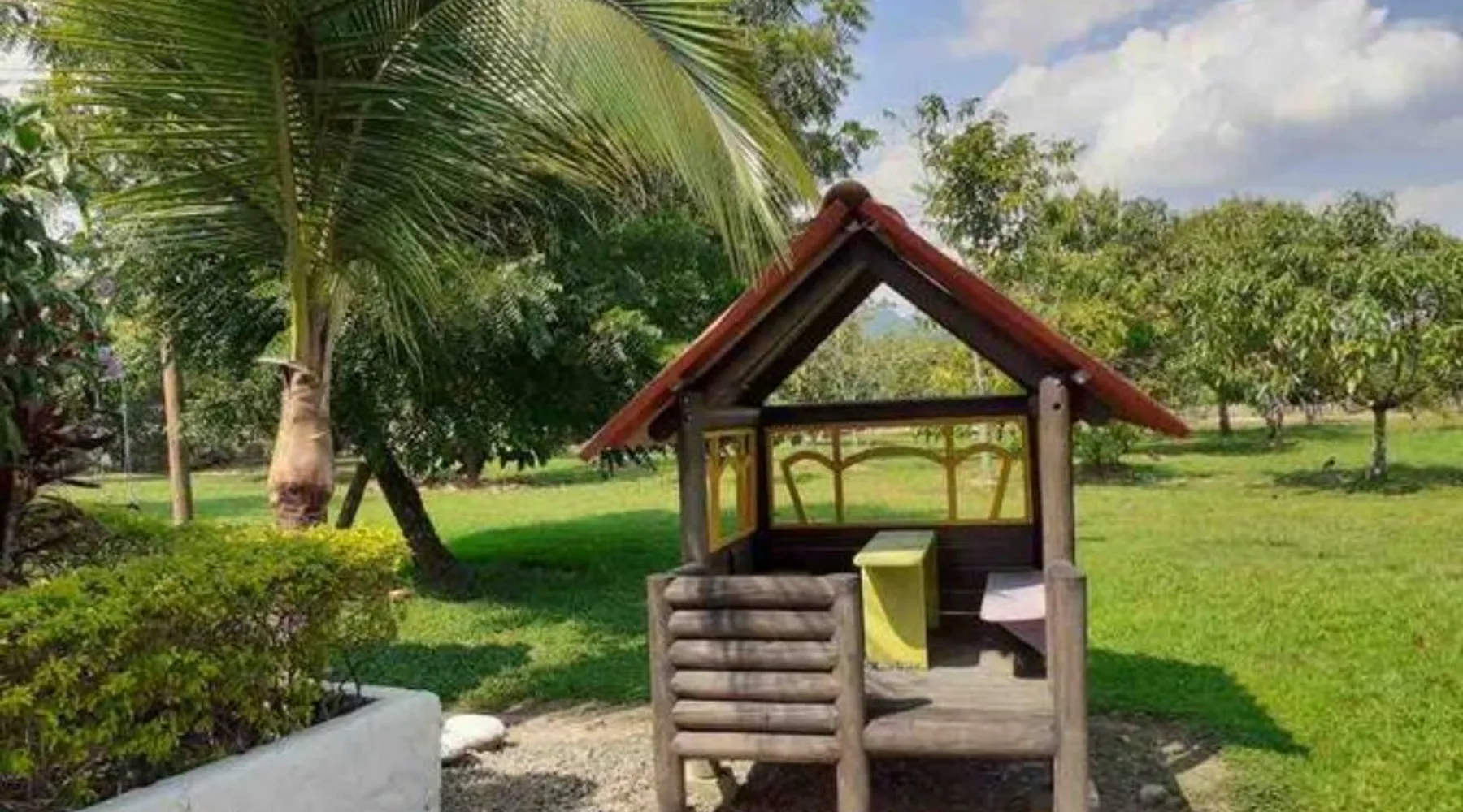 Villa Juanes farm located 15 minutes on the Villavicencio-Acacias road, It has a swimming pool, fishing lake, yew field, kiosk, soccer field in sand, barbecue area, fruit trees and an ideal space to rest away from the noise of the city. It is located 15 minutes away from the Villavicencio and 10 minutes from Acacias City. Close to restaurants and tourist attractions. The space With an area of approximately 1 hectare, it is an ideal space to share with the family. The rooms have a fan and the cabin has kitchen utensils and a refrigerator. Guest access Swimming pool, kiosk, shuffleboard, fishing lake, barbecue area, soccer field in sand, green areas and washing area. During your stay The farm has managers, Hector and his wife Luz, who will be more than willing to resolve any concerns during your stay. Registration Details 110617