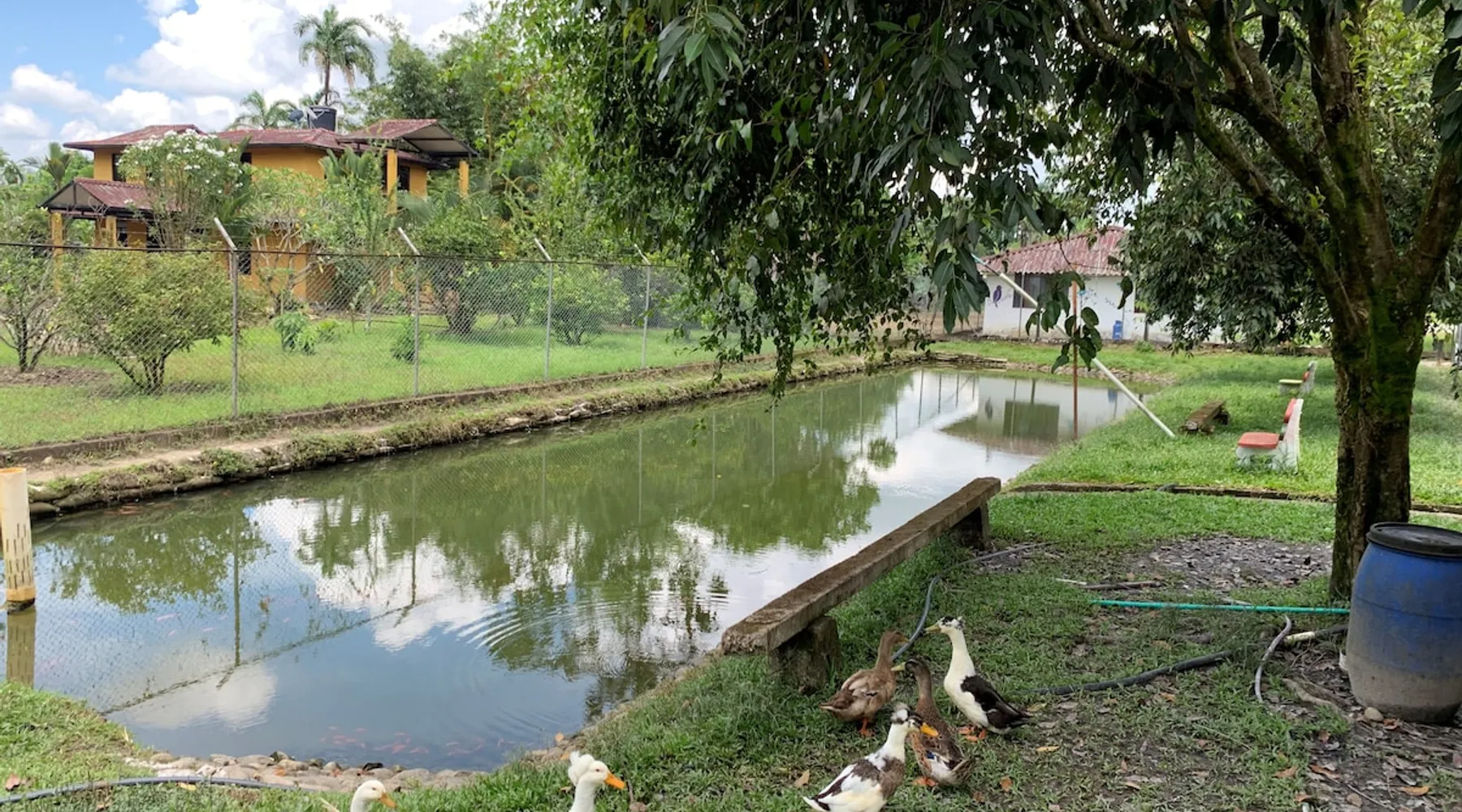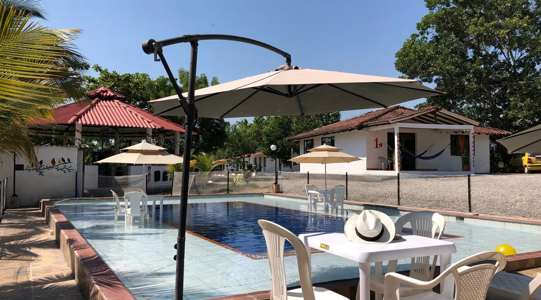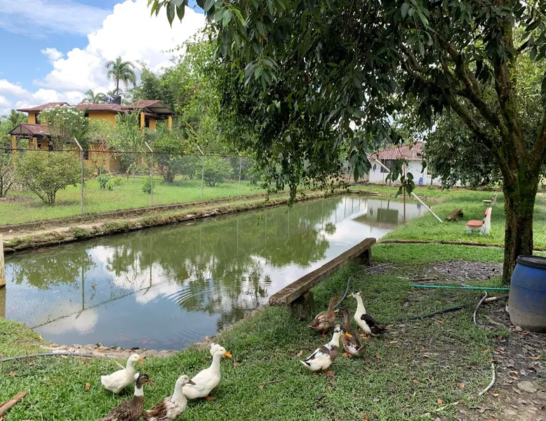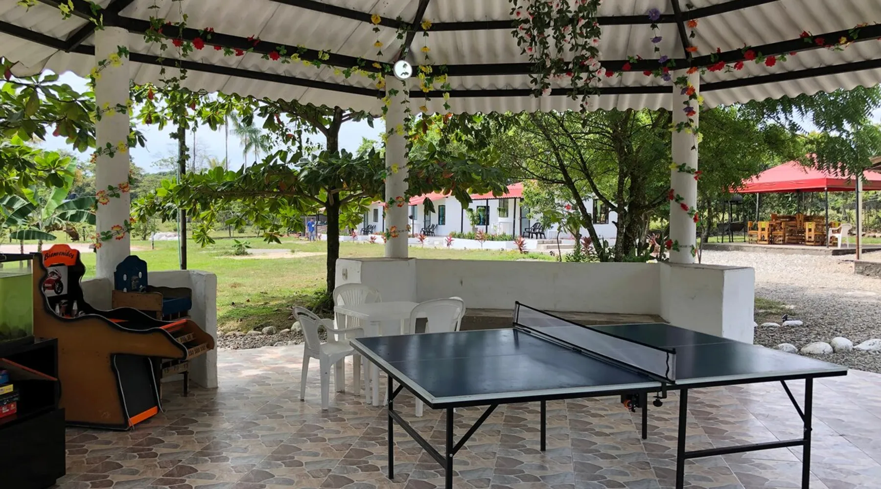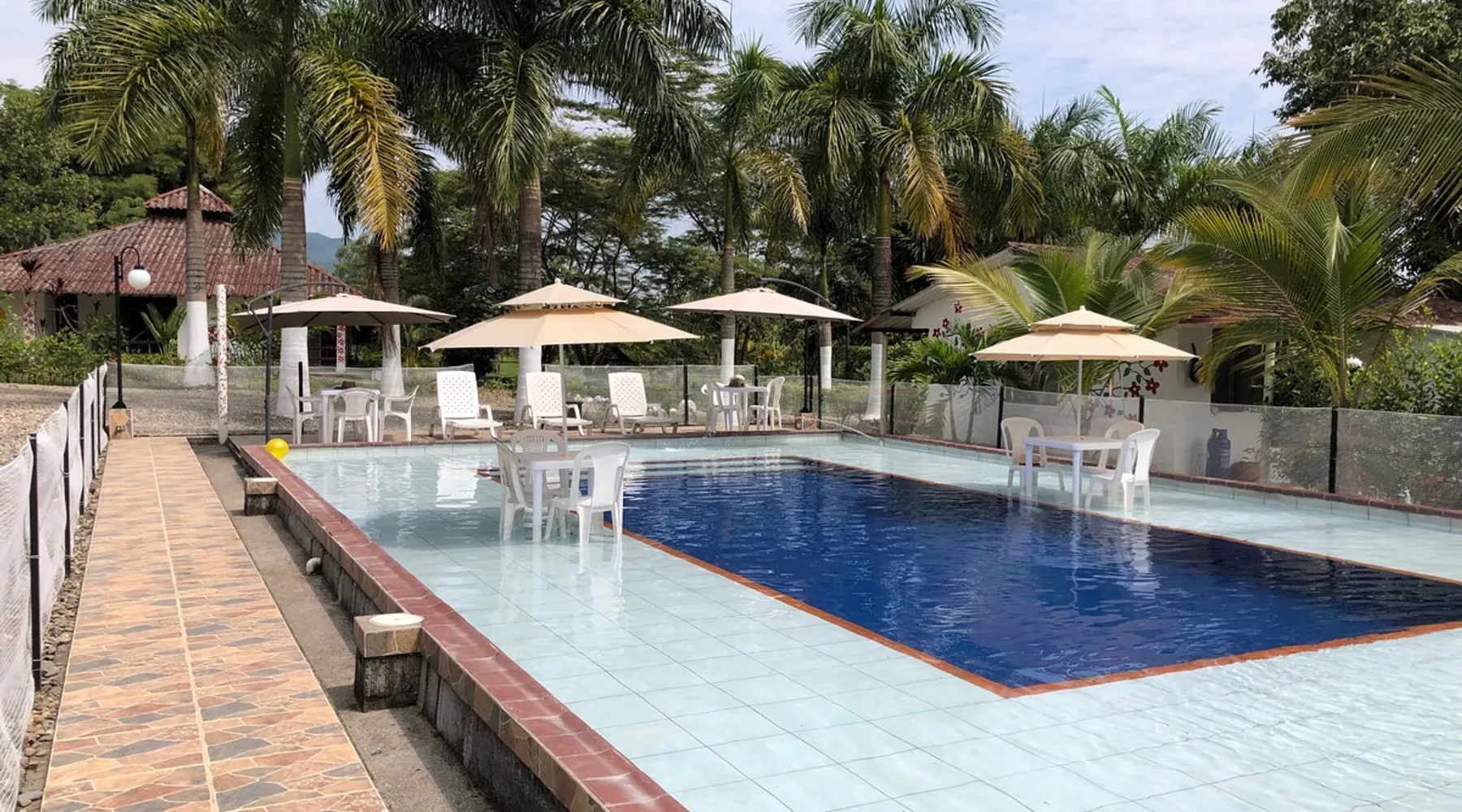 Villa Juanes farm located 15 minutes on the Villavicencio-Acacias road, It has a swimming pool, fishing lake, yew field, kiosk, soccer field in sand, barbecue area, fruit trees and an ideal space to rest away from the noise of the city. It is located 15 minutes away from the Villavicencio and 10 minutes from Acacias City. Close to restaurants and tourist attractions. The space With an area of approximately 1 hectare, it is an ideal space to share with the family. The rooms have a fan and the cabin has kitchen utensils and a refrigerator. Guest access Swimming pool, kiosk, shuffleboard, fishing lake, barbecue area, soccer field in sand, green areas and washing area. During your stay The farm has managers, Hector and his wife Luz, who will be more than willing to resolve any concerns during your stay. Registration Details 110617