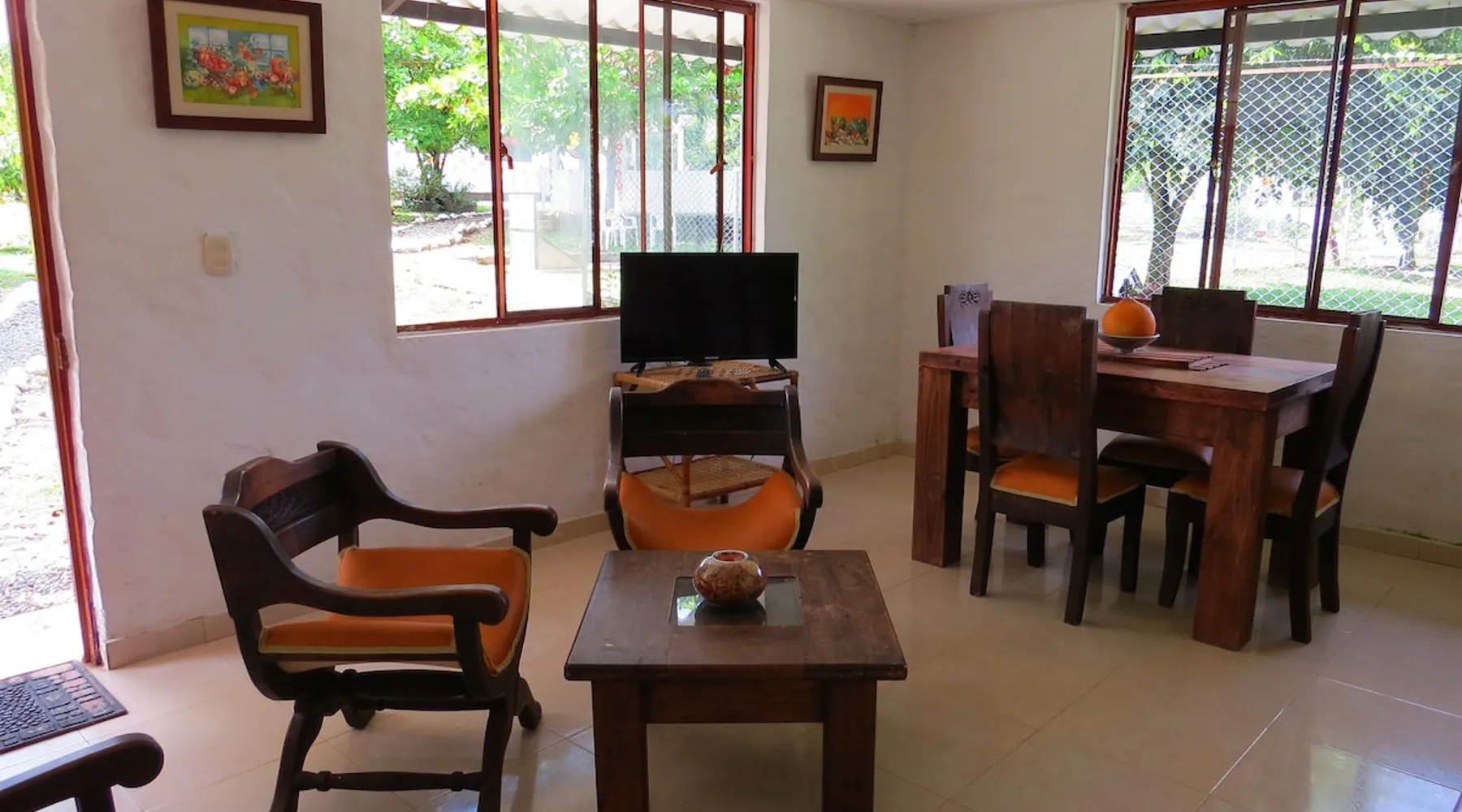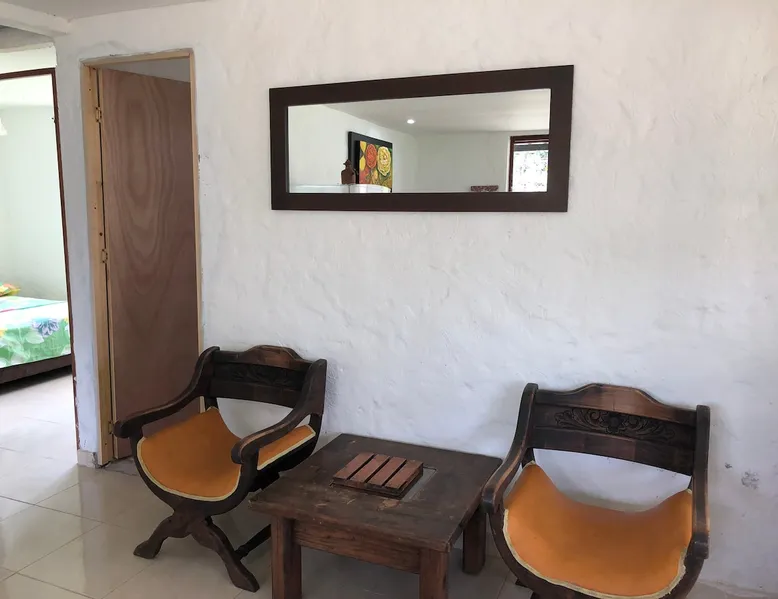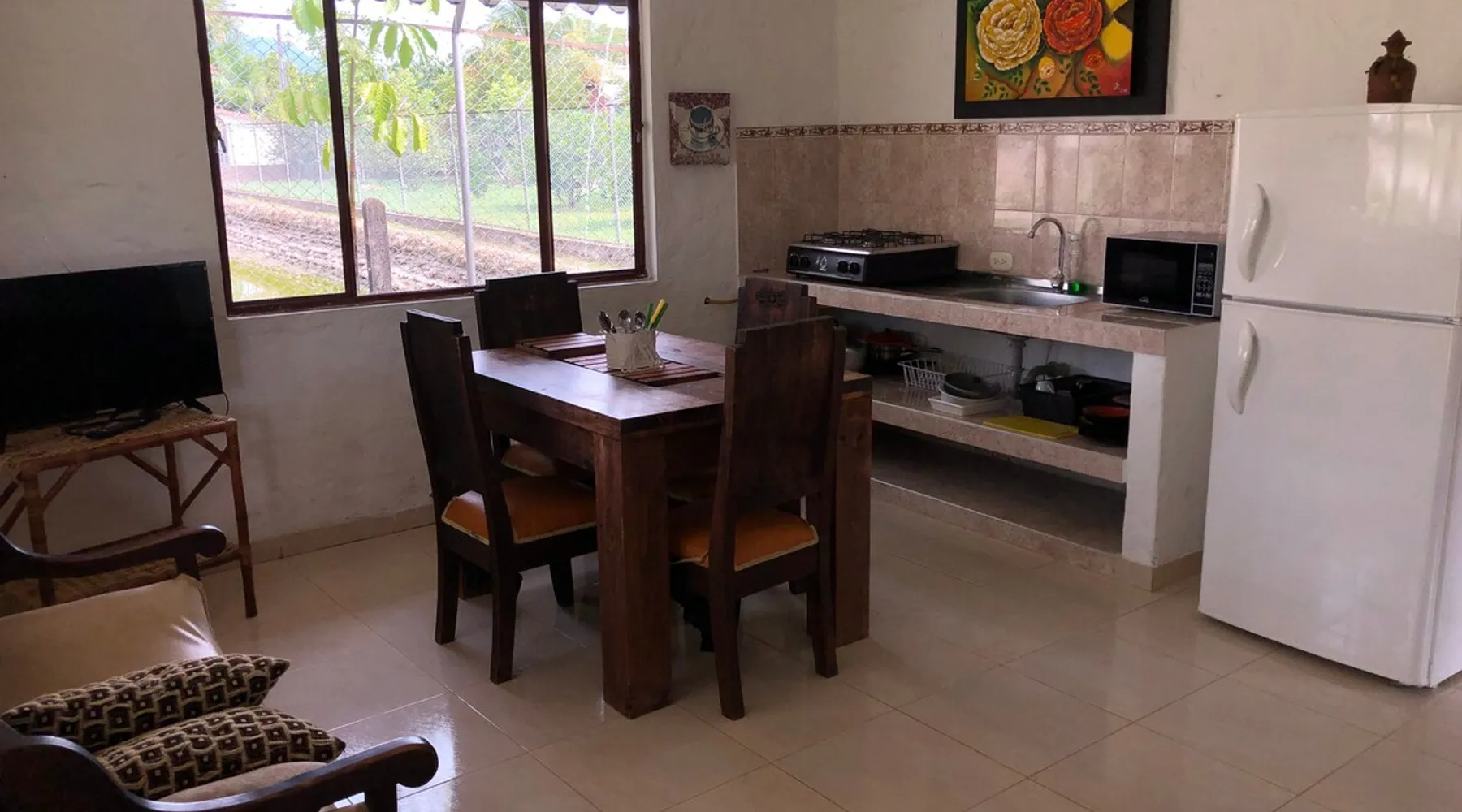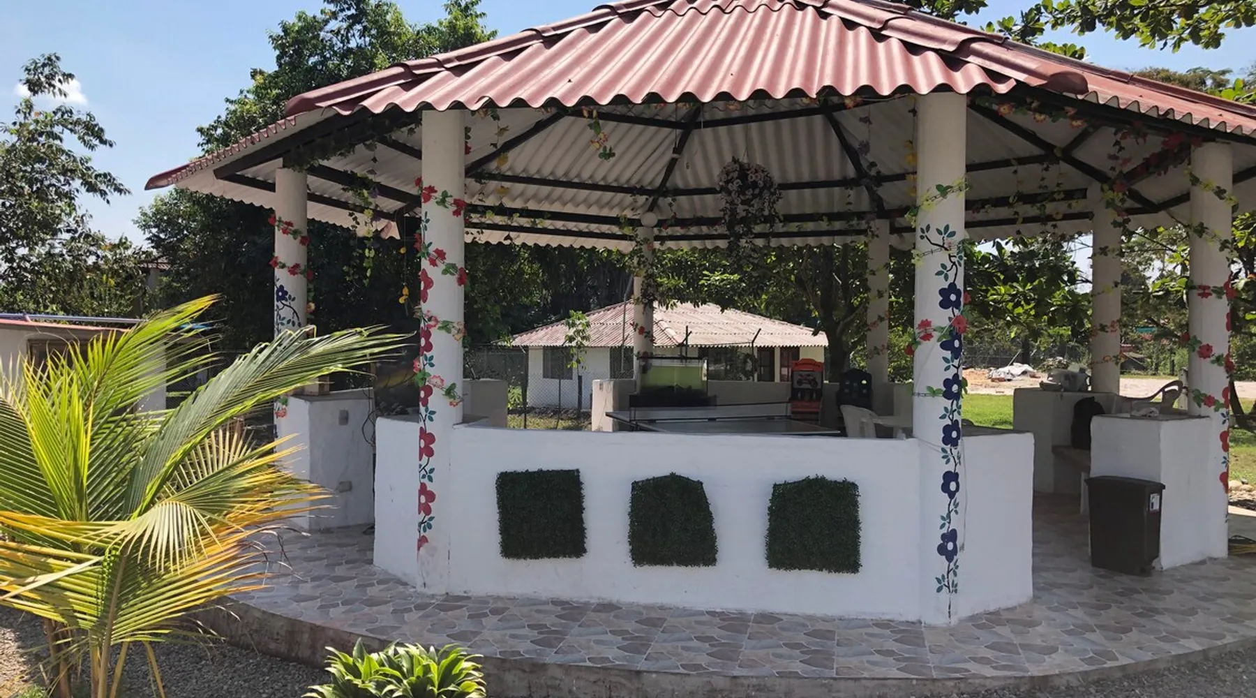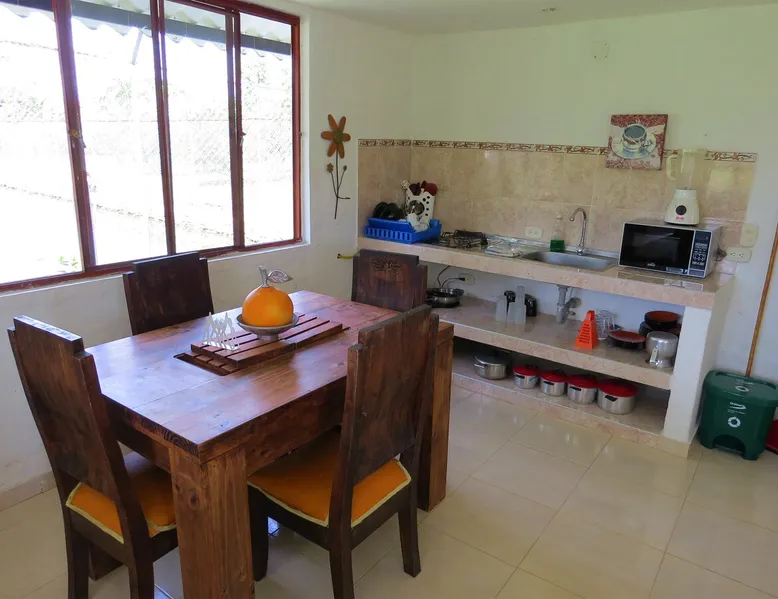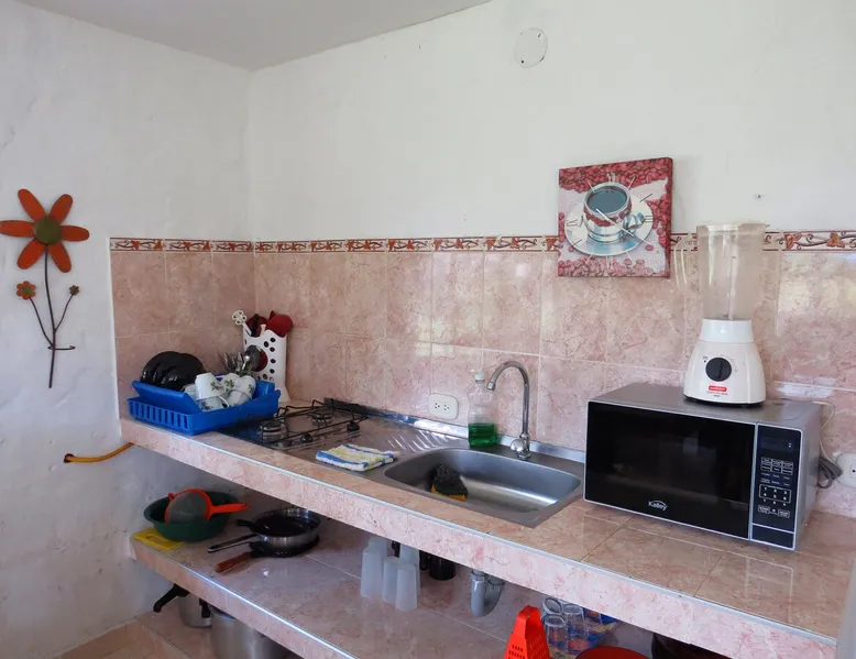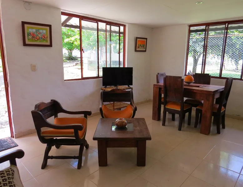 Villa Juanes farm located 15 minutes on the Villavicencio-Acacias road, It has a swimming pool, fishing lake, yew field, kiosk, soccer field in sand, barbecue area, fruit trees and an ideal space to rest away from the noise of the city. It is located 15 minutes away from the Villavicencio and 10 minutes from Acacias City. Close to restaurants and tourist attractions. The space With an area of approximately 1 hectare, it is an ideal space to share with the family. The rooms have a fan and the cabin has kitchen utensils and a refrigerator. Guest access Swimming pool, kiosk, shuffleboard, fishing lake, barbecue area, soccer field in sand, green areas and washing area. During your stay The farm has managers, Hector and his wife Luz, who will be more than willing to resolve any concerns during your stay. Registration Details 110617