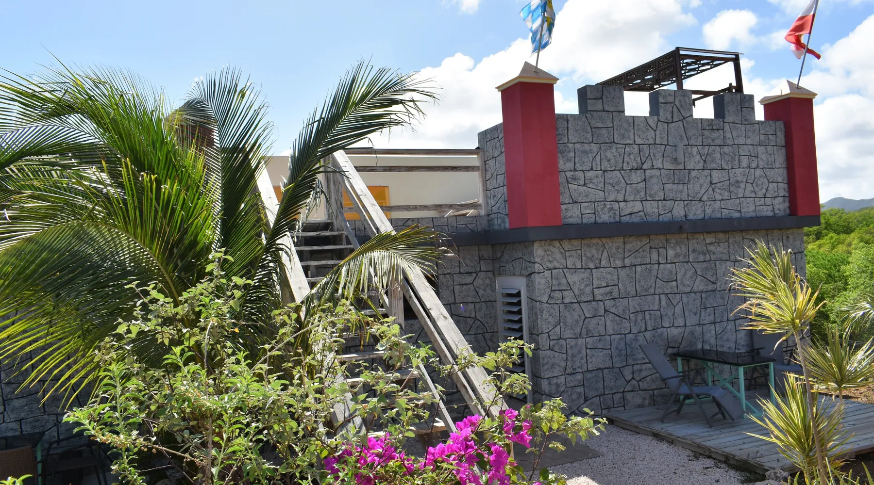 The Don Genaro apartment complex, which is generously laid out on 6000 square meters, offers a total of 9 residential units consisting of apartments / holiday homes of various sizes and features. The complex has a large chlorine-free swimming pool with a large hardwood deck and comfortable pool loungers, as well as a smaller relax pool. In addition, Don Genaro offers a spacious "Palappa" (shady palm leaf hut) with lounge furniture, hammocks and bar, a barbecue area / grill hut for sociable hours, a small castle chapel, a turtle enclosure and free parking spaces inside. If you want to switch off properly, then you've come to the right place. Enjoy the large tropical garden, the exotic wildlife and the wonderful view of the largest mountain Curaçaos - the Christoffelberg. The castle apartment "Camelot" has two bedrooms, each with a double bed (180 x 200 cm), air conditioning and ventilators. It offers two very spacious modern bathrooms. On the terrace with a view of the beautiful tropical garden and on the Christoffelberg there is a fully equipped outdoor kitchen with a dining bar and a dining area for 4 people. The Camelot also offers an outdoor living room with comfortable lounge furniture. Camelot Castle also has two afternoon terraces with barbecue facilities and a castle roof to look at the stars. features Free WiFi, mosquito nets, fans, inverter air conditioning, solar hot water, safe and / or extra locker, free indoor parking spaces.