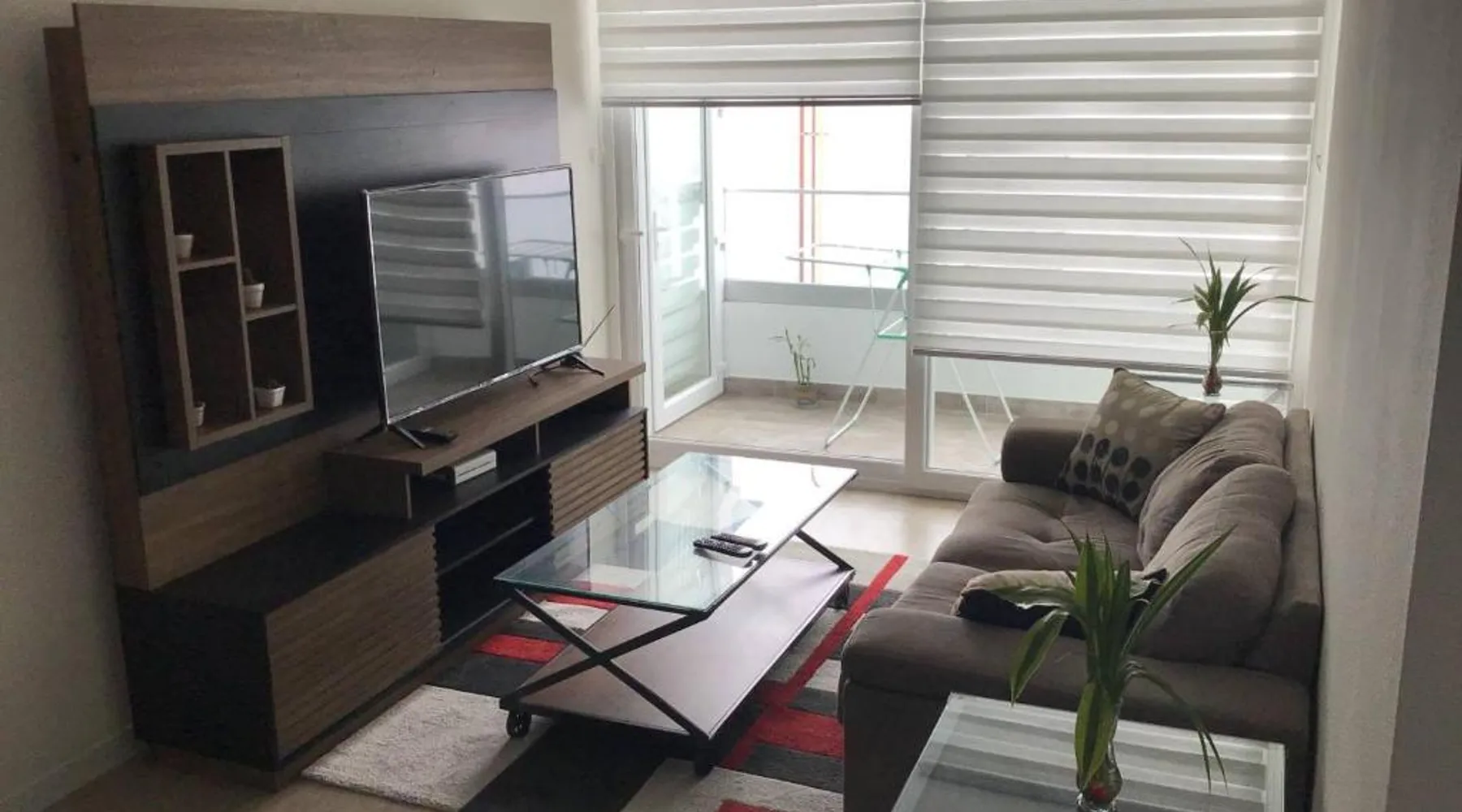 Spacious Accommodations: Moderno departamento Miraflorino con aire acondicionado in Miraflores offers a spacious apartment with two bedrooms and three bathrooms. The living room includes a sofa bed and a dining area. Modern Amenities: Guests enjoy a terrace, balcony, and free WiFi. The apartment features a kitchenette with a coffee machine, microwave, and oven. Additional amenities include a washing machine, dishwasher, and free toiletries. Convenient Location: Located 12 mi from Jorge Chavez International Airport, the property is a 16-minute walk from Larcomar and 1.2 mi from Huaca Pucllana. Nearby attractions include the Museum of the Nation and Huaca Huallamarca. Guest Services: The apartment provides private check-in and check-out, a 24-hour front desk, concierge service, and free on-site parking. Additional services include bicycle parking, luggage storage, and full-day security. This spacious apartment is consisted of of 1 living room, 2 separate bedrooms and 3 bathrooms with a shower and free toiletries. The well-equipped kitchen features a refrigerator, kitchenware, an oven and a microwave. The apartment offers a washing machine, a mini-bar, a tea and coffee maker, a flat-screen TV with cable channels, as well as an inner courtyard view. The unit offers 4 beds.