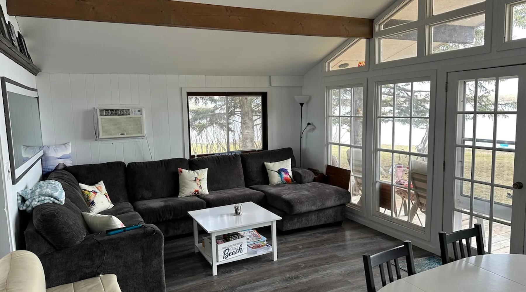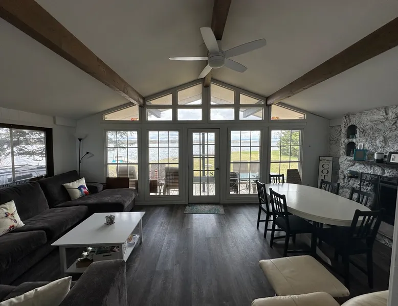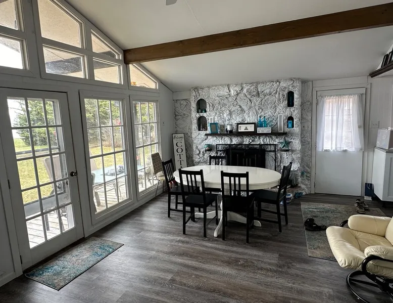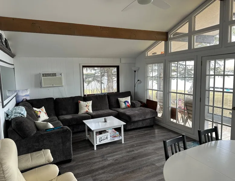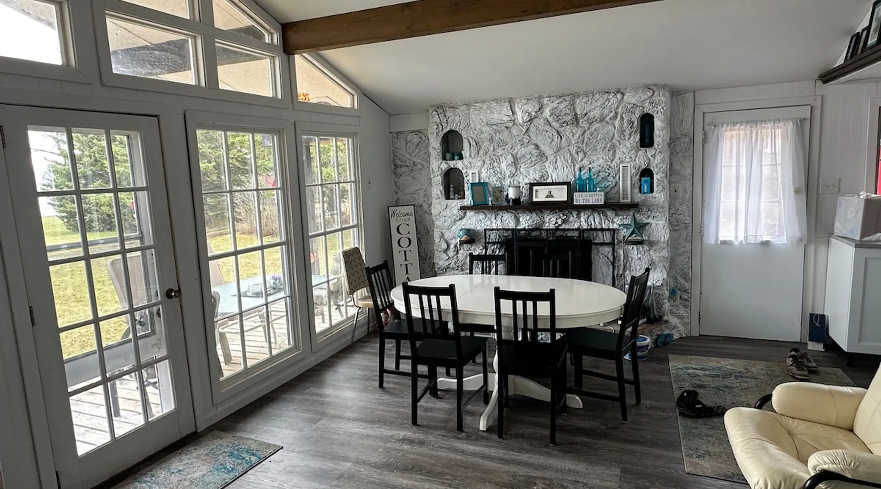 Relax with the whole family at this peaceful place to stay. Quiet neighbors and a tranquil setting to rest and relax. Just steps to the lake and a large deck to enjoy the view. Swimming, fishing, and enjoying the summer the way it’s meant to be. There are 3 bedrooms, each with a double bed, and 2 bathrooms, each with a sink, toilet and shower. A fully equipped kitchen and black stone grill are ready for you! There is no wifi or tv! There are board games! The space Our family built this cottage by hand in the early 70’s and has and will be the location of many fond memories. Although it was recently renovated it does show signs of wear as can be expected but rest assured it is clean, cozy, comfortable and ready for you to make your own lasting memories with. Guest access The entire cottage, dock, and paddle boat are available for use. The red barn and shed under the windmill are not available for use. Other things to note A new well was installed in 2021. We use the well water for cleaning, and showering but we do supply bottled water for drinking and cooking with. The well water was tested in 2024 and was safe. There is no wifi or tv but the view, fire pit, lake, and board games make up for that!