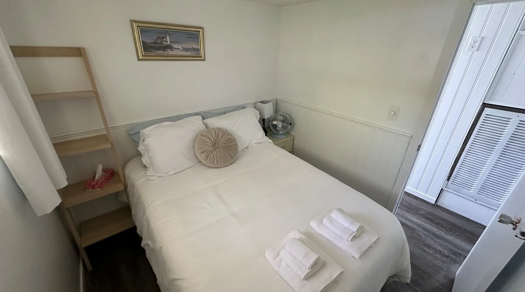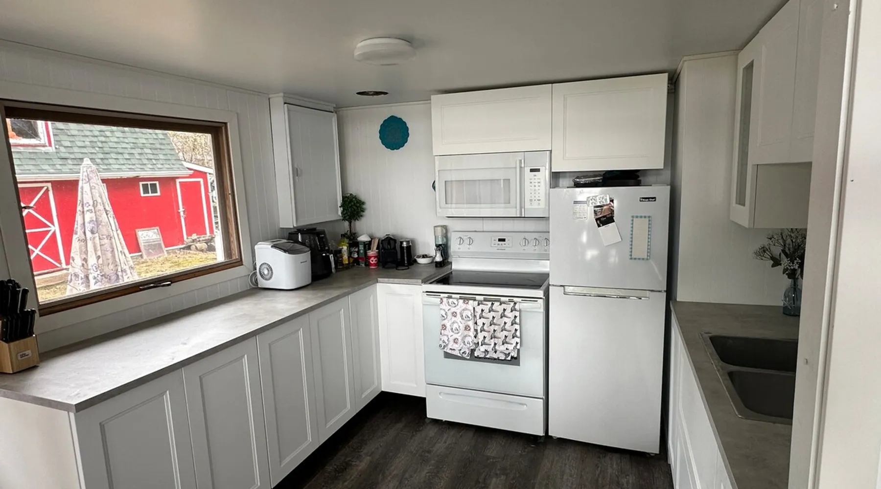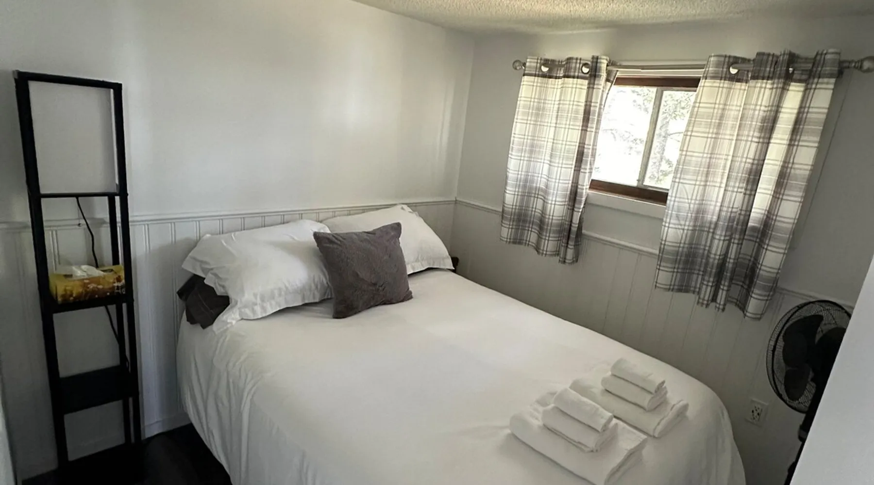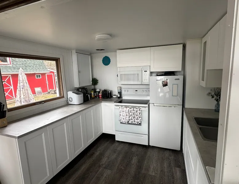 Relax with the whole family at this peaceful place to stay. Quiet neighbors and a tranquil setting to rest and relax. Just steps to the lake and a large deck to enjoy the view. Swimming, fishing, and enjoying the summer the way it’s meant to be. There are 3 bedrooms, each with a double bed, and 2 bathrooms, each with a sink, toilet and shower. A fully equipped kitchen and black stone grill are ready for you! There is no wifi or tv! There are board games! The space Our family built this cottage by hand in the early 70’s and has and will be the location of many fond memories. Although it was recently renovated it does show signs of wear as can be expected but rest assured it is clean, cozy, comfortable and ready for you to make your own lasting memories with. Guest access The entire cottage, dock, and paddle boat are available for use. The red barn and shed under the windmill are not available for use. Other things to note A new well was installed in 2021. We use the well water for cleaning, and showering but we do supply bottled water for drinking and cooking with. The well water was tested in 2024 and was safe. There is no wifi or tv but the view, fire pit, lake, and board games make up for that!