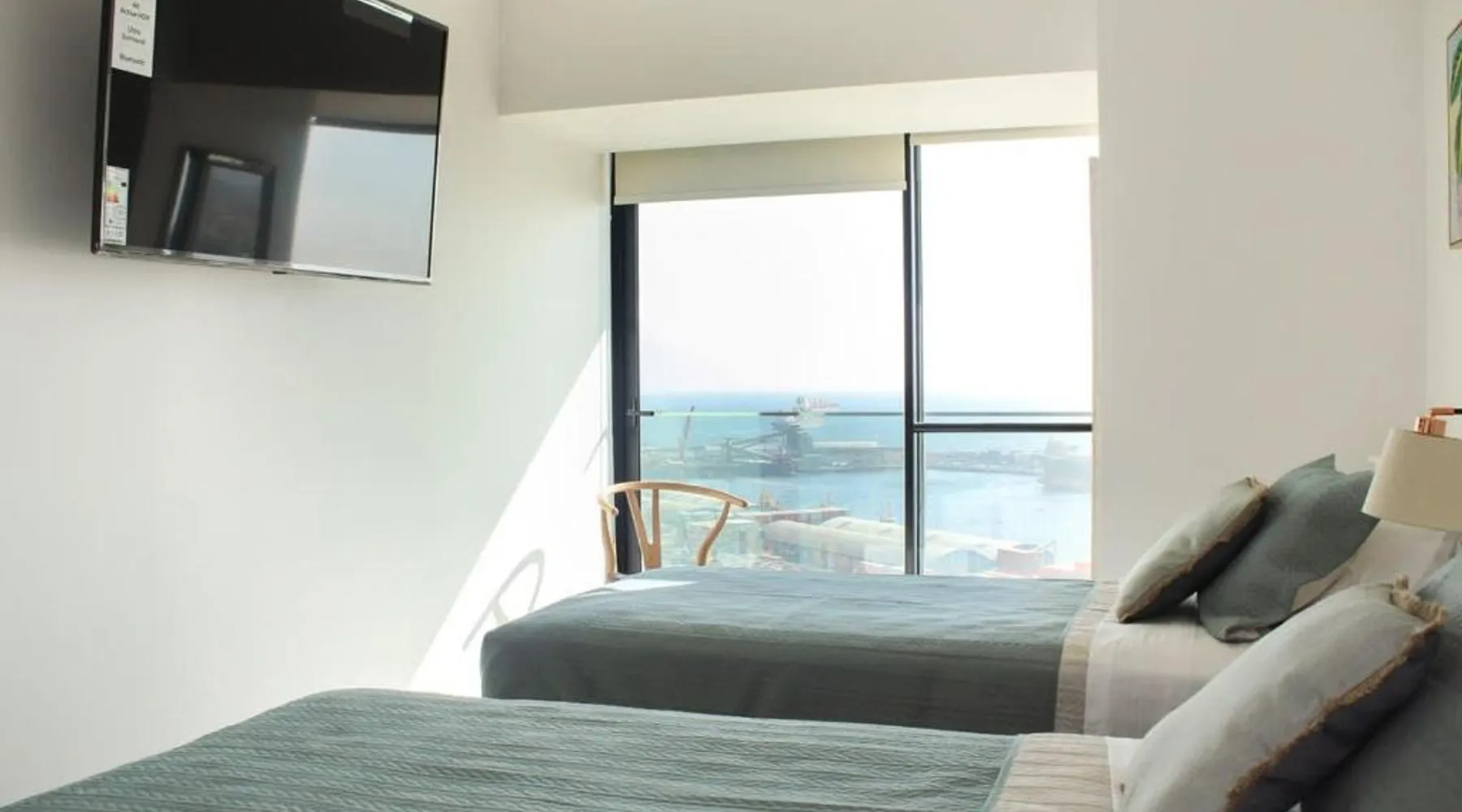 Spacious Accommodations: HOM I Depto de Lujo 2Dorm 2 Baños Inmejorable Ubicación 0621 in Antofagasta offers a spacious apartment with two bedrooms and two bathrooms. Guests enjoy sea views from the patio and a fully equipped kitchen with modern appliances. Exceptional Facilities: The property features an outdoor swimming pool and free WiFi. Additional amenities include a elevator, free parking, and a private entrance. Reception staff speak English, ensuring comfortable communication. Prime Location: Located 17 mi from Andres Sabella Galvez International Airport, the apartment is a few steps from Playa Club. Nearby attractions include Regional Calvo y Bascuñán Stadium (1.7 mi) and La Portada de Antofagasta (12 mi). Highly rated by guests. Boasting a private entrance, this spacious apartment also comes with 2 separate bedrooms and 2 bathrooms with a hairdryer. In the well-fitted kitchen, guests will find a stovetop, a refrigerator, a dishwasher and kitchenware. The apartment has a tea and coffee maker, a patio and sea views. The unit has 3 beds.