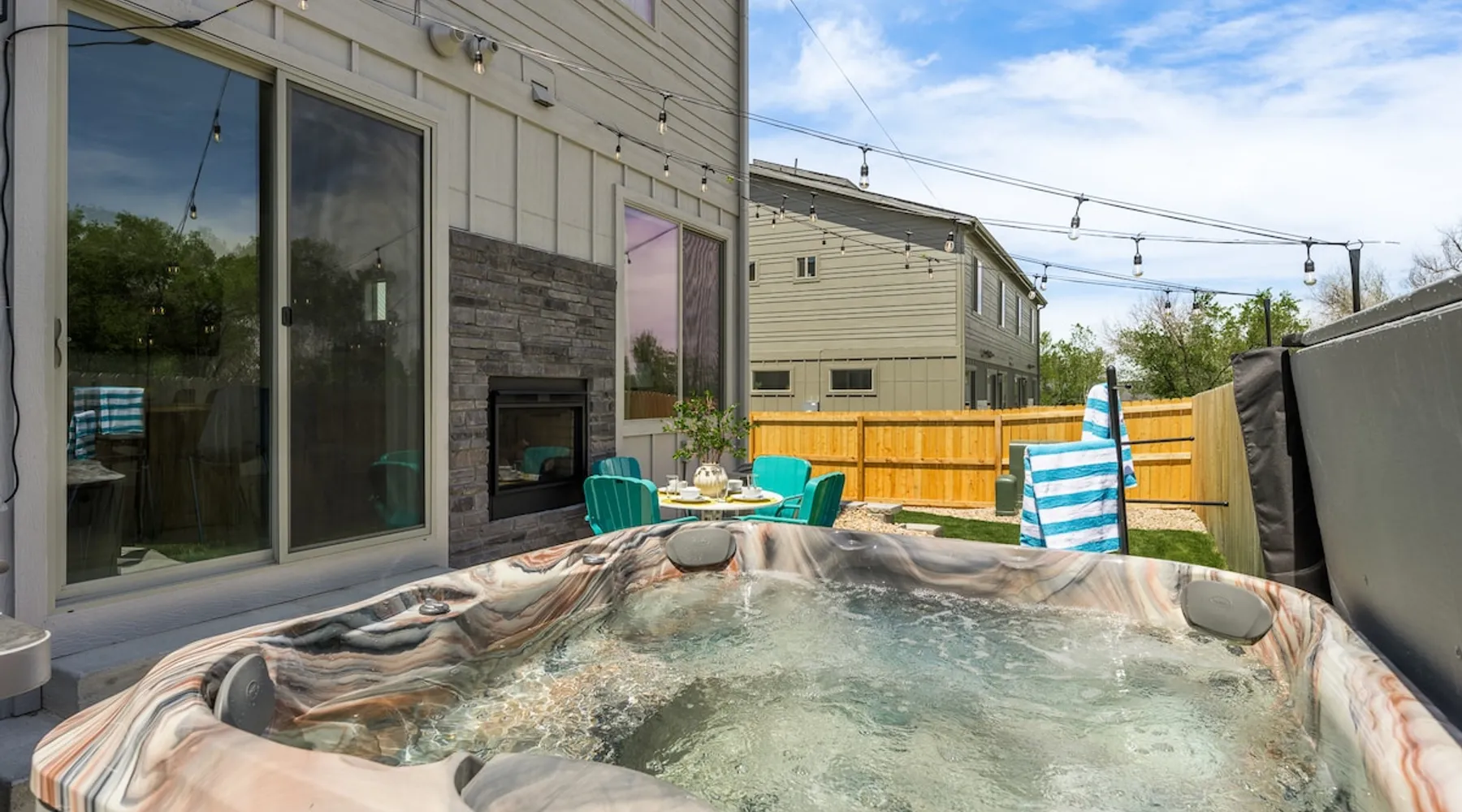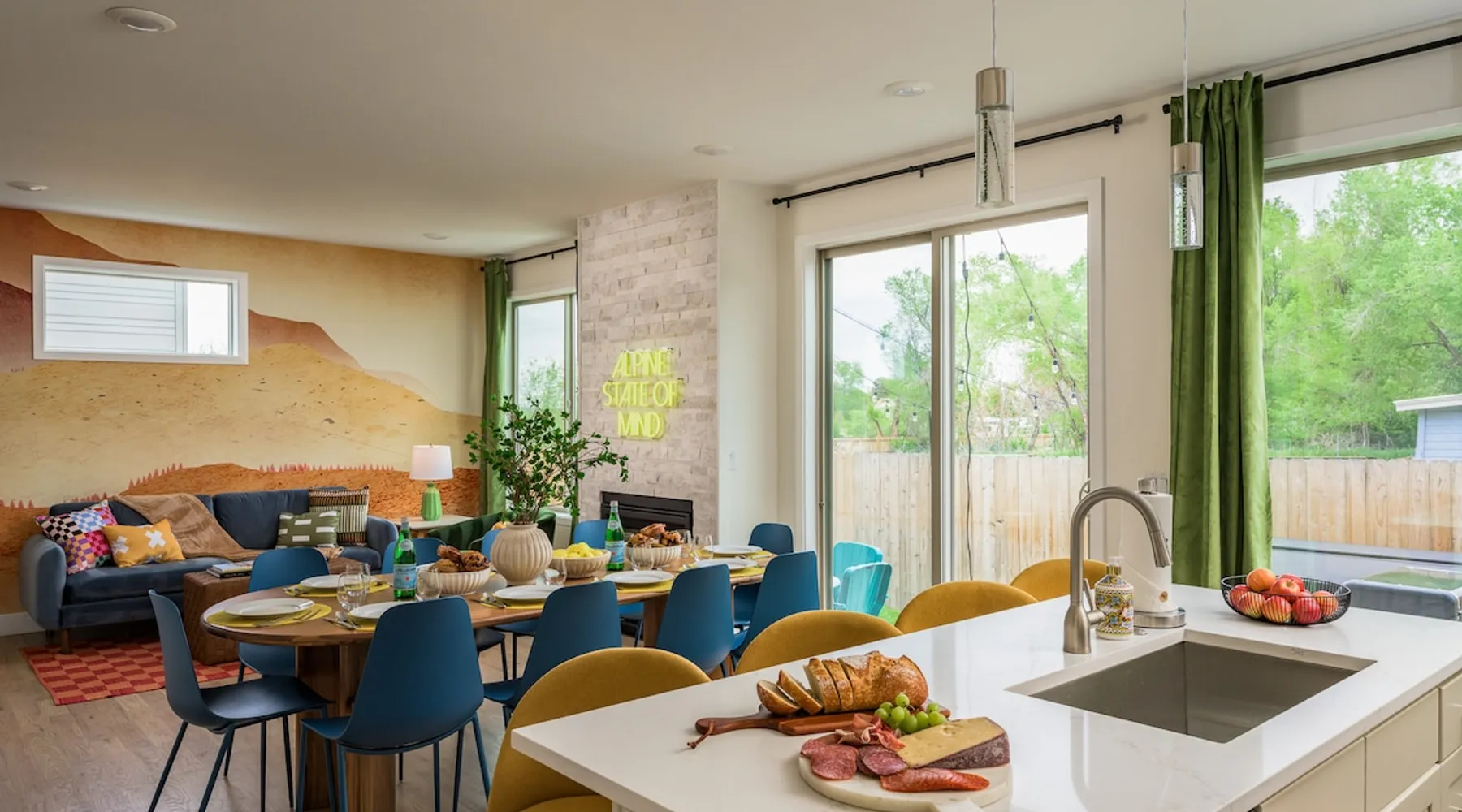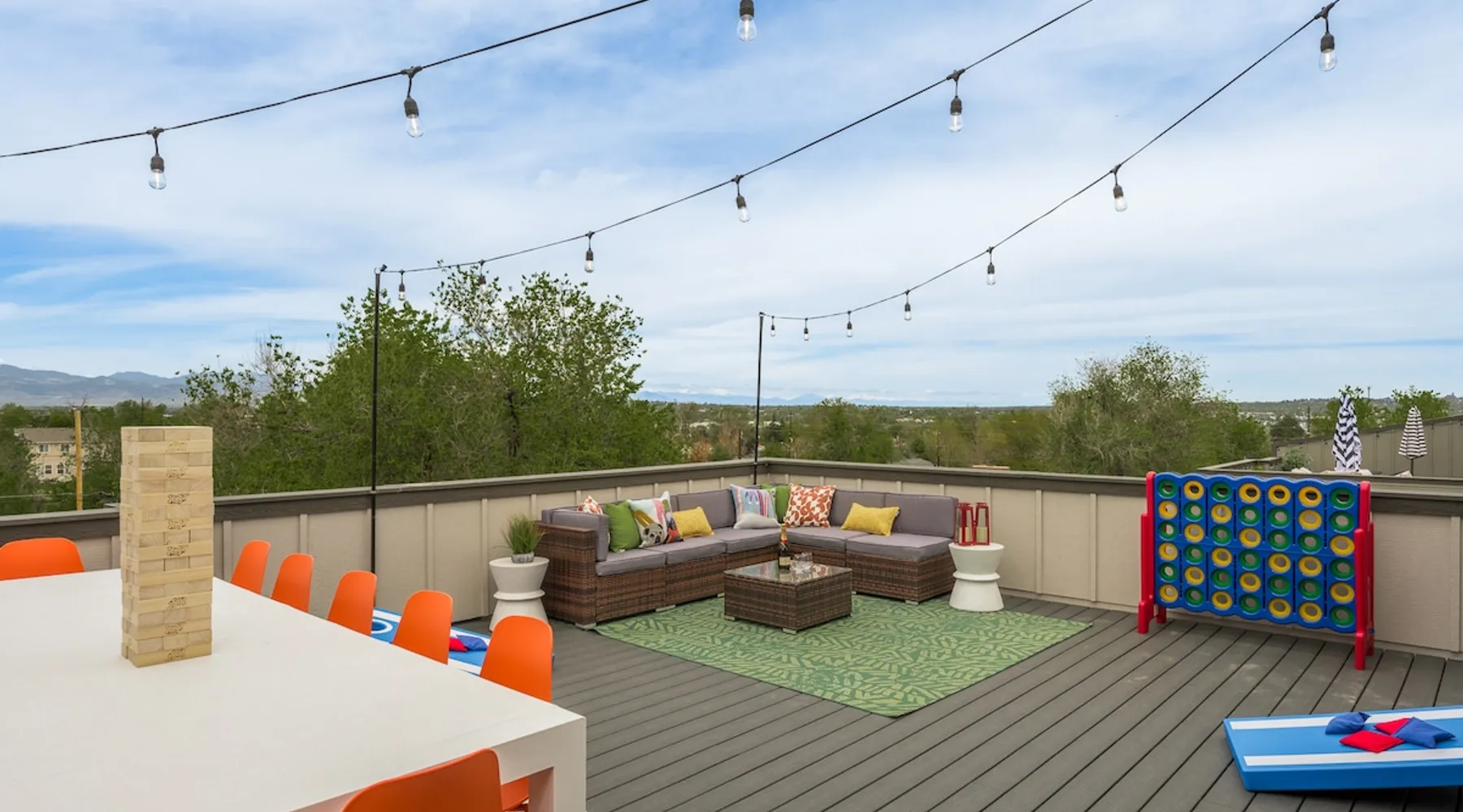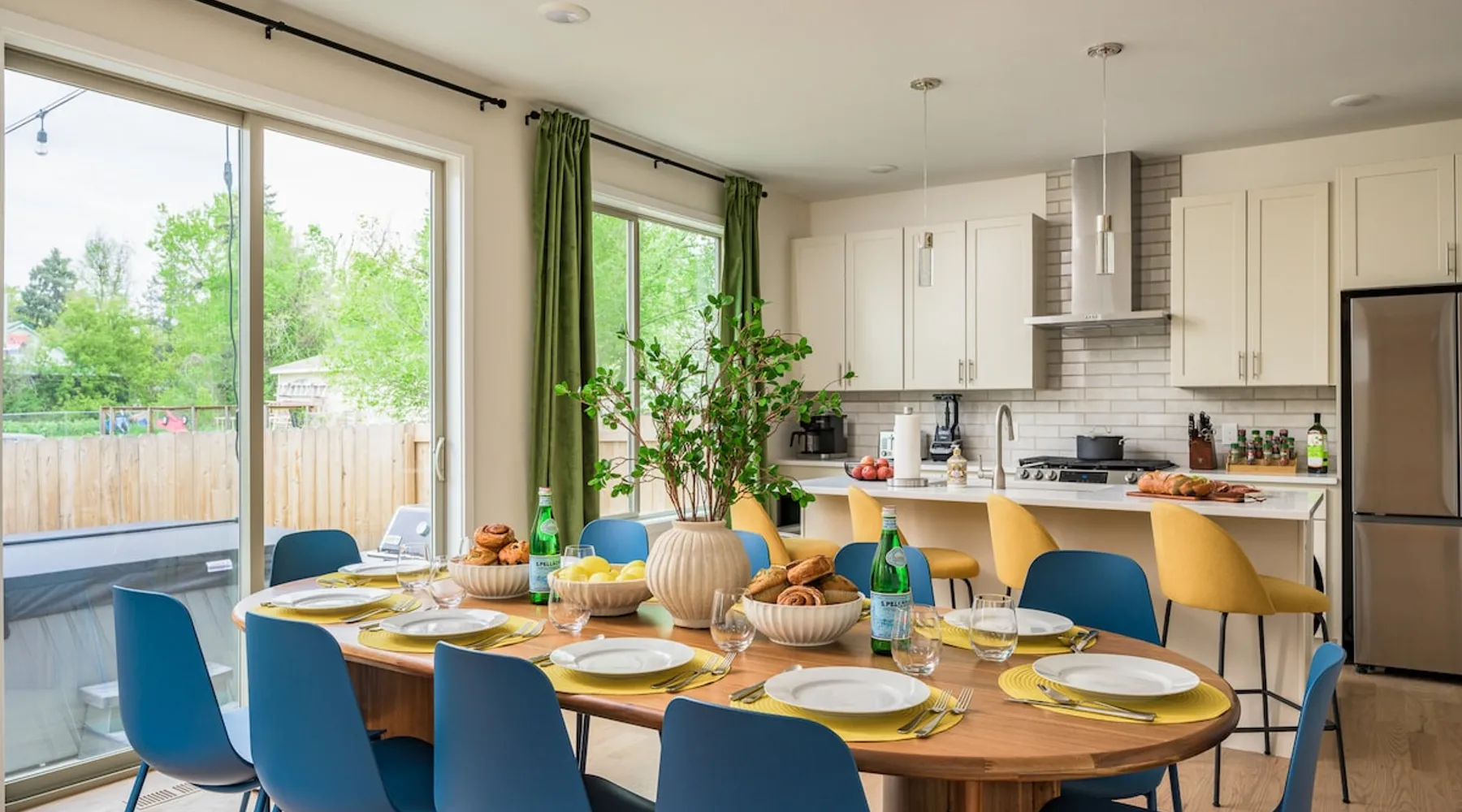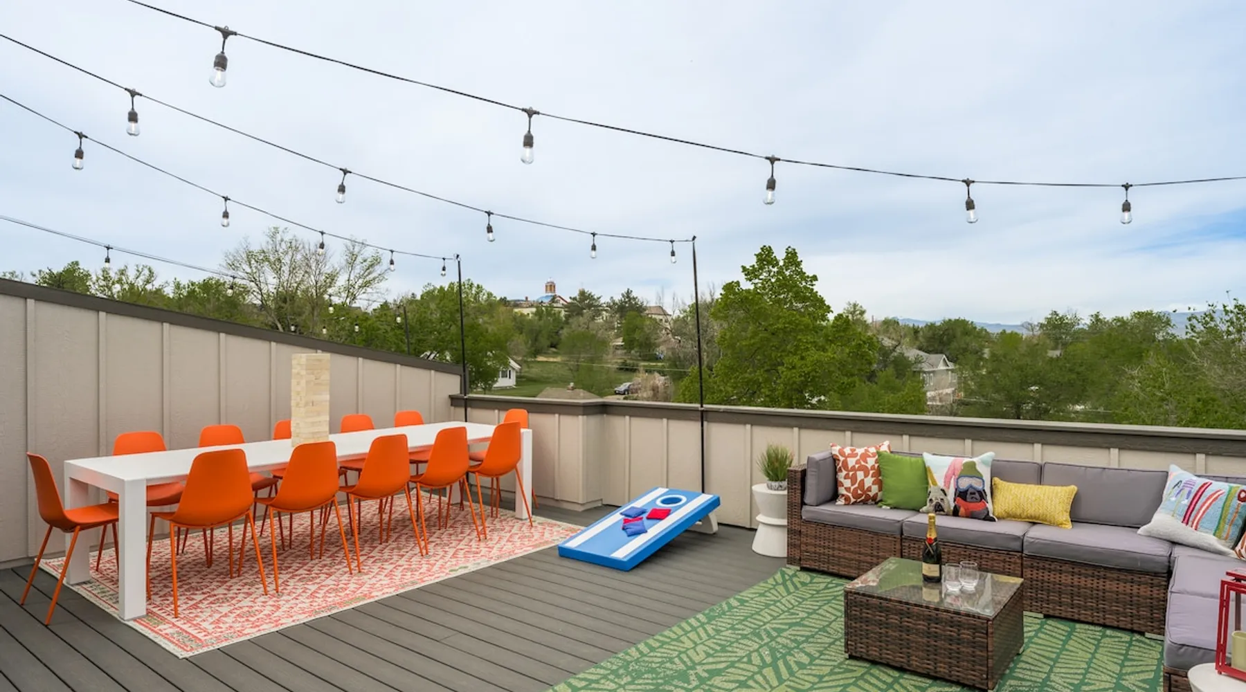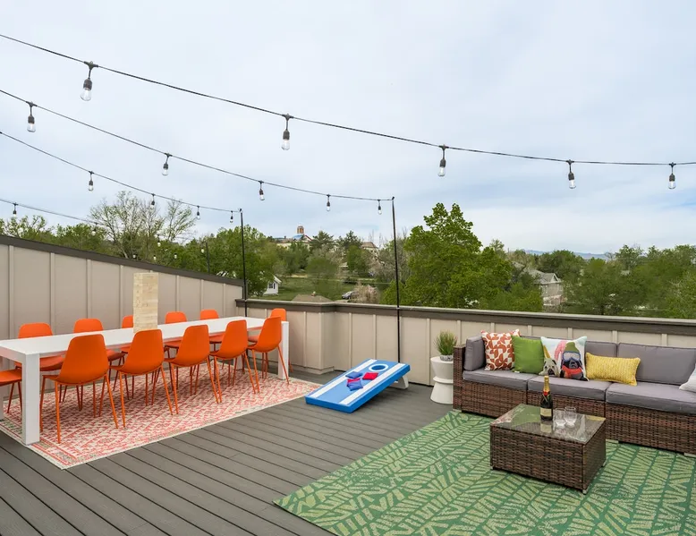 View House A is a beautifully designed stay located in the city of Denver. This building is brand new and has never had anyone live there! Every feature (and there are a lot of them!) of this home was curated from the ground up to create lasting memories for your group! This home features a game room, massive rooftop, hot tub, movie room, indoor/outdoor fireplace, and incredible design. We own both View Houses A & B so should your group need more space, reach out about renting them both! The space BEDROOMS This 2,500 sqft new build townhome has 4 bedrooms with smart televisions and can accommodate up to 16 guests comfortably. There are a total of 2 King beds, 4 queen beds, 1 sleeper sofa, 1 air mattress, and two additional couches. Bedroom 1 - King bed, private balcony, smart television, private bathroom, and dedicated workspace. Bedroom 2 - 2 Queen Beds, room darkening shades, private bathroom, and smart television. Bedroom 3 - King Bed, room darkening shades, private bathroom, and smart television. Bedroom 4 - 2 Queen Beds, room darkening shades, private bathroom, and smart television. BATHROOMS You'll find 4 full and 1 half clean and fully stocked bathrooms with bright lighting, large mirrors, and hotel-grade towels in this home. You'll find 4 walk-in showers and 4 shower tub combos. All showers are stocked with shampoo, conditioner, and body wash for your group's needs. KITCHEN & LOUNGE Prepare a quick snack or a large feast in the fully stocked kitchen. It features beautiful countertops and modern appliances with everything you will need to cook magnificent dinners. The dining areas is perfect for enjoying a meal with your group and guests. The indoor and outdoor dining tables each have enough chairs for 10 guests with an additional 4 seats at the kitchen island! The kitchen flows effortlessly into the spacious lounge and shares an indoor/outdoor fireplace with the backyard. Whether you want to open up your laptop to plan adventures for the day, host a dinner, or just want to take things easy, this open-concept living room gives you all the space you need. OUTSIDE SPACE There are 2 outdoor spaces on the property! There is a massive rooftop deck with a 10-person dining table, cornhole, couches, and incredible views of the mountains. There is also backyard with a 5-person hot tub, BBQ grill, and 4-person breakfast dining area. MOVIE Lounges There is a spacious basement lounge for watching movies. Each is complete with plenty of seating, 75" smart televisions, and popcorn machines! KEY AMENITIES: ☆ 8 bedrooms; 2 King, 4 Queens, 1 sleeper sofas, 1 air mattresses, and 2 additional couches. ☆ Smart Televisions are in each bedroom and lounge for a total of 7 on the property ☆ immaculate views from the private rooftop deck ☆ Master bedrooms complete w/ private balcony and dedicated workspace. ☆ 4.5 bathrooms ☆ 5-person hot tubs ☆ Game room w/ pool table, air hockey table, and 2 arcade machines. ☆ Seating for 10 at each of the dining tables and 4 seats at each kitchen island ☆ 10 person outdoor dining table ☆ Fully stocked kitchen ☆ Large, efficient, washer & dryer ☆ Beautiful modern design ☆ Easy and simple automatic, self-check-in process Experience Denver with us & learn more below! Guest access You’ll have access to every room and feature of this home except the owner's closet. Make yourself at home; your hosts are just a phone call or message away, if you have any questions or want recommendations for things to do nearby. There is a keypad on the front door for easy and secure access to the home. Other things to note Several days prior to check-in I will send you a link which contains an e-manual. In this manual you will find all necessary and relevant information relating to your stay. I have also included my suggestions for the best things to do in town, my favorite restaurants, activities, hikes, nightlife, and much more. This home is in a residential area and showing respect to the neighbors is very important. Parties will be shut down and possibly given financial consequences. If you are unsure if your group fits this description, please reach out to ask and we will be happy to help. Only guests on the reservation are allowed on the property. Please note that smoking of any kind is forbidden inside and will result in a minimum fine of $1000. There are two designated parking spots on the driveway, there is NO ADDITIONAL PARKING available on the block- we recommend no more than 2 cars Reservations may be subject to extra guest fees, as well as additional charges for optional services such as adding pets or requesting early check-ins.