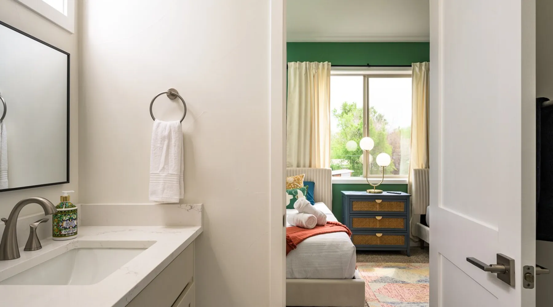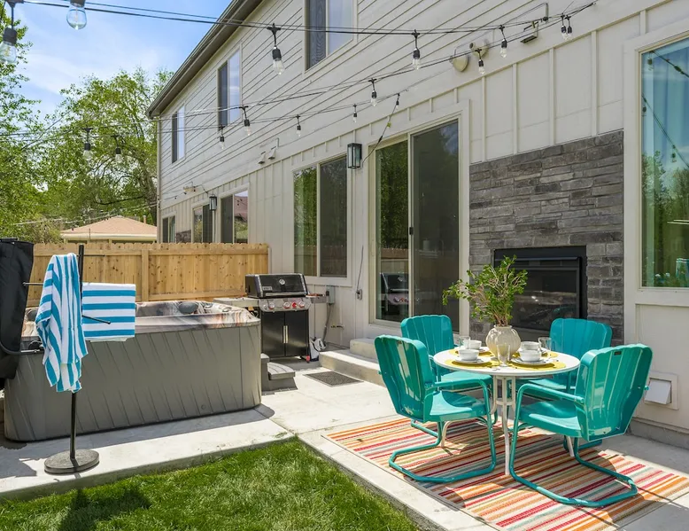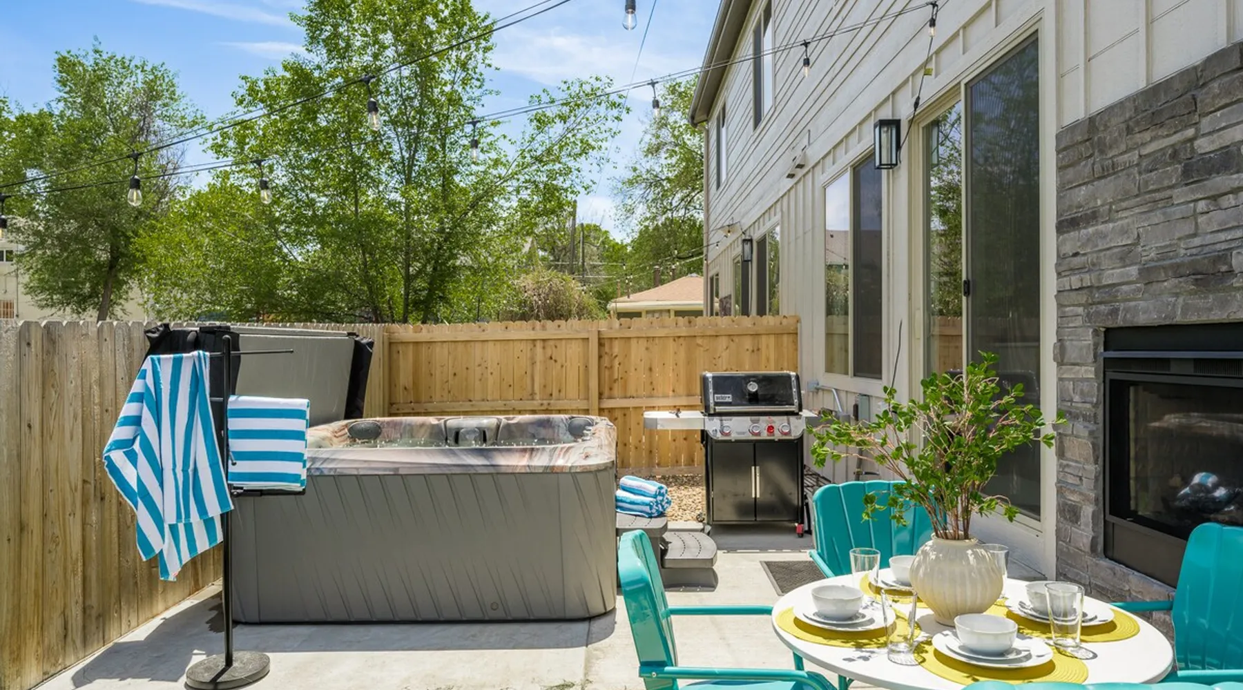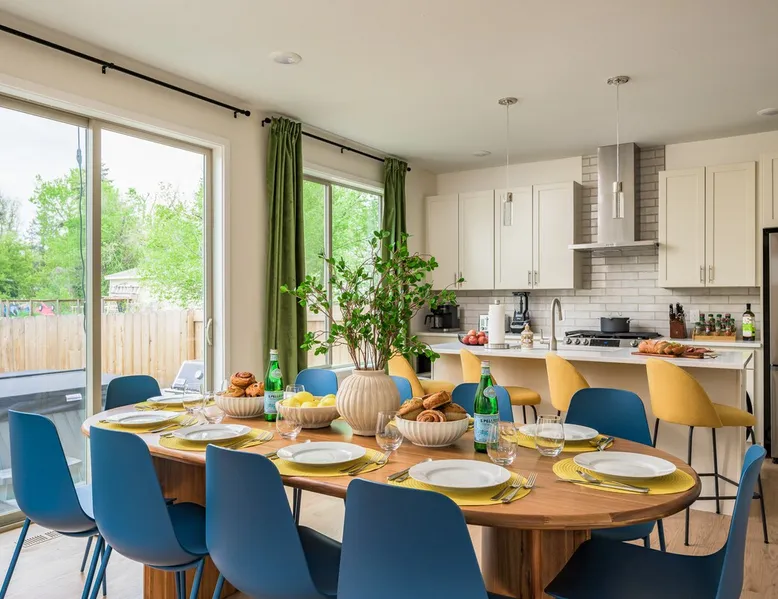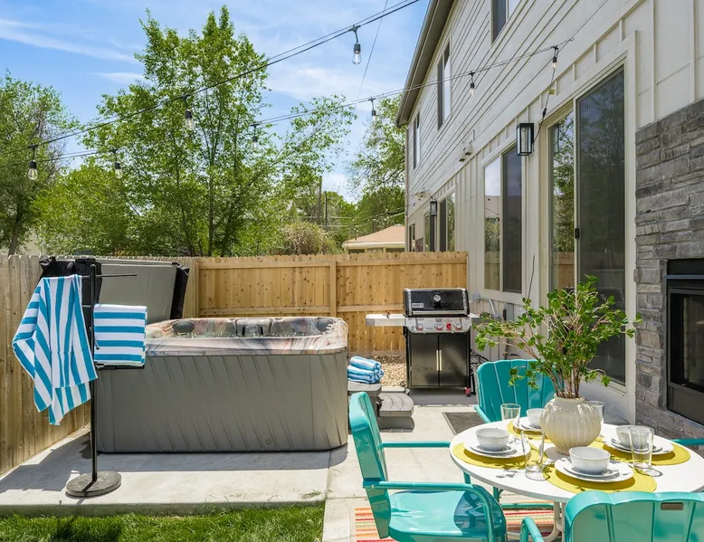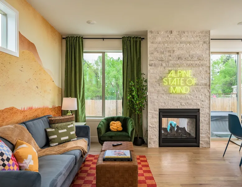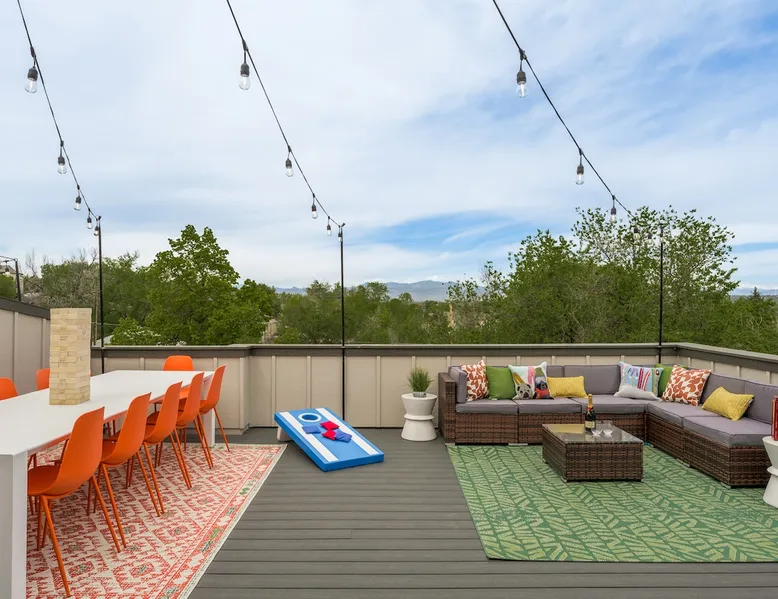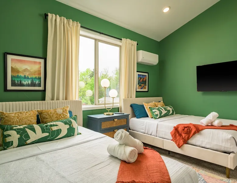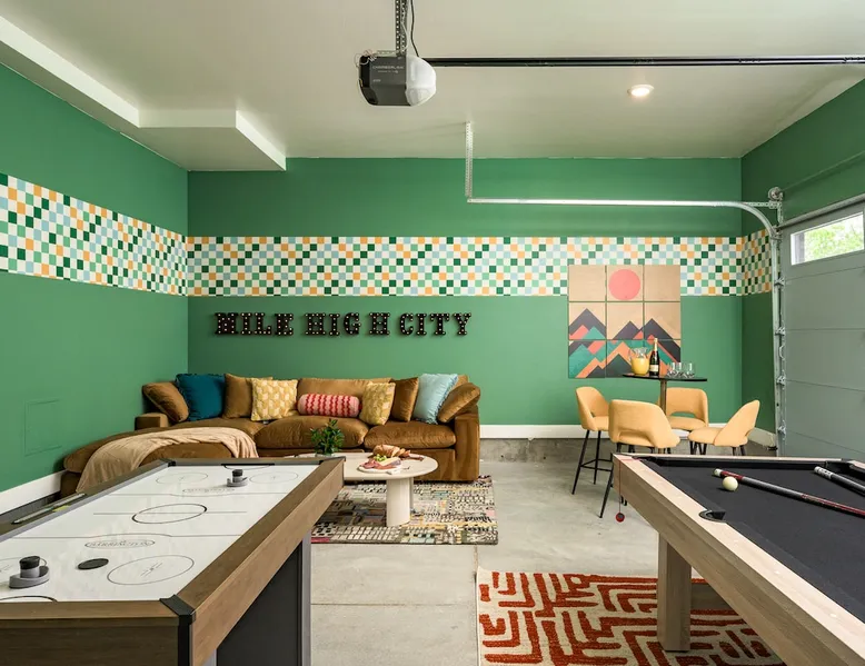 View House A is a beautifully designed stay located in the city of Denver. This building is brand new and has never had anyone live there! Every feature (and there are a lot of them!) of this home was curated from the ground up to create lasting memories for your group! This home features a game room, massive rooftop, hot tub, movie room, indoor/outdoor fireplace, and incredible design. We own both View Houses A & B so should your group need more space, reach out about renting them both! The space BEDROOMS This 2,500 sqft new build townhome has 4 bedrooms with smart televisions and can accommodate up to 16 guests comfortably. There are a total of 2 King beds, 4 queen beds, 1 sleeper sofa, 1 air mattress, and two additional couches. Bedroom 1 - King bed, private balcony, smart television, private bathroom, and dedicated workspace. Bedroom 2 - 2 Queen Beds, room darkening shades, private bathroom, and smart television. Bedroom 3 - King Bed, room darkening shades, private bathroom, and smart television. Bedroom 4 - 2 Queen Beds, room darkening shades, private bathroom, and smart television. BATHROOMS You'll find 4 full and 1 half clean and fully stocked bathrooms with bright lighting, large mirrors, and hotel-grade towels in this home. You'll find 4 walk-in showers and 4 shower tub combos. All showers are stocked with shampoo, conditioner, and body wash for your group's needs. KITCHEN & LOUNGE Prepare a quick snack or a large feast in the fully stocked kitchen. It features beautiful countertops and modern appliances with everything you will need to cook magnificent dinners. The dining areas is perfect for enjoying a meal with your group and guests. The indoor and outdoor dining tables each have enough chairs for 10 guests with an additional 4 seats at the kitchen island! The kitchen flows effortlessly into the spacious lounge and shares an indoor/outdoor fireplace with the backyard. Whether you want to open up your laptop to plan adventures for the day, host a dinner, or just want to take things easy, this open-concept living room gives you all the space you need. OUTSIDE SPACE There are 2 outdoor spaces on the property! There is a massive rooftop deck with a 10-person dining table, cornhole, couches, and incredible views of the mountains. There is also backyard with a 5-person hot tub, BBQ grill, and 4-person breakfast dining area. MOVIE Lounges There is a spacious basement lounge for watching movies. Each is complete with plenty of seating, 75" smart televisions, and popcorn machines! KEY AMENITIES: ☆ 8 bedrooms; 2 King, 4 Queens, 1 sleeper sofas, 1 air mattresses, and 2 additional couches. ☆ Smart Televisions are in each bedroom and lounge for a total of 7 on the property ☆ immaculate views from the private rooftop deck ☆ Master bedrooms complete w/ private balcony and dedicated workspace. ☆ 4.5 bathrooms ☆ 5-person hot tubs ☆ Game room w/ pool table, air hockey table, and 2 arcade machines. ☆ Seating for 10 at each of the dining tables and 4 seats at each kitchen island ☆ 10 person outdoor dining table ☆ Fully stocked kitchen ☆ Large, efficient, washer & dryer ☆ Beautiful modern design ☆ Easy and simple automatic, self-check-in process Experience Denver with us & learn more below! Guest access You’ll have access to every room and feature of this home except the owner's closet. Make yourself at home; your hosts are just a phone call or message away, if you have any questions or want recommendations for things to do nearby. There is a keypad on the front door for easy and secure access to the home. Other things to note Several days prior to check-in I will send you a link which contains an e-manual. In this manual you will find all necessary and relevant information relating to your stay. I have also included my suggestions for the best things to do in town, my favorite restaurants, activities, hikes, nightlife, and much more. This home is in a residential area and showing respect to the neighbors is very important. Parties will be shut down and possibly given financial consequences. If you are unsure if your group fits this description, please reach out to ask and we will be happy to help. Only guests on the reservation are allowed on the property. Please note that smoking of any kind is forbidden inside and will result in a minimum fine of $1000. There are two designated parking spots on the driveway, there is NO ADDITIONAL PARKING available on the block- we recommend no more than 2 cars Reservations may be subject to extra guest fees, as well as additional charges for optional services such as adding pets or requesting early check-ins.