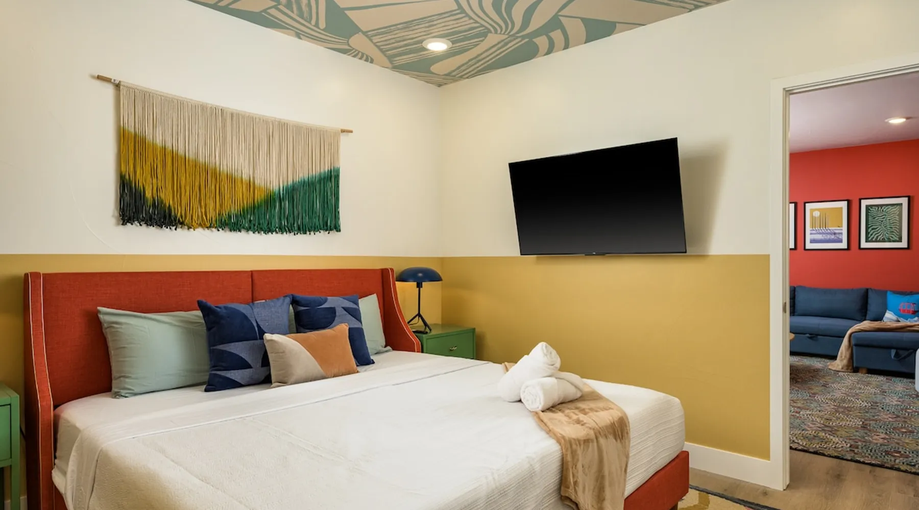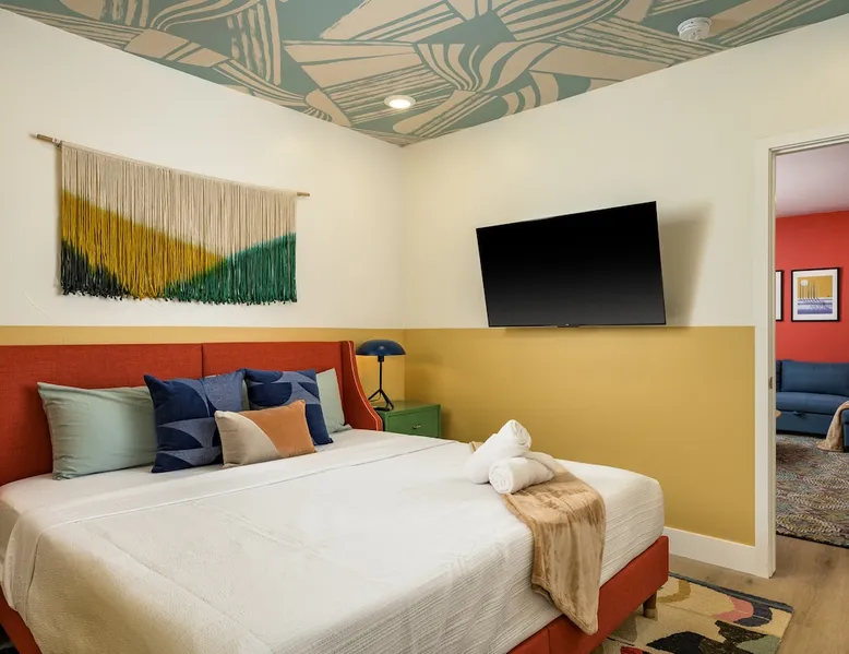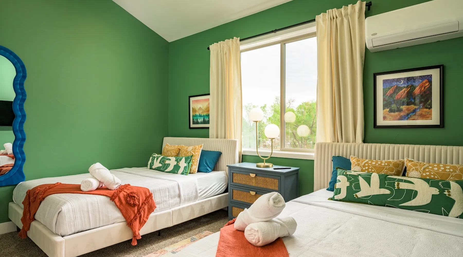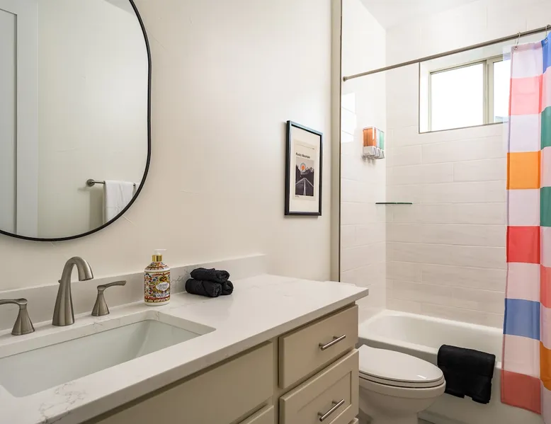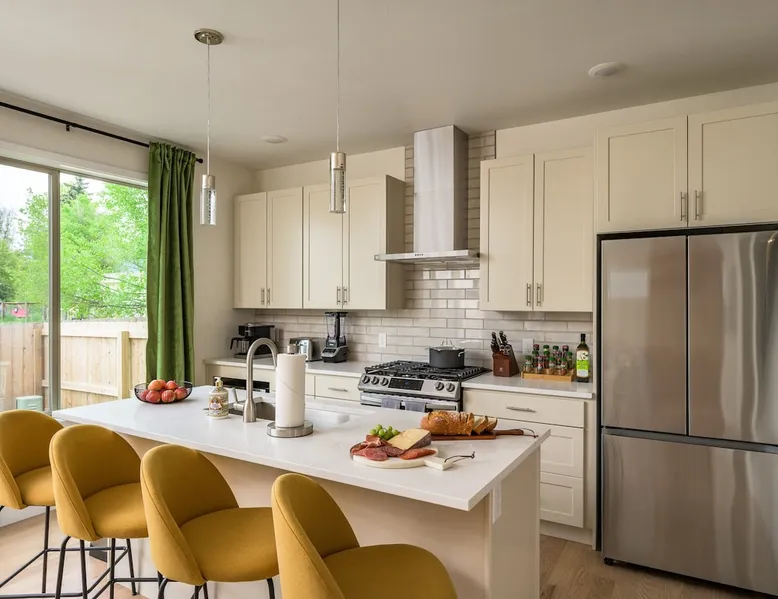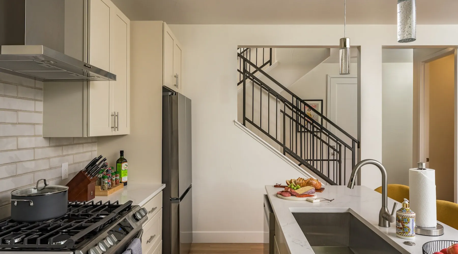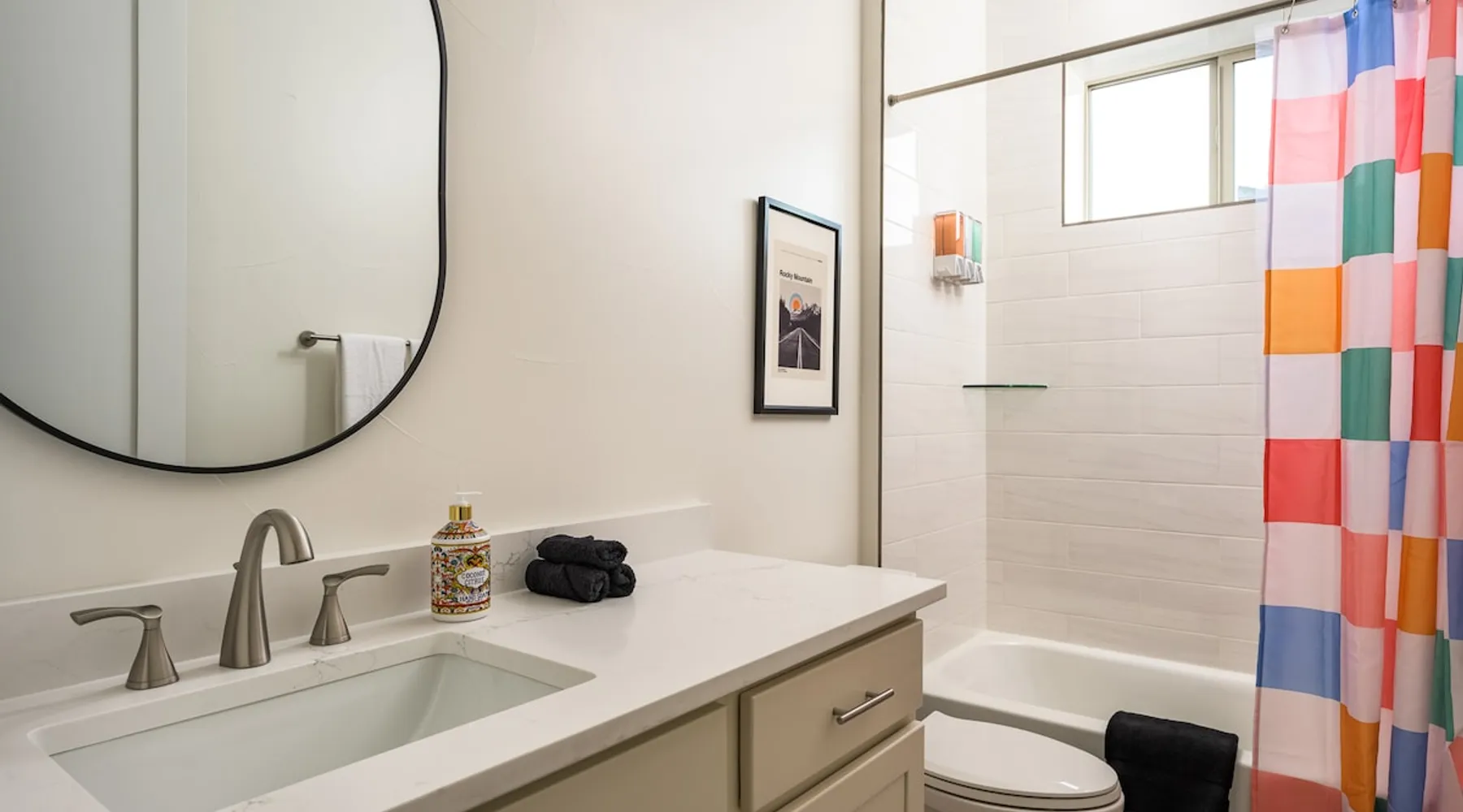 View House A is a beautifully designed stay located in the city of Denver. This building is brand new and has never had anyone live there! Every feature (and there are a lot of them!) of this home was curated from the ground up to create lasting memories for your group! This home features a game room, massive rooftop, hot tub, movie room, indoor/outdoor fireplace, and incredible design. We own both View Houses A & B so should your group need more space, reach out about renting them both! The space BEDROOMS This 2,500 sqft new build townhome has 4 bedrooms with smart televisions and can accommodate up to 16 guests comfortably. There are a total of 2 King beds, 4 queen beds, 1 sleeper sofa, 1 air mattress, and two additional couches. Bedroom 1 - King bed, private balcony, smart television, private bathroom, and dedicated workspace. Bedroom 2 - 2 Queen Beds, room darkening shades, private bathroom, and smart television. Bedroom 3 - King Bed, room darkening shades, private bathroom, and smart television. Bedroom 4 - 2 Queen Beds, room darkening shades, private bathroom, and smart television. BATHROOMS You'll find 4 full and 1 half clean and fully stocked bathrooms with bright lighting, large mirrors, and hotel-grade towels in this home. You'll find 4 walk-in showers and 4 shower tub combos. All showers are stocked with shampoo, conditioner, and body wash for your group's needs. KITCHEN & LOUNGE Prepare a quick snack or a large feast in the fully stocked kitchen. It features beautiful countertops and modern appliances with everything you will need to cook magnificent dinners. The dining areas is perfect for enjoying a meal with your group and guests. The indoor and outdoor dining tables each have enough chairs for 10 guests with an additional 4 seats at the kitchen island! The kitchen flows effortlessly into the spacious lounge and shares an indoor/outdoor fireplace with the backyard. Whether you want to open up your laptop to plan adventures for the day, host a dinner, or just want to take things easy, this open-concept living room gives you all the space you need. OUTSIDE SPACE There are 2 outdoor spaces on the property! There is a massive rooftop deck with a 10-person dining table, cornhole, couches, and incredible views of the mountains. There is also backyard with a 5-person hot tub, BBQ grill, and 4-person breakfast dining area. MOVIE Lounges There is a spacious basement lounge for watching movies. Each is complete with plenty of seating, 75" smart televisions, and popcorn machines! KEY AMENITIES: ☆ 8 bedrooms; 2 King, 4 Queens, 1 sleeper sofas, 1 air mattresses, and 2 additional couches. ☆ Smart Televisions are in each bedroom and lounge for a total of 7 on the property ☆ immaculate views from the private rooftop deck ☆ Master bedrooms complete w/ private balcony and dedicated workspace. ☆ 4.5 bathrooms ☆ 5-person hot tubs ☆ Game room w/ pool table, air hockey table, and 2 arcade machines. ☆ Seating for 10 at each of the dining tables and 4 seats at each kitchen island ☆ 10 person outdoor dining table ☆ Fully stocked kitchen ☆ Large, efficient, washer & dryer ☆ Beautiful modern design ☆ Easy and simple automatic, self-check-in process Experience Denver with us & learn more below! Guest access You’ll have access to every room and feature of this home except the owner's closet. Make yourself at home; your hosts are just a phone call or message away, if you have any questions or want recommendations for things to do nearby. There is a keypad on the front door for easy and secure access to the home. Other things to note Several days prior to check-in I will send you a link which contains an e-manual. In this manual you will find all necessary and relevant information relating to your stay. I have also included my suggestions for the best things to do in town, my favorite restaurants, activities, hikes, nightlife, and much more. This home is in a residential area and showing respect to the neighbors is very important. Parties will be shut down and possibly given financial consequences. If you are unsure if your group fits this description, please reach out to ask and we will be happy to help. Only guests on the reservation are allowed on the property. Please note that smoking of any kind is forbidden inside and will result in a minimum fine of $1000. There are two designated parking spots on the driveway, there is NO ADDITIONAL PARKING available on the block- we recommend no more than 2 cars Reservations may be subject to extra guest fees, as well as additional charges for optional services such as adding pets or requesting early check-ins.