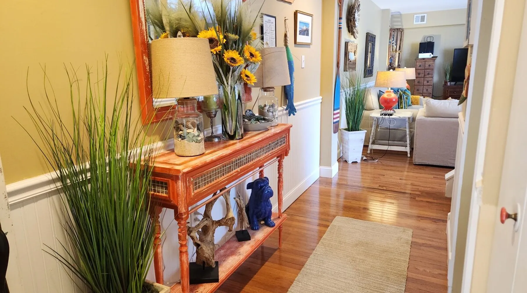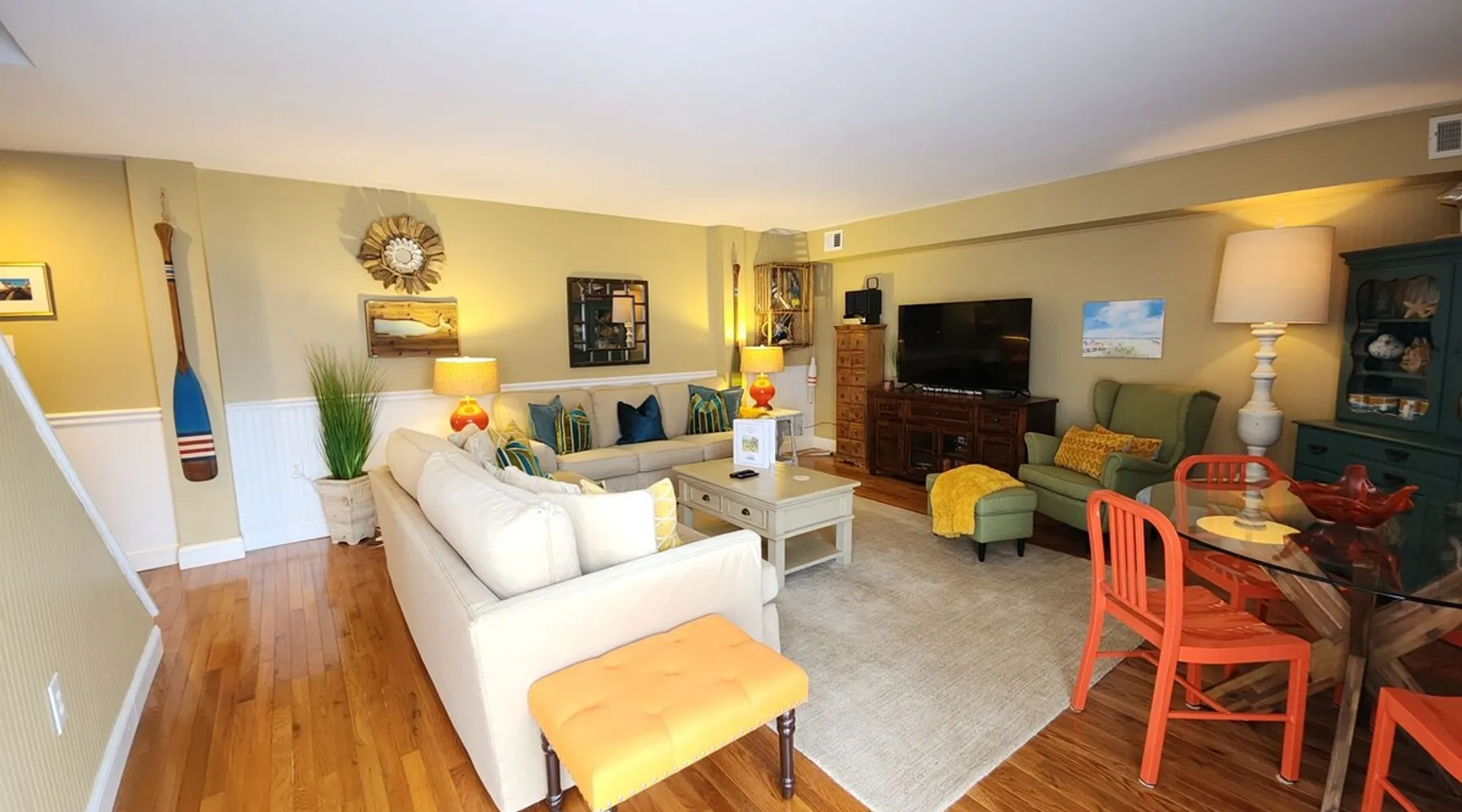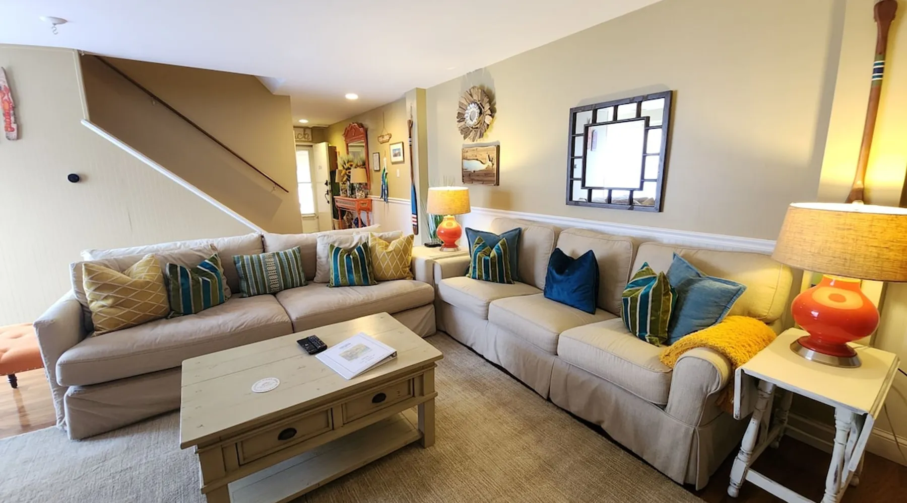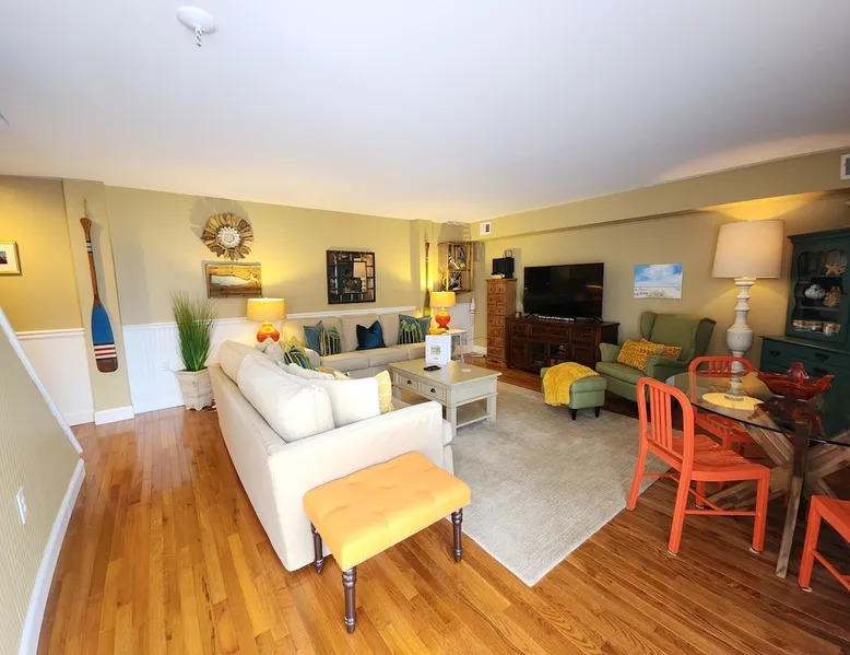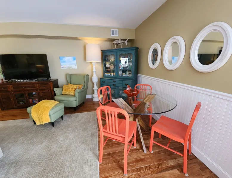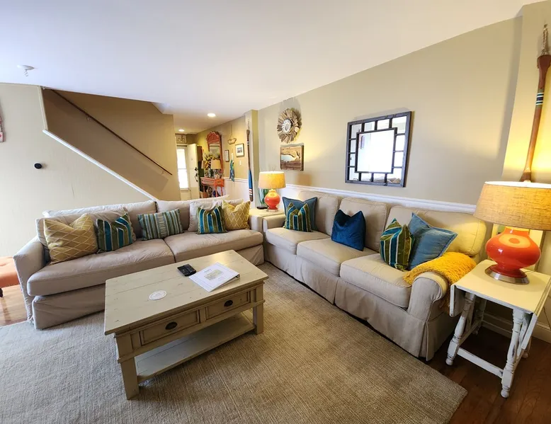Sunrise Soiree is the ideal retreat that will welcome you to the Atlantic City Beach lifestyle! It is perfectly located where just a leisurely stroll will lead you to the amazing and famous Boardwalk, Beach & Casinos, all while being paired with the comfort of staying in a place that is tasteful & cozy. This spacious 2 bedroom, 2 bathroom unit is beautifully designed with warm aesthetics, great amenities & is immaculate! We warmly invite you to experience a home away from home stay! The space With an abundance of natural light, tasteful decor, and wonderful amenities, enjoy this space with all the comforts and convenience to make for a perfect stay. A blend of a mature and serene style will greet you as you step inside. LIVING AREA: -The unit has a spacious living area with a dining table for 4, 2 comfortable sofas, a smart TV with cable and streaming apps for your viewing pleasure and games for entertainment. DEDICATED WORKSPACE: -The upstairs hallway features a built in desk suitable for work or studies. KITCHEN: -The kitchen is beautiful with a brick backsplash, ample cabinets, new stainless steel appliances & all the features you will need to prepare meals. SLEEPING ARRANGEMENTS: -The 2nd floor has 2 spacious and stylish ensuite bedrooms with comfortable beds. -Each bedroom is tastefully designed and includes wall mounted smart TV’s and cozy bed linens. BEDROOM 1: 1 King Sized bed, 1 roomy closet and a full bath with a tub. BEDROOM 2: 2 Twin Sized beds, a closet and a full bath with a stand-up shower. ADDITIONAL SLEEPING ARRANGEMENTS: There are two twin sized air mattresses available. BALCONY: The sliding glass door opens to an outdoor balcony. AMENITIES: The home is also equipped with Wifi, a coffee maker, an iron and ironing board, a hair dryer and much more! LOCATION: The unit is in a complex on a beach block directly across from Ocean Resort & Casino and next to The Showboat Hotel. Take a lovely, quick stroll to the boardwalk and beach. The unit comes with one assigned parking space which will be provided to you with your check in directions. (Please note that you cannot on street park any vehicles in this vicinity. But the Ocean Casino parking garage is directly across the street if you have an additional vehicle that you require parking for.) ADDITIONAL NOTES: -Please note that like many areas of the city, the complex parking lot has the possibility of puddling or flooding when it rains. This factor is out of our control and we suggest parking at Ocean Casino across the street in the event that it becomes problematic. -The unit has central air, but being it is a 2 floor unit with 2 levels, at times the power of air conditioning may compete with heat rising. -Please excuse the complex's appearance- it is under new management and the HOA is currently doing renovations and landscaping to maintenance the building and grounds. -Grills are not permitted to be used on the property as per HOA regulations. BOOK WITH US and unlock discounts and special offers exclusive to Cozy Cohost guests. Take advantage of all that Atlantic City has to offer and enjoy savings at top local spots including famous restaurants, night clubs, spas, coffee shops, distilleries, breweries, boat tours, bike rentals, mini golf, and more... Guest access ACCESS & ENTRY: -Guests will have access the entire 2 level unit and the outdoor balcony. -There are exterior stairs to enter the unit, and a set of interior stairs in the unit to the 2nd floor bedrooms and the bathrooms. -We ask that you please respect the home and the neighbors. -Please note that check-out time is promptly at 11:00 AM. Failure to check out by this time may result in a $100 fee per hour. We appreciate your cooperation in ensuring a smooth transition for our next guests. Thank you for your understanding! KEYLESS ENTRY: -There is keyless entry. Your host will provide you with the door code approximately one hour prior to check in the day of your trip. PARKING: -There is ONE designated parking space for guests to use. -We will release more information regarding parking with your check-in message. -Your car WILL be towed if it is not parked in the proper spot, so please be respectful of other's parking spaces. -Guests are responsible for city street parking compliance; read & follow signage to avoid parking tickets. -We are not responsible for guest's vehicles. -For any additional cars, we suggest utilizing self parking garage at Ocean Casino which is right across the street. MAIL: -We will not have access to the mailbox, so we advise to either not ship items there or to add "leave at door" to your delivery instructions. -If there is something of priority that you need shipped please reach out to us directly for alternative options. -We are not responsible for any items shipped to the property. ENVIRONMENTAL NOTES: -Property located in a city environment; potential for noise from cars or foot traffic. SECURITY: -The home is protected by exterior ring camera security. Other things to note HONESTY & EXPECTATIONS: At "SunriseSoiree", we want our guests to have a clear understanding of the distinctions between vacation rentals and hotels. While we diligently maintain our properties, wear and tear are inherent aspects of vacation rentals. Although we address issues promptly, the high volume of guests may result in occasional delays between stays. Any significant damage or serious concerns are prioritized and resolved before a guest's check-in, provided we are made aware of the issue. CLEANING: Our dedicated cleaning team meticulously sanitizes and cleans each home. Unlike standard hotel rooms, homes entail a more detailed cleaning process due to their larger size. Despite our team's efforts to ensure optimal cleanliness, minor oversights may occur. For substantial errors, we are committed to rectifying the situation promptly. While we take pride in our cleaning standards, we ask for understanding that, as in any human endeavor, perfection is not always 