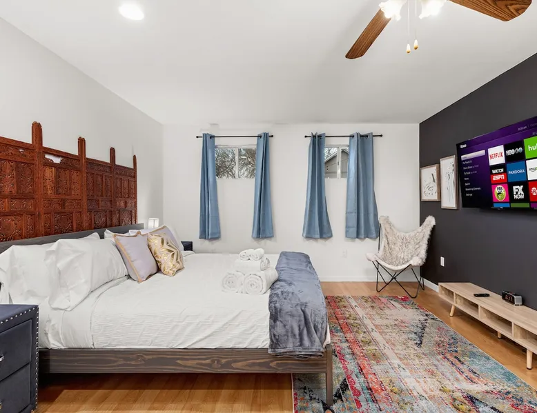 Welcome to our vibrant San Antonio home in Southtown SA brought to you by Your Home Away Management! During your stay, enjoy our 1BR casita, pool, large pool deck area, and grill. The front house will be unrented during your stay. Our home offers - Stylish decor for a memorable stay - Patio and pool for family gatherings - Convenient location, many top spots just minutes away-Riverwalk, Alamo & Pearl area - Short drive to Ft. Sam, Parks, Zoo, family-friendly destinations. The space Welcome to Your San Antonio Oasis in the Heart of Southtown/Lavaca! We should mention this up front: this property is not for pool parties or large gatherings. We're only permitted to host up to two guests, however you may book the entire 4bed/3bath home at: https://www.airbnb.com/h/claudiasatx Nestled in the vibrant and family-friendly neighborhood of Southtown/Lavaca, our cozy casita invite you to experience the best of San Antonio right at your doorstep. With a prime location that combines the tranquility of a safe, walkable community with the excitement of downtown attractions, our Airbnb is the perfect getaway for anyone looking to explore the rich culture of this historic city. Your Home Away From Home: Our property boasts a charming casita featuring a king bed and its own kitchenette, bathroom with tub, shower, and laundry facilities. Unique Amenities for Unforgettable Memories: - Dive into relaxation with our in-ground pool, surrounded by sun lounger chairs and a poolside chiminea fireplace. - Enjoy fast fiber WiFi, perfect for streaming or work. Stylish Comfort Meets Artistic Flair: Our casita's interior is a testament to style and comfort, featuring a handmade bed from an Austin-based craftsman, reviewer favorite mattress, and a large TV. Explore San Antonio Like a Local: - Step outside to discover Southtown's renowned restaurants, bars, and coffee shops. - Walk to iconic attractions like the Riverwalk, the Alamo, and the Tower of the Americas. - Dive into our digital guidebook for insider tips on the best dining, entertainment, and outdoor activities. Ease of Access: Located just a short drive from the airport and centrally positioned for easy access to all of San Antonio's attractions, our home ensures your travel is hassle-free. With Uber, Lyft, and scooters readily available, exploring the city has never been easier. Special Touches: We've prepared a full digital guidebook to help you uncover the hidden gems of San Antonio, ensuring your stay is filled with local experiences and cherished memories. Book Your Stay: Whether you're looking for adventure, relaxation, or a bit of both, our San Antonio oasis offers the perfect blend of comfort, convenience, and charm. Experience a stay like no other and create lasting memories in the heart of one of Texas's most beloved cities. *** ✅ This property follows local compliance standards and uses a simple, secure platform called Happy Guest to streamline the check-in process. You don’t need to download an app or create an account — it’s just a quick and secure website that gives you everything you need for a smooth arrival. You’ll also get access to your personalized guest portal, where you can find all the info about the home and some of our favorite local spots. The portal also offers optional upgrades to help you customize your stay: • Extra Guest – $50 • Late Checkout – $50 • Stock the Fridge – $100 ★☆ Book Today & Let Us Take Care Of You In San Antonio! ☆★ Guest access You and your group will have complete privacy and access to the casita! The main home will not be available during this stay and no one will be staying in it when you're there either, so you'll have complete privacy. *Please park outside of the fence and walk through the gate. We have a storage cabinet in the casita closet that we keep locked for supplies. The pool area storage shed is locked for pool supply storage as well. Easy Check-In Process🏡 It’s just like when you check in at a hotel and give your ID to the front desk, except our front desk is online! It's super easy to complete on your phone! We use a web-based system called Happy Guest, and you’ll receive a personalized rental agreement to sign in order to receive your arrival instructions. It’s simple: finish these steps, and you’re all set to enjoy your stay! Note: arrival info won’t be sent without completing these steps, and refunds aren’t possible if skipped. Your personalized guidebook will give you all the info about the home, our favorite local spots, automatic early check-in notifications, and sometimes even late checkout! You can even share it with friends and family! Got questions? Just message us anytime! Other things to note Please be aware of posted signs by the pool. No lifeguard is on duty and you are to swim at your own risk. No diving in the pool and please be aware of children at all times. Registration Details STR-24-13500070