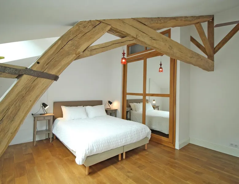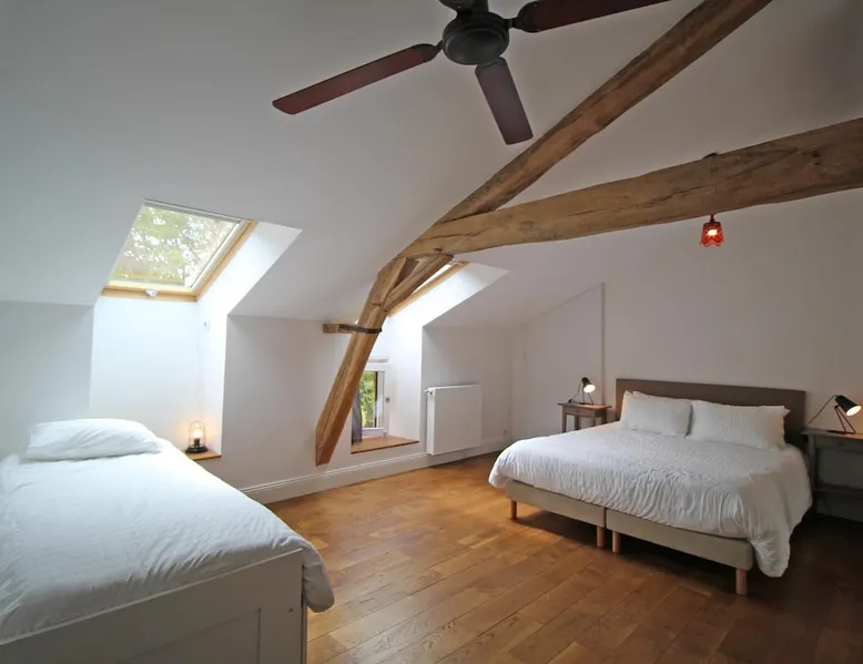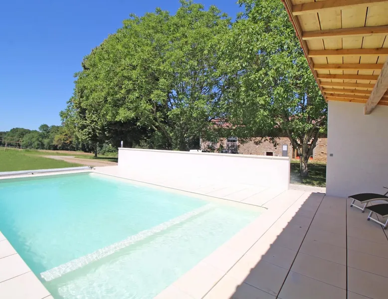 On a plateau overlooking 120ha meadows and groves the sheep farm of Le Boucheron is located 15 km south of Limoges. This is the oldest house on the estate that has been renovated to make it a cozy and very comfortable cottage with 4 bedrooms en suite. The house opens on one level to a shaded lawn lot. It has an 8x4m swimming pool, heated, private, open from May to September, a 60m2 terrace with a covered part. On the site another gite can accommodate 15 people. The space The ground floor is a large open space with an entrance, a living room, a very well-equipped kitchen open to the dining room with 2 large tables and 12 chairs as well as a toilet. Upstairs 4 bedrooms each with its own shower room Green room: 1 bed 160x200, small sofa, shower room with shower and WC Purple bedroom: 1 bed 160x200, small sofa, shower room with shower and WC Yellow bedroom: 1 bed 160x200, sofa that can be transformed into a single bed (80x200) or double (160x200), bathroom with shower and separate toilet Red room: 1 bed 160x200, sofa that can be transformed into a single bed (80x200) or double bed (160x200), bathroom with shower, bathtub and separate toilet