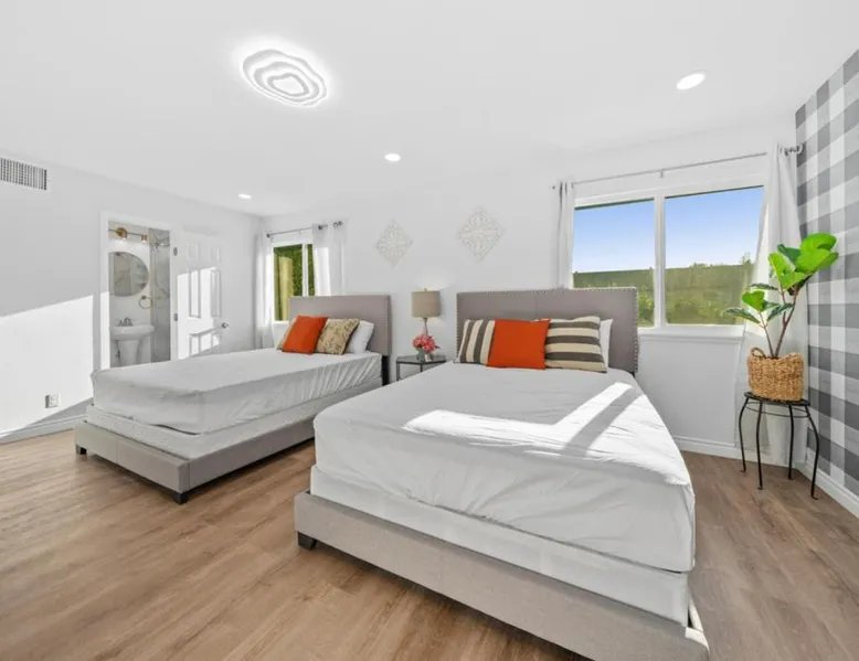 Spacious Accommodations: #Marbella Lane in Fullerton offers a spacious holiday home with four bedrooms and two bathrooms. The property includes a living room, family rooms, and a private backyard. Modern Amenities: Guests enjoy free WiFi, air-conditioning, a washing machine, and a fully equipped kitchen with a dishwasher and microwave. Additional amenities include a fireplace, patio, and free on-site private parking. Convenient Location: Located 18 mi from Long Beach Airport, the property is close to Disneyland (7.5 mi), Knotts Berry Farm (8.1 mi), and other attractions. Private check-in and check-out services ensure a comfortable stay. This holiday home's standout feature is the fireplace. Boasting a private entrance, this air-conditioned holiday home includes 1 living room, 4 separate bedrooms and 2 bathrooms with a shower and a hairdryer. In the well-fitted kitchen, guests will find a stovetop, a refrigerator, a dishwasher and kitchenware. The spacious holiday home offers a washing machine, a tea and coffee maker, a seating area, a flat-screen TV, as well as garden views. The unit has 6 beds.