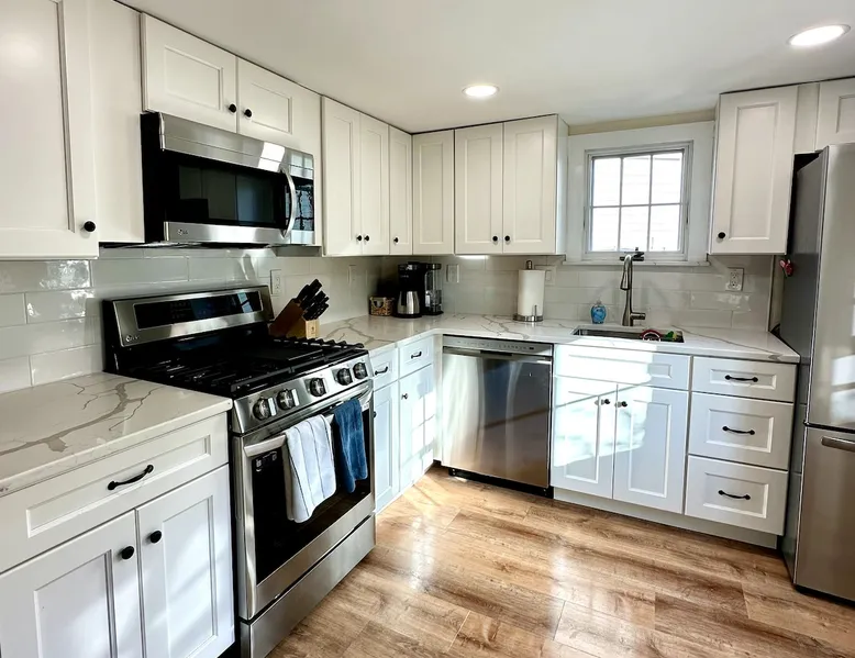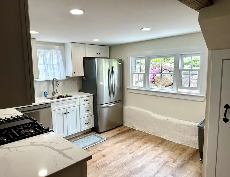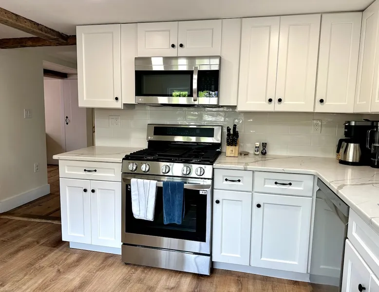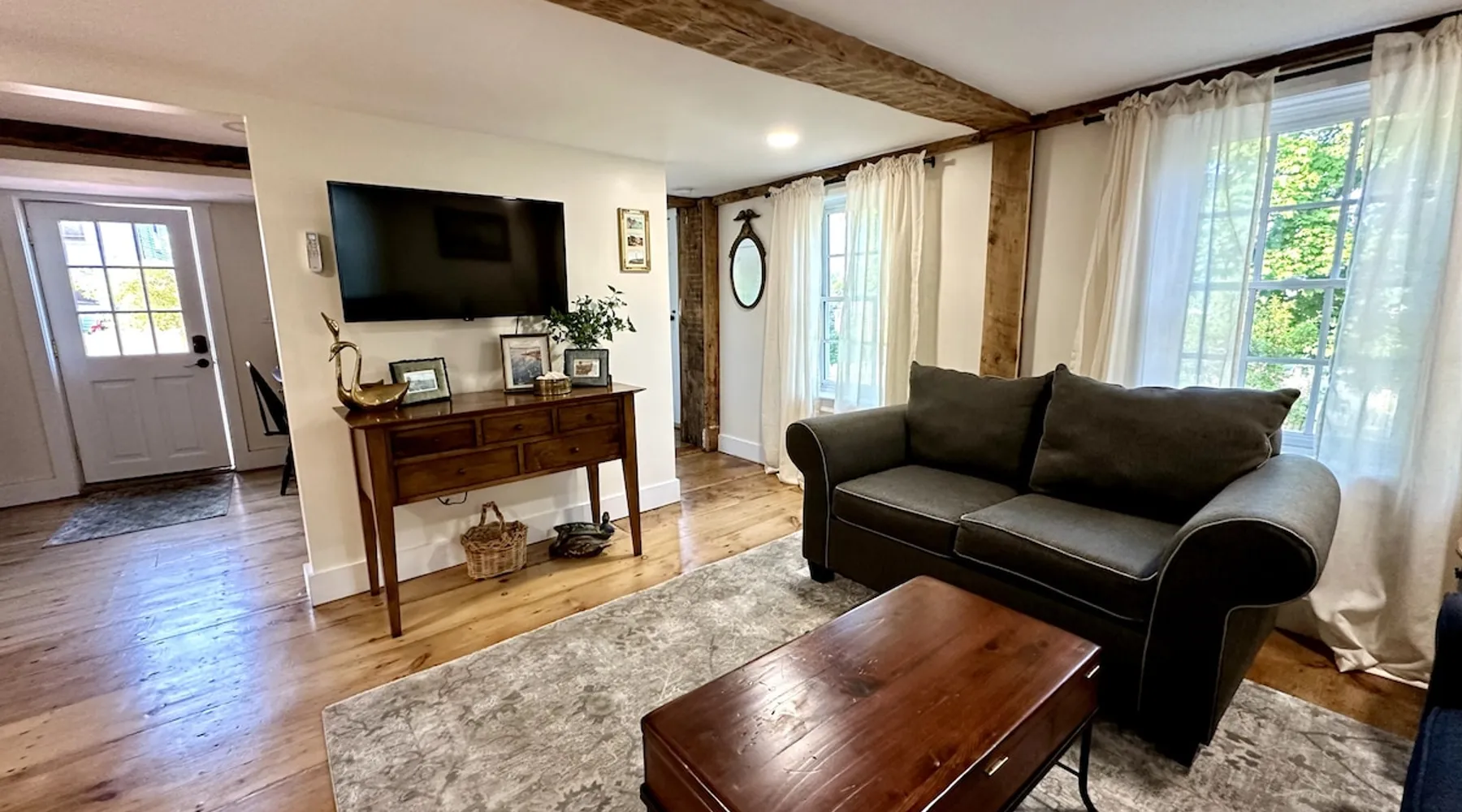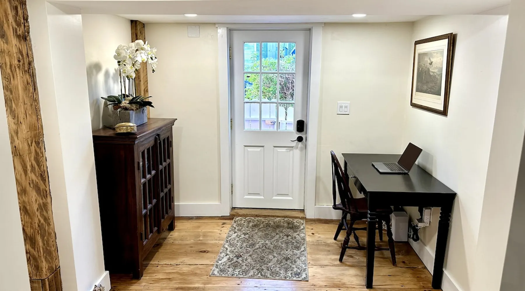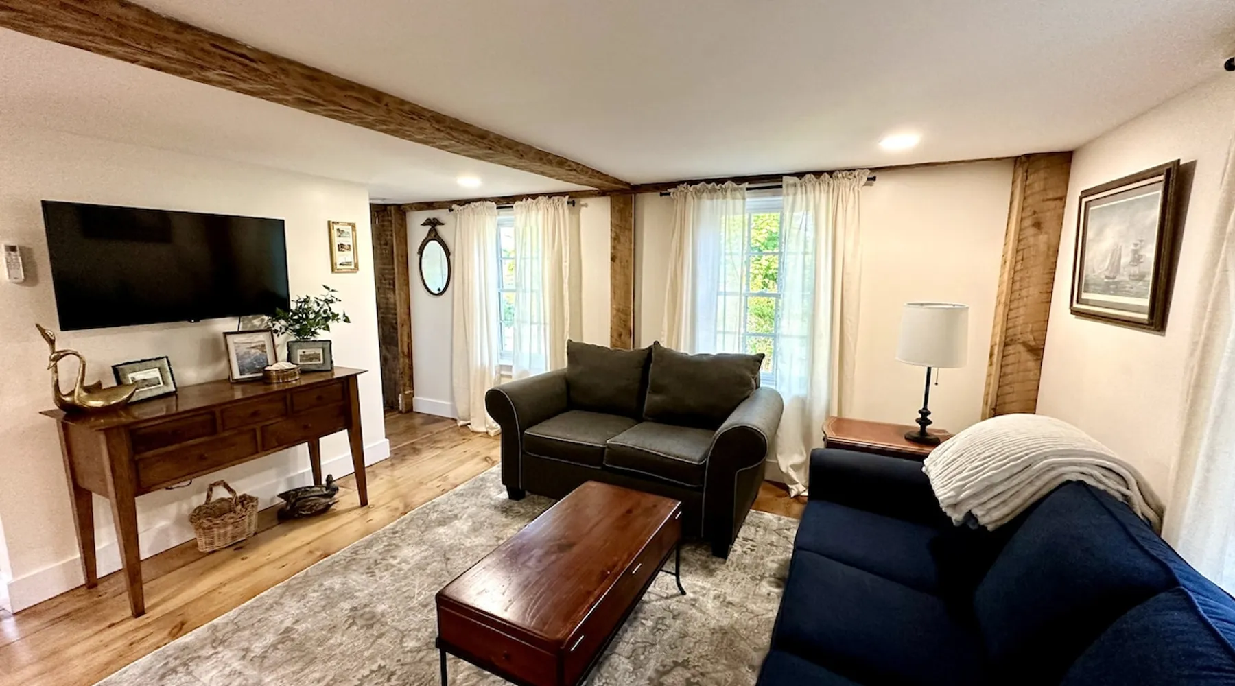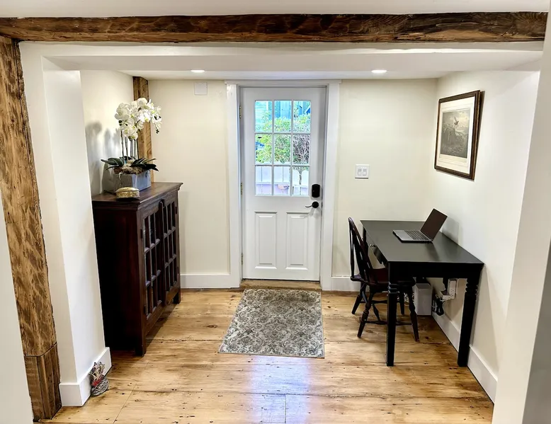 Welcome to Maggie's Harborview House, a newly renovated 1725 home nestled in the heart of Marblehead's historic district. Just a 3-minute stroll from the waterfront, its beautifully restored interior seamlessly merges old-world charm with modern comforts. With its prime location, Maggie's Harborview House promises an unforgettable stay. Within walking distance, explore historic sites, shop at local boutiques, and dine at charming restaurants. The space Inside, you'll be pleased by the original long and wide pine floors and exposed beam ceilings that create a warm atmosphere. Modern amenities include smart TVs, WiFi, a fully equipped kitchen with stainless steel appliances, a new laundry unit, and walk-in showers for added comfort. The expansive patio with outdoor dining furniture is perfect for morning coffee or evening gatherings, while the fully fenced-in yard offers privacy and space for your four-legged friend. Steps away, you can explore Marblehead's Old Town, where you can enjoy scenic harbor views, learn about the area's rich history, and discover unique boutiques and delightful restaurants. Whether you're a history enthusiast or simply seeking a memorable retreat, Maggie's Harborview House is your ideal base for a Marblehead adventure. Enjoy your stay!