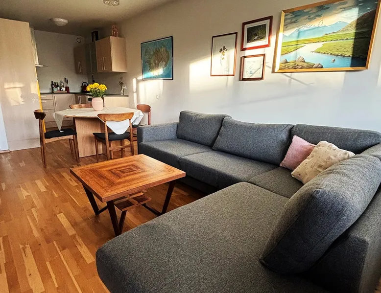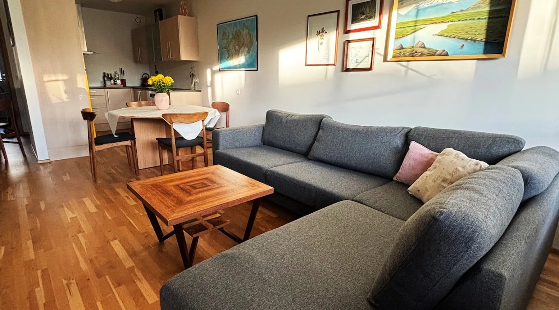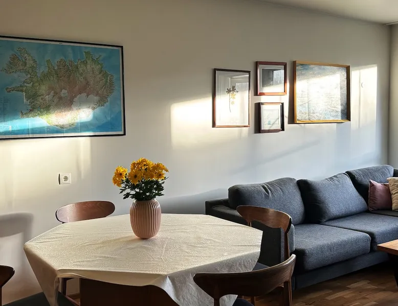 Nice and peaceful apartment on the first floor. Great locations for northern lights hunting (sept-April). Please note that dog is living in the apartment most of the year. The space The Apartment is on the first floor in shared building. Two bedrooms with queen beds, bathroom, well stocked kitchen, great sitting area and fantastic Sunroom for relaxing after a long day exploring. No partying allowed. Borgarnes is a beautiful town surrounded with nature and has a great swimming pool. Borgarnes is also a perfect home base to visit surrounding area, such as Snæfelsness peninsula, Krauma natural pools and many more. Guest access 2 small rooms will be off limits to the guests, and they will be locked Other things to note Nearest grocery store is 1,5 km away