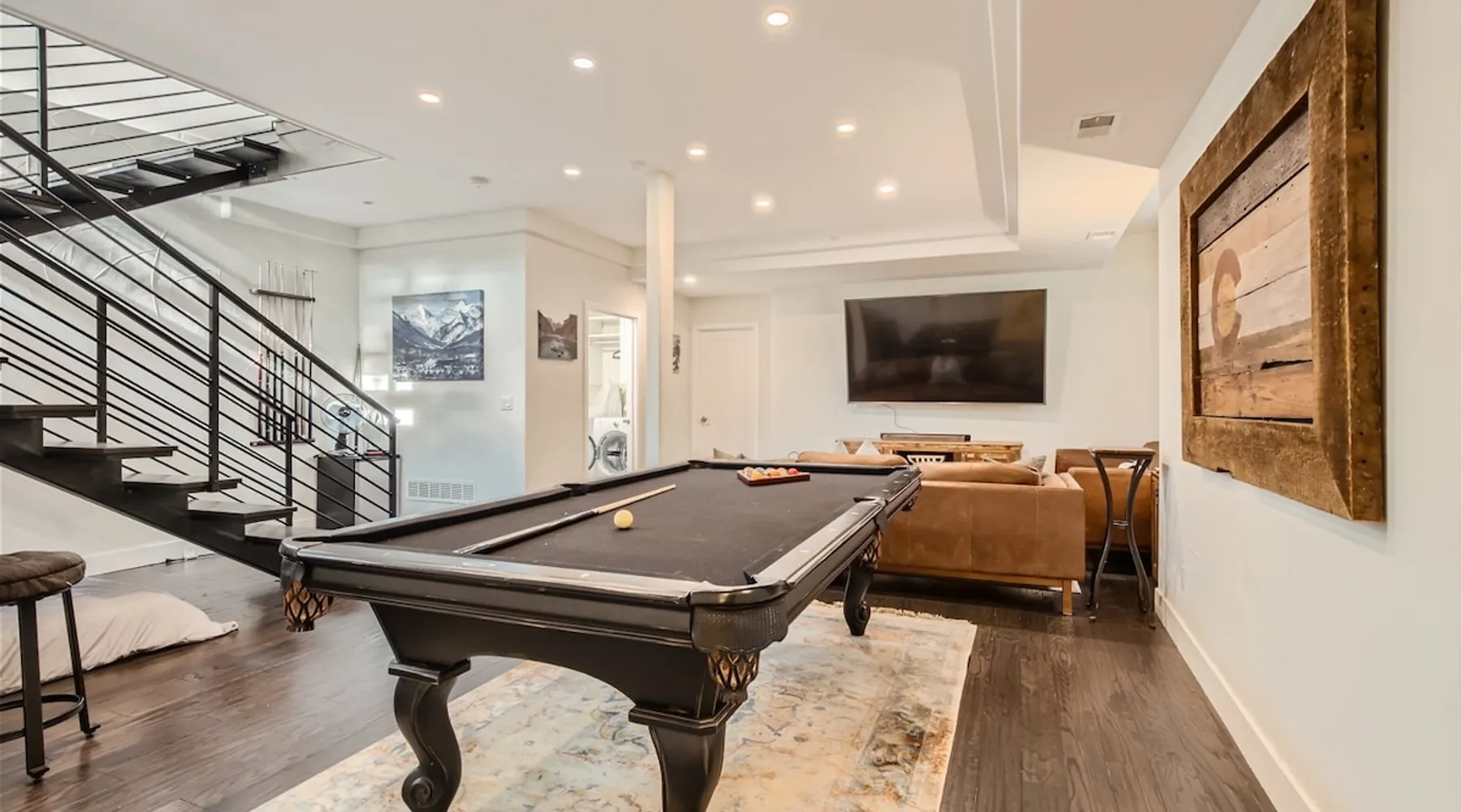 Located blocks in the heart of Denver, just a stone's throw from City Park and RiNO → 100 inch TV → Pool Table → High end finishes and appliances → Fantastic outdoor space → Amazing walkability (77WalkScore) → Bikers Paradise (91 BikeScore) → 12 min walk to RiNo → Washer/Dryer → 5-15mins drive to Downtown/Convention Center/ Highlands/Cherry Creek → Dozens of great Restaurants and Breweries within 1 mile Add my listing to your Wishlist! The space Welcome to your family friendly retreat in Denver, Colorado, just a stone's throw away from the vibrant City Park. This charming home offers the perfect blend of comfort and convenience, promising an unforgettable stay in the Mile High City. As you step inside, you're greeted by an inviting open floor plan on the main level, seamlessly connecting the living room, dining area, and kitchen. The space is bathed in natural light, creating a warm and welcoming atmosphere for gatherings with friends and family. The main floor also hosts one of the bedrooms, thoughtfully furnished for a restful night's sleep, along with a convenient full bathroom, ensuring comfort and privacy for all guests. Descend into the basement, where entertainment awaits. Immerse yourself in cinematic experiences with the impressive 100-inch TV, challenge your companions to a friendly game of pool on the sleek pool table, or simply unwind on the plush couch, designed for ultimate relaxation. Tucked away under the staircase, discover a cozy queen bed, offering additional sleeping arrangements for your convenience. Venture to the top floor to find three more beautifully appointed bedrooms, including the primary bedroom adorned with a luxurious king bed and an adjoining ensuite bathroom. Wake up refreshed and rejuvenated, ready to embark on a day of exploration in the dynamic city of Denver. Outside, take advantage of the prime location just moments away from City Park, where lush greenery and recreational activities await. Whether you're strolling through the park, visiting nearby attractions, or sampling the culinary delights of the city, this Airbnb serves as the perfect home base for your Denver adventure. Book your stay today and experience the best of Denver living at this charming Airbnb near City Park. Guest access You'll have full access to the house aside from the garage and a couple locked owners' closets. Other things to note There is ample street parking Please note there is no grill Reservations may be subject to extra guest fees, as well as additional charges for optional services such as adding pets or requesting early check-ins. Registration Details 2024-BFN-0017690