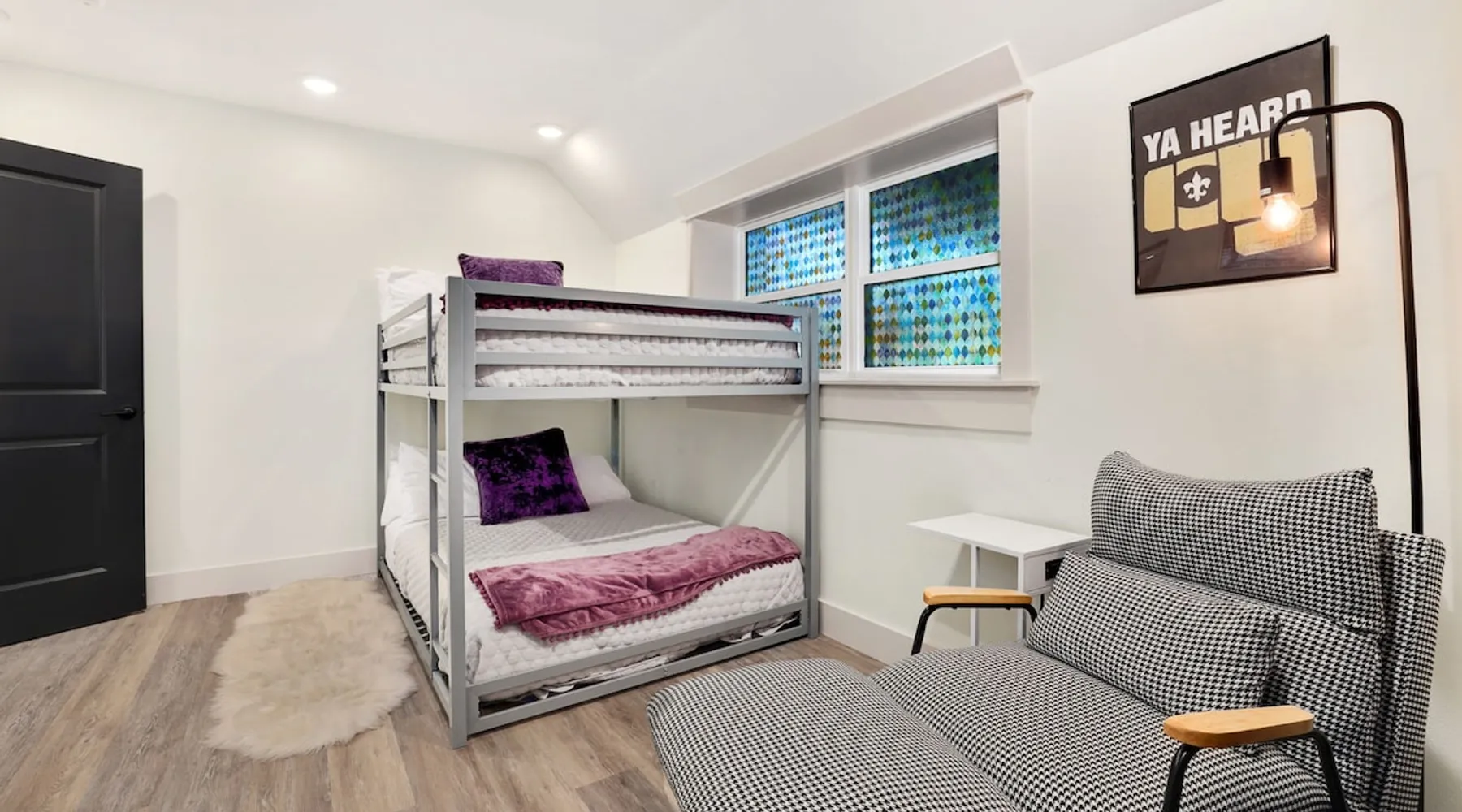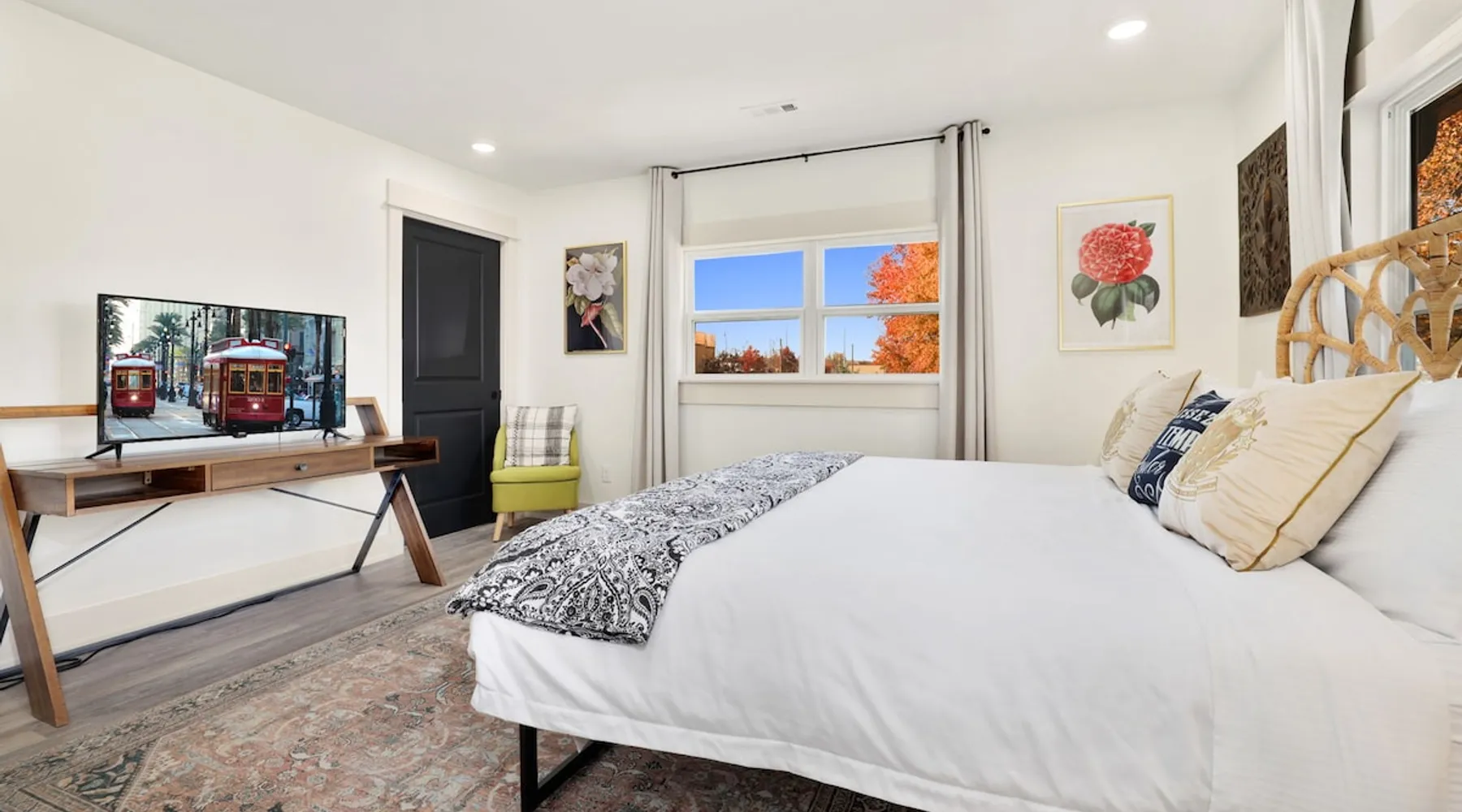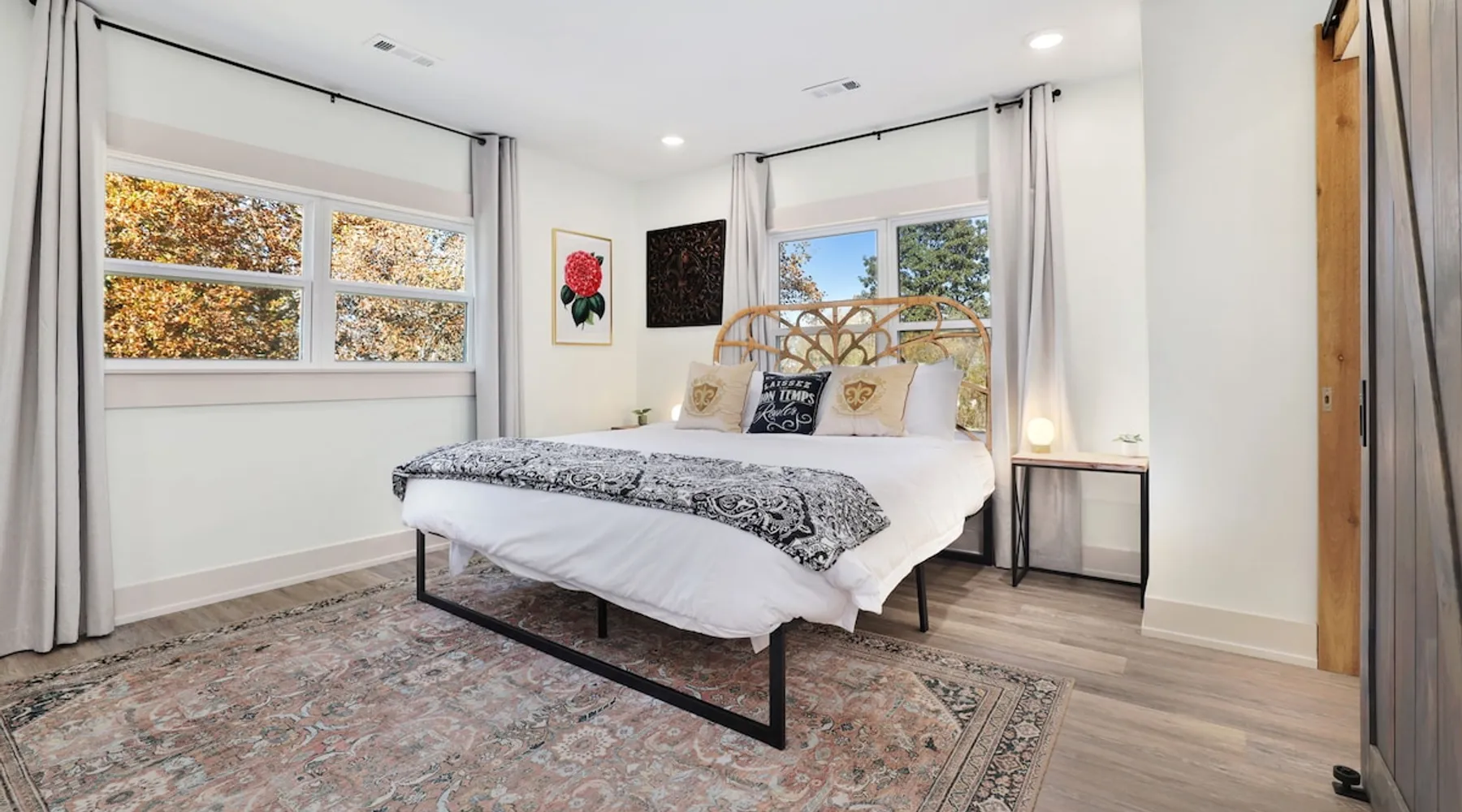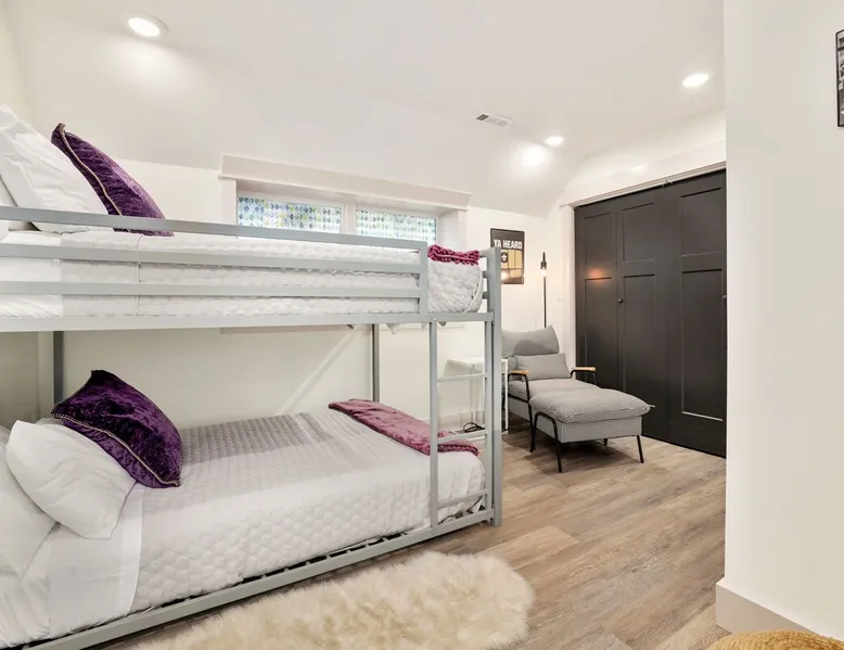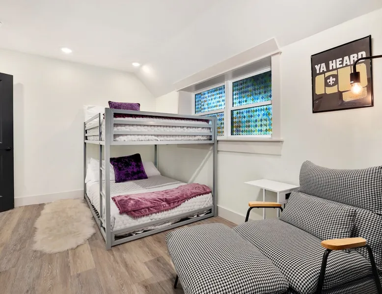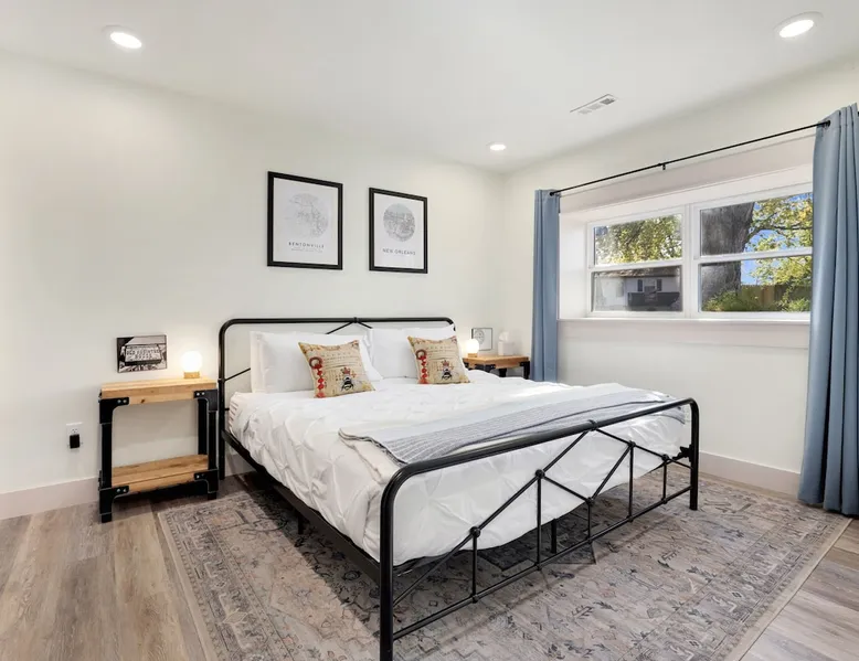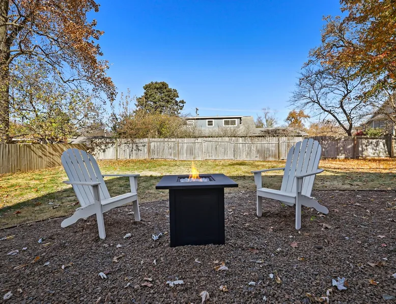 This downtown Bentonville charmer is a New Orleans inspired 4 bedroom, 3 bathroom home that sleeps 11! We are located just half a mile from Downtown Bentonville, 2 miles from Crystal Bridges Museum, and ONLY 1 block from access to the Razorback Greenway. - Just a 15-minute walk to downtown Bentonville Square - Family friendly and bike friendly - walk/bike everywhere - Professionally cleaned & sanitized - Self Check-In - Fully equipped kitchen - Washer/dryer in-unit The space - 1/2 a mile from the Bentonville Square! Walk everywhere during your stay. - 1 block from Razorback Greenway - NWA's premier biking, running and walking path. - 2 miles from Crystal Bridges and the Momentary! - MTB-friendly - all of the Bentonville trails are easily-accessible from the house. Bike racks available outside. - TWO living spaces with cozy seating and large smart TV's. - Private backyard with grill, dining table, and gas fire pit. - Office space/ Music lounge with CD player and Jazz CD's. For Mountain Bikers: - Bike everywhere - Bike racks provided - 6-minute bike ride to Slaughter Pen Trailhead - 11-minute bike ride to Park Springs Trailhead - 12-minute bike ride to Coler Mountain Bike Preserve For Families: - Pack-n-play and high chair - Kids’ plates, bowls and cups - Child gate - Walk to Bogle Park - Walk to Dave Peel Park - Walk to downtown Bentonville Plus, this home is: 0.7 mile (3 min) from Downtown Bentonville 1 miles (4 min) from Walmart Home Office 2 mile (7 min) from Scott Family Amazeum 2 mile (7 min) from Crystal Bridges Museum of American Art 1.5 mile (6 min) from The Momentary 13 miles (26 min) from Northwest Arkansas National Airport Walk to Walmart Supercenter Less than a mile from various restaurants -- BEDROOMS -- This newly renovated home has four spacious bedrooms. There are two bedrooms and one living area located on the main level of the house. The master bedroom features a king-size bed, and a Smart TV to watch your favorite shows. It also includes an ensuite bathroom plus a large walk-in closet. The second bedroom is outfitted with a queen-size bed and closet. The third and fourth bedrooms are located on the lower level. The third bedroom features a king-size bed and closet. The fourth bedroom includes a full-over-full bunk bed and closet space. If you’re traveling with little ones feel free to use the pack n’ play, high chair, and children’s dinnerware! -- BATHROOMS -- There are three FULL bathrooms. The first one is attached to the master bedroom. The second bathroom is located in the hallway between the kitchen and the main level bedrooms. The third bathroom is located on the lower level next to the living room. All bathrooms include towels and essential toiletries (body wash, shampoo, conditioner). -- KITCHEN -- After hitting the trails or sightseeing, prepare your favorite meal in the fully loaded kitchen with everything you’ll need for cooking and baking. Aside from all the kitchen basics, you’ll also find a toaster, a blender, and an air fryer. If you’re traveling with young ones, there are kids' plates, bowls, and cups available for use in addition to a high chair. Sip on morning coffee or tea on the back deck and take in the beautiful Northwest Arkansas sunrise. Complimentary coffee, k-cups and tea provided. When it comes time for enjoying your meals, you can head over to the beautiful wood dining table that seats six, plus bar seating. The open kitchen/dining area is perfect for morning chats, family meals and game night. -- LIVING ROOM -- There are two living spaces in the house. The main level living room is located next to the kitchen and is a great space for chatting while whipping up culinary delights. The second living room is located on the lower level. It is the perfect spot for lounging around with family and friends, or watching a movie on the Smart TV. -- OUTDOOR AREA -- Our home is set up to spend plenty of time outside in the fresh air! The backyard features a charcoal grill, an outdoor dining table, and a gas fire pit! -- Book Today & Enjoy the Best of Bentonville! -- To abide by all legal requirements and property rules, you WILL be asked to provide a copy of your official government-issued photo ID, confirm your contact information, pass through our verification portal and, in some instances, complete a criminal background check. Failure to provide these documents will result in a cancellation and denied entry. Guest access Guests have access to the entire property, as well as the fenced-in backyard. Other things to note Sojora is available 9am - 5pm for all non-emergency requests and extended hours for emergencies. Connect with us @staysojora or visit sojora dot com to inquire about our management and design services. We look forward to hosting you!