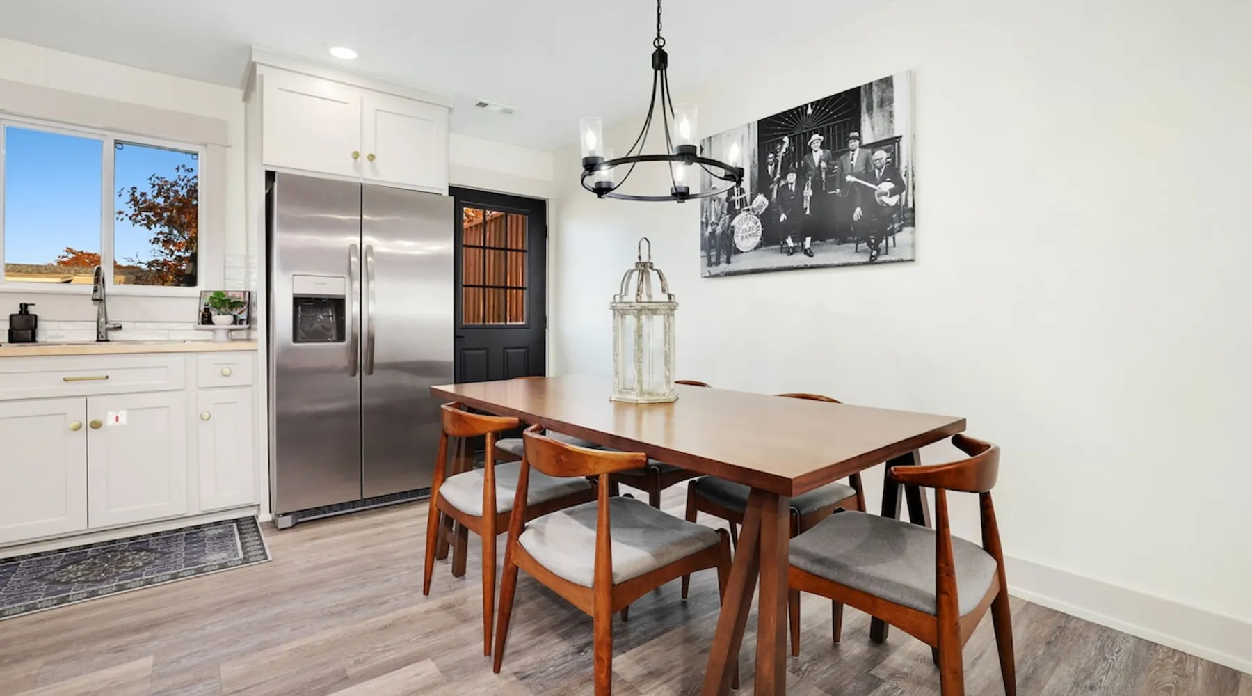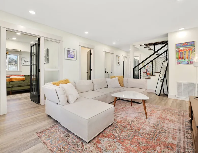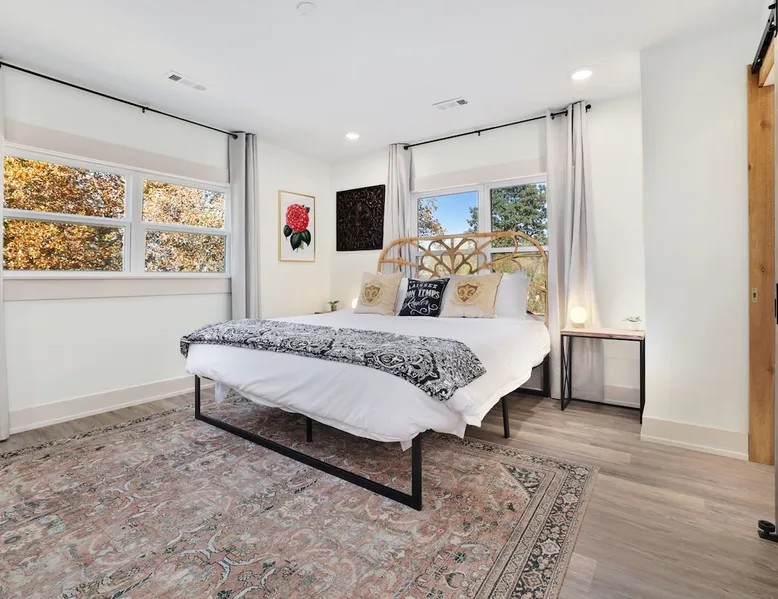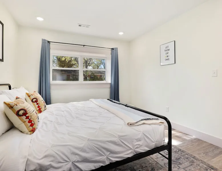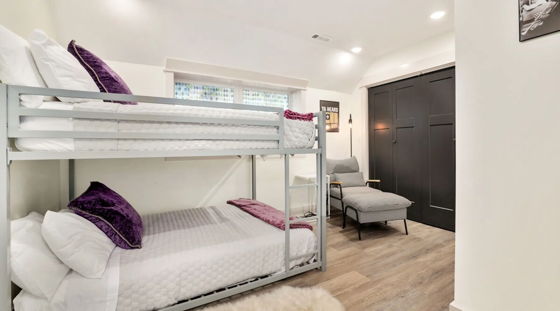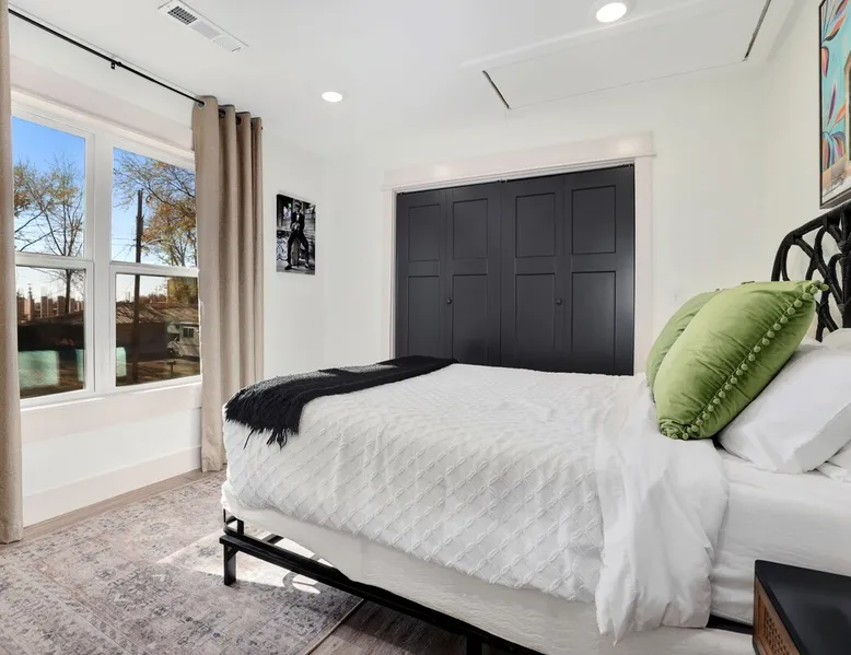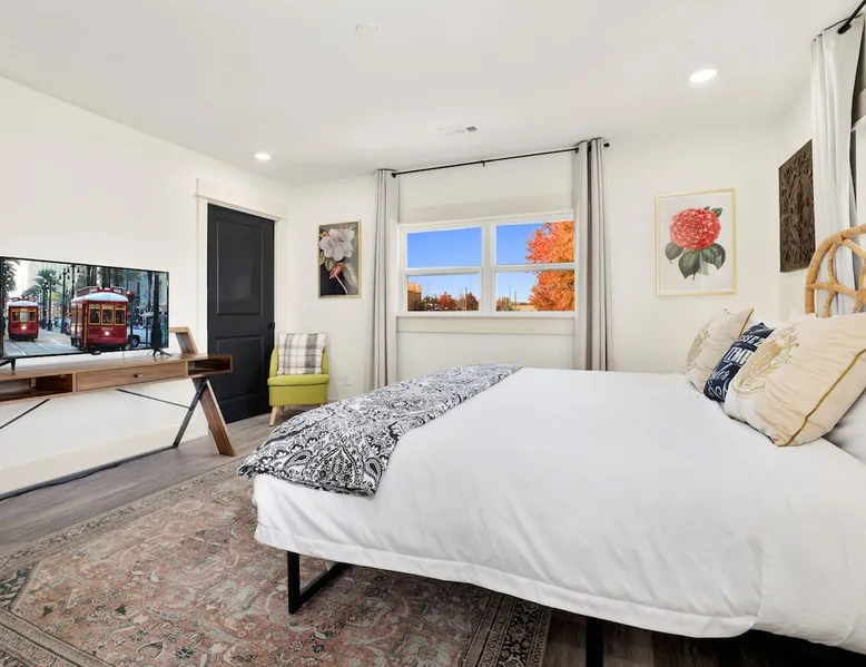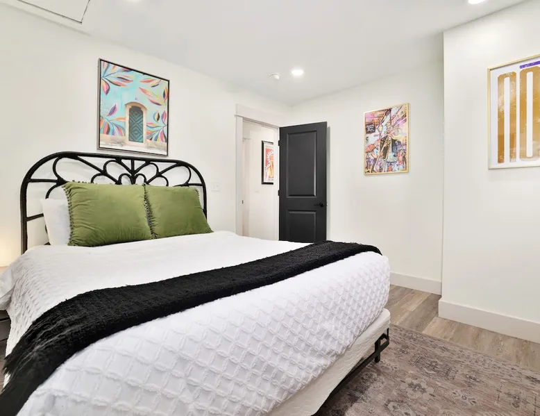 This downtown Bentonville charmer is a New Orleans inspired 4 bedroom, 3 bathroom home that sleeps 11! We are located just half a mile from Downtown Bentonville, 2 miles from Crystal Bridges Museum, and ONLY 1 block from access to the Razorback Greenway. - Just a 15-minute walk to downtown Bentonville Square - Family friendly and bike friendly - walk/bike everywhere - Professionally cleaned & sanitized - Self Check-In - Fully equipped kitchen - Washer/dryer in-unit The space - 1/2 a mile from the Bentonville Square! Walk everywhere during your stay. - 1 block from Razorback Greenway - NWA's premier biking, running and walking path. - 2 miles from Crystal Bridges and the Momentary! - MTB-friendly - all of the Bentonville trails are easily-accessible from the house. Bike racks available outside. - TWO living spaces with cozy seating and large smart TV's. - Private backyard with grill, dining table, and gas fire pit. - Office space/ Music lounge with CD player and Jazz CD's. For Mountain Bikers: - Bike everywhere - Bike racks provided - 6-minute bike ride to Slaughter Pen Trailhead - 11-minute bike ride to Park Springs Trailhead - 12-minute bike ride to Coler Mountain Bike Preserve For Families: - Pack-n-play and high chair - Kids’ plates, bowls and cups - Child gate - Walk to Bogle Park - Walk to Dave Peel Park - Walk to downtown Bentonville Plus, this home is: 0.7 mile (3 min) from Downtown Bentonville 1 miles (4 min) from Walmart Home Office 2 mile (7 min) from Scott Family Amazeum 2 mile (7 min) from Crystal Bridges Museum of American Art 1.5 mile (6 min) from The Momentary 13 miles (26 min) from Northwest Arkansas National Airport Walk to Walmart Supercenter Less than a mile from various restaurants -- BEDROOMS -- This newly renovated home has four spacious bedrooms. There are two bedrooms and one living area located on the main level of the house. The master bedroom features a king-size bed, and a Smart TV to watch your favorite shows. It also includes an ensuite bathroom plus a large walk-in closet. The second bedroom is outfitted with a queen-size bed and closet. The third and fourth bedrooms are located on the lower level. The third bedroom features a king-size bed and closet. The fourth bedroom includes a full-over-full bunk bed and closet space. If you’re traveling with little ones feel free to use the pack n’ play, high chair, and children’s dinnerware! -- BATHROOMS -- There are three FULL bathrooms. The first one is attached to the master bedroom. The second bathroom is located in the hallway between the kitchen and the main level bedrooms. The third bathroom is located on the lower level next to the living room. All bathrooms include towels and essential toiletries (body wash, shampoo, conditioner). -- KITCHEN -- After hitting the trails or sightseeing, prepare your favorite meal in the fully loaded kitchen with everything you’ll need for cooking and baking. Aside from all the kitchen basics, you’ll also find a toaster, a blender, and an air fryer. If you’re traveling with young ones, there are kids' plates, bowls, and cups available for use in addition to a high chair. Sip on morning coffee or tea on the back deck and take in the beautiful Northwest Arkansas sunrise. Complimentary coffee, k-cups and tea provided. When it comes time for enjoying your meals, you can head over to the beautiful wood dining table that seats six, plus bar seating. The open kitchen/dining area is perfect for morning chats, family meals and game night. -- LIVING ROOM -- There are two living spaces in the house. The main level living room is located next to the kitchen and is a great space for chatting while whipping up culinary delights. The second living room is located on the lower level. It is the perfect spot for lounging around with family and friends, or watching a movie on the Smart TV. -- OUTDOOR AREA -- Our home is set up to spend plenty of time outside in the fresh air! The backyard features a charcoal grill, an outdoor dining table, and a gas fire pit! -- Book Today & Enjoy the Best of Bentonville! -- To abide by all legal requirements and property rules, you WILL be asked to provide a copy of your official government-issued photo ID, confirm your contact information, pass through our verification portal and, in some instances, complete a criminal background check. Failure to provide these documents will result in a cancellation and denied entry. Guest access Guests have access to the entire property, as well as the fenced-in backyard. Other things to note Sojora is available 9am - 5pm for all non-emergency requests and extended hours for emergencies. Connect with us @staysojora or visit sojora dot com to inquire about our management and design services. We look forward to hosting you!