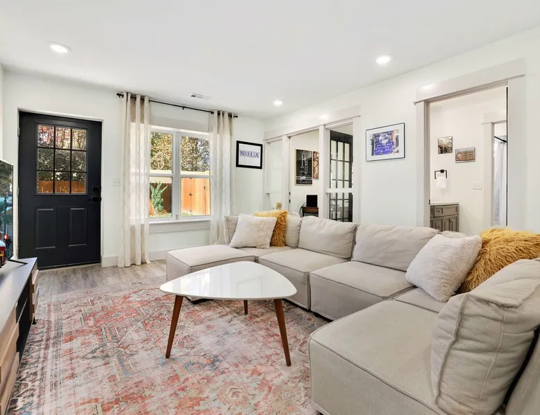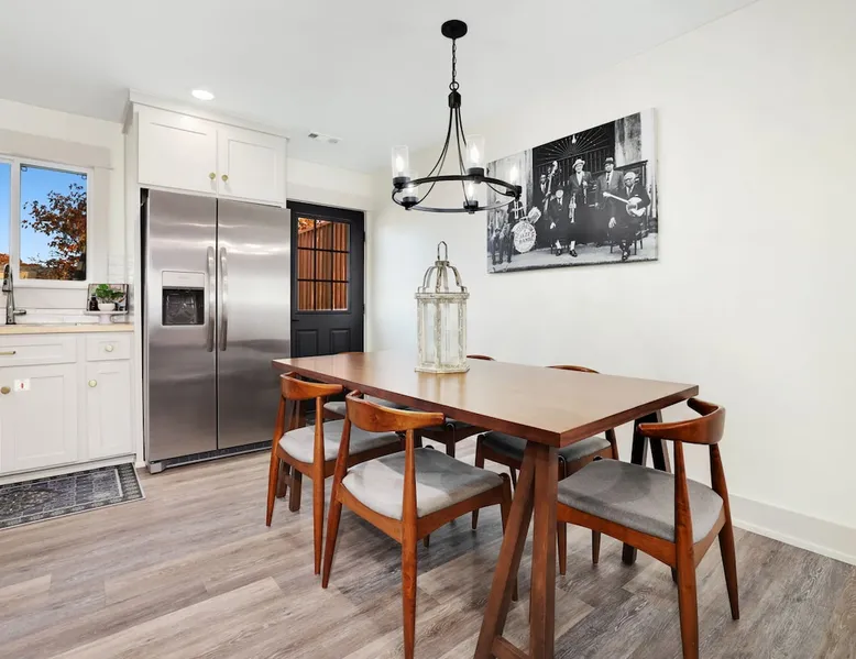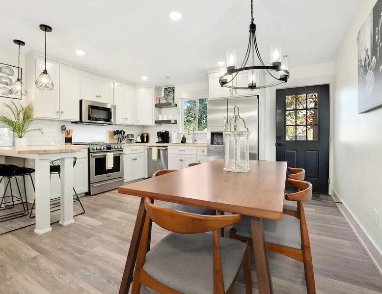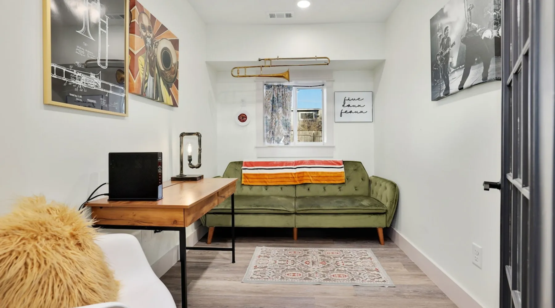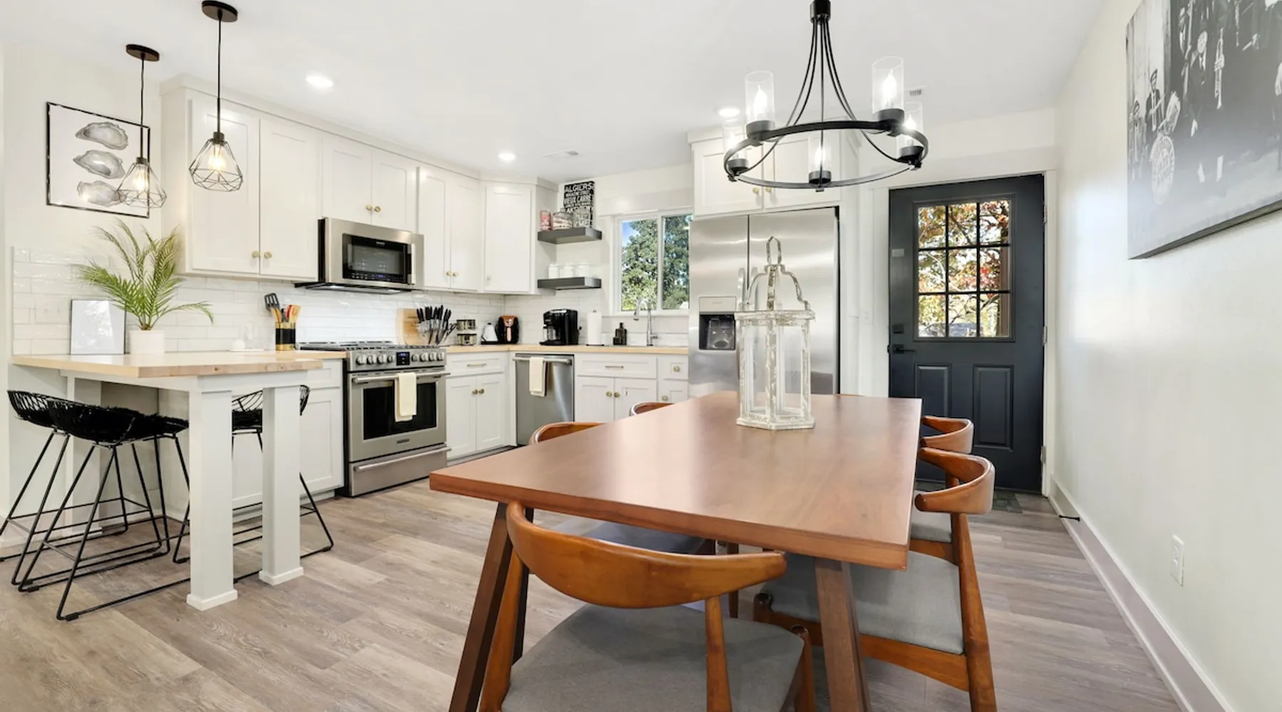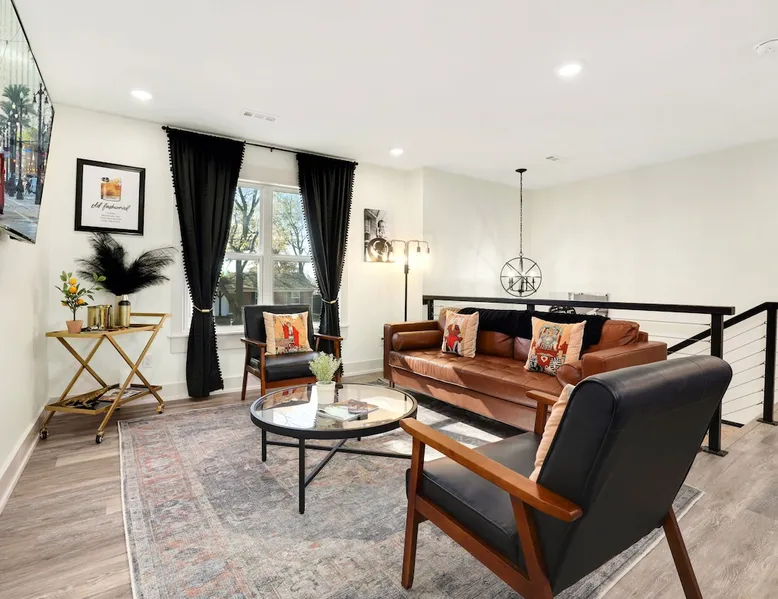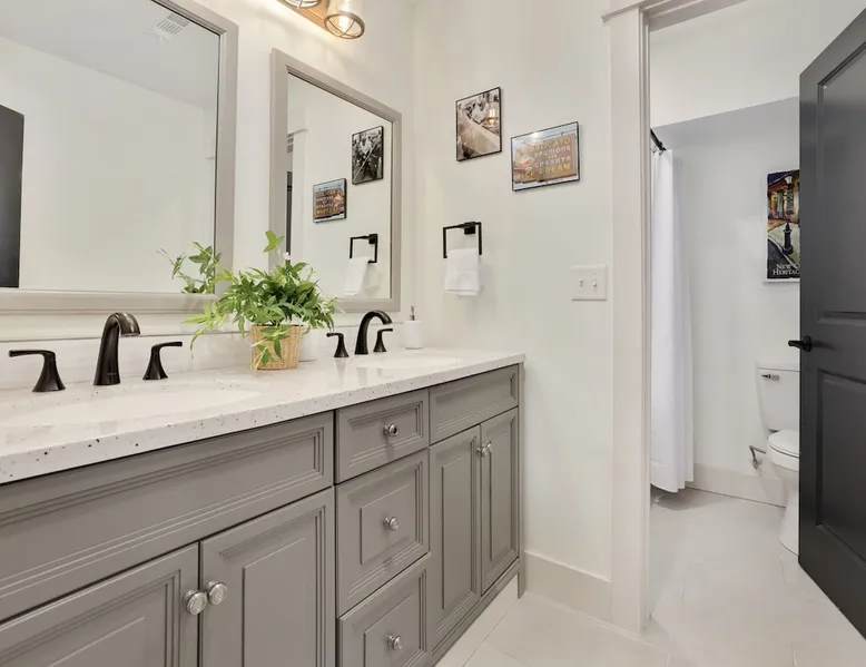 This downtown Bentonville charmer is a New Orleans inspired 4 bedroom, 3 bathroom home that sleeps 11! We are located just half a mile from Downtown Bentonville, 2 miles from Crystal Bridges Museum, and ONLY 1 block from access to the Razorback Greenway. - Just a 15-minute walk to downtown Bentonville Square - Family friendly and bike friendly - walk/bike everywhere - Professionally cleaned & sanitized - Self Check-In - Fully equipped kitchen - Washer/dryer in-unit The space - 1/2 a mile from the Bentonville Square! Walk everywhere during your stay. - 1 block from Razorback Greenway - NWA's premier biking, running and walking path. - 2 miles from Crystal Bridges and the Momentary! - MTB-friendly - all of the Bentonville trails are easily-accessible from the house. Bike racks available outside. - TWO living spaces with cozy seating and large smart TV's. - Private backyard with grill, dining table, and gas fire pit. - Office space/ Music lounge with CD player and Jazz CD's. For Mountain Bikers: - Bike everywhere - Bike racks provided - 6-minute bike ride to Slaughter Pen Trailhead - 11-minute bike ride to Park Springs Trailhead - 12-minute bike ride to Coler Mountain Bike Preserve For Families: - Pack-n-play and high chair - Kids’ plates, bowls and cups - Child gate - Walk to Bogle Park - Walk to Dave Peel Park - Walk to downtown Bentonville Plus, this home is: 0.7 mile (3 min) from Downtown Bentonville 1 miles (4 min) from Walmart Home Office 2 mile (7 min) from Scott Family Amazeum 2 mile (7 min) from Crystal Bridges Museum of American Art 1.5 mile (6 min) from The Momentary 13 miles (26 min) from Northwest Arkansas National Airport Walk to Walmart Supercenter Less than a mile from various restaurants -- BEDROOMS -- This newly renovated home has four spacious bedrooms. There are two bedrooms and one living area located on the main level of the house. The master bedroom features a king-size bed, and a Smart TV to watch your favorite shows. It also includes an ensuite bathroom plus a large walk-in closet. The second bedroom is outfitted with a queen-size bed and closet. The third and fourth bedrooms are located on the lower level. The third bedroom features a king-size bed and closet. The fourth bedroom includes a full-over-full bunk bed and closet space. If you’re traveling with little ones feel free to use the pack n’ play, high chair, and children’s dinnerware! -- BATHROOMS -- There are three FULL bathrooms. The first one is attached to the master bedroom. The second bathroom is located in the hallway between the kitchen and the main level bedrooms. The third bathroom is located on the lower level next to the living room. All bathrooms include towels and essential toiletries (body wash, shampoo, conditioner). -- KITCHEN -- After hitting the trails or sightseeing, prepare your favorite meal in the fully loaded kitchen with everything you’ll need for cooking and baking. Aside from all the kitchen basics, you’ll also find a toaster, a blender, and an air fryer. If you’re traveling with young ones, there are kids' plates, bowls, and cups available for use in addition to a high chair. Sip on morning coffee or tea on the back deck and take in the beautiful Northwest Arkansas sunrise. Complimentary coffee, k-cups and tea provided. When it comes time for enjoying your meals, you can head over to the beautiful wood dining table that seats six, plus bar seating. The open kitchen/dining area is perfect for morning chats, family meals and game night. -- LIVING ROOM -- There are two living spaces in the house. The main level living room is located next to the kitchen and is a great space for chatting while whipping up culinary delights. The second living room is located on the lower level. It is the perfect spot for lounging around with family and friends, or watching a movie on the Smart TV. -- OUTDOOR AREA -- Our home is set up to spend plenty of time outside in the fresh air! The backyard features a charcoal grill, an outdoor dining table, and a gas fire pit! -- Book Today & Enjoy the Best of Bentonville! -- To abide by all legal requirements and property rules, you WILL be asked to provide a copy of your official government-issued photo ID, confirm your contact information, pass through our verification portal and, in some instances, complete a criminal background check. Failure to provide these documents will result in a cancellation and denied entry. Guest access Guests have access to the entire property, as well as the fenced-in backyard. Other things to note Sojora is available 9am - 5pm for all non-emergency requests and extended hours for emergencies. Connect with us @staysojora or visit sojora dot com to inquire about our management and design services. We look forward to hosting you!