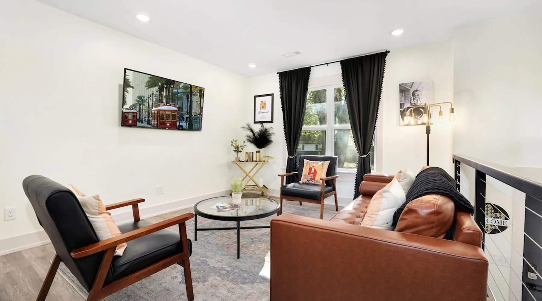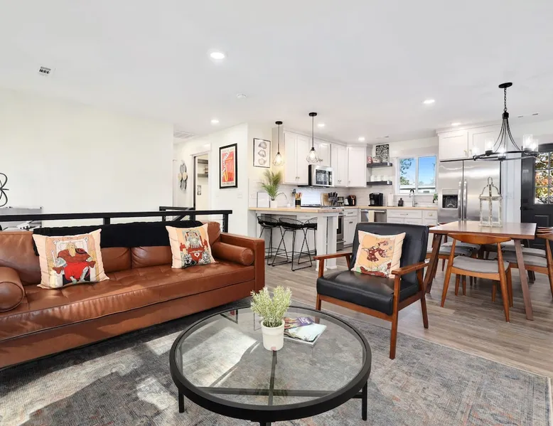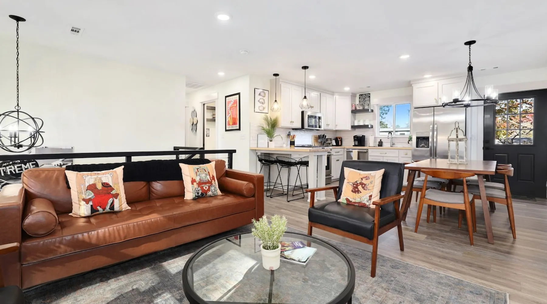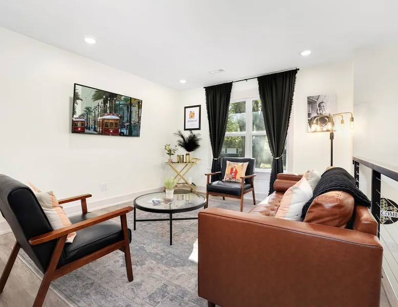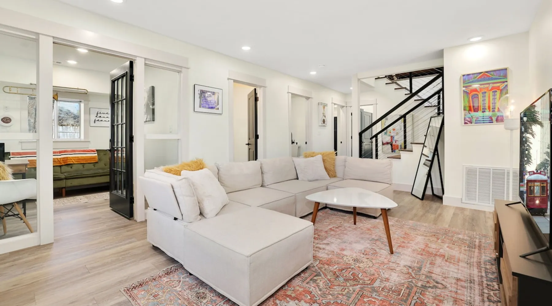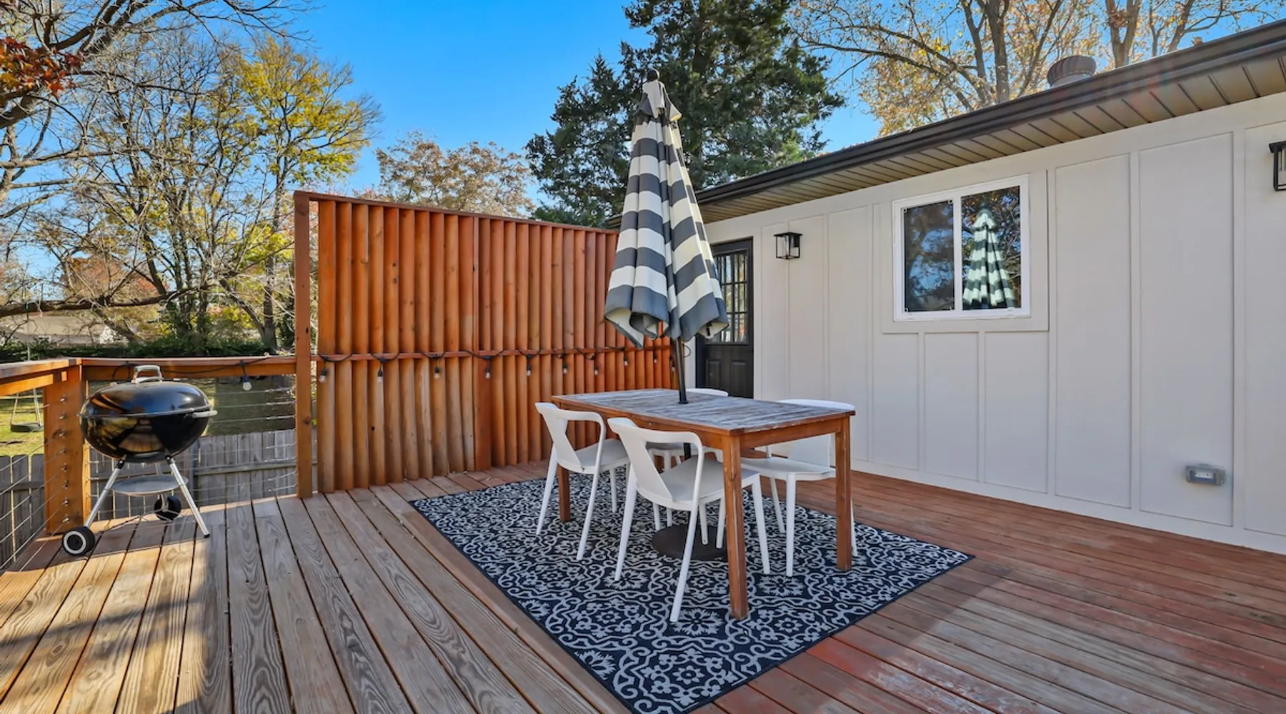 This downtown Bentonville charmer is a New Orleans inspired 4 bedroom, 3 bathroom home that sleeps 11! We are located just half a mile from Downtown Bentonville, 2 miles from Crystal Bridges Museum, and ONLY 1 block from access to the Razorback Greenway. - Just a 15-minute walk to downtown Bentonville Square - Family friendly and bike friendly - walk/bike everywhere - Professionally cleaned & sanitized - Self Check-In - Fully equipped kitchen - Washer/dryer in-unit The space - 1/2 a mile from the Bentonville Square! Walk everywhere during your stay. - 1 block from Razorback Greenway - NWA's premier biking, running and walking path. - 2 miles from Crystal Bridges and the Momentary! - MTB-friendly - all of the Bentonville trails are easily-accessible from the house. Bike racks available outside. - TWO living spaces with cozy seating and large smart TV's. - Private backyard with grill, dining table, and gas fire pit. - Office space/ Music lounge with CD player and Jazz CD's. For Mountain Bikers: - Bike everywhere - Bike racks provided - 6-minute bike ride to Slaughter Pen Trailhead - 11-minute bike ride to Park Springs Trailhead - 12-minute bike ride to Coler Mountain Bike Preserve For Families: - Pack-n-play and high chair - Kids’ plates, bowls and cups - Child gate - Walk to Bogle Park - Walk to Dave Peel Park - Walk to downtown Bentonville Plus, this home is: 0.7 mile (3 min) from Downtown Bentonville 1 miles (4 min) from Walmart Home Office 2 mile (7 min) from Scott Family Amazeum 2 mile (7 min) from Crystal Bridges Museum of American Art 1.5 mile (6 min) from The Momentary 13 miles (26 min) from Northwest Arkansas National Airport Walk to Walmart Supercenter Less than a mile from various restaurants -- BEDROOMS -- This newly renovated home has four spacious bedrooms. There are two bedrooms and one living area located on the main level of the house. The master bedroom features a king-size bed, and a Smart TV to watch your favorite shows. It also includes an ensuite bathroom plus a large walk-in closet. The second bedroom is outfitted with a queen-size bed and closet. The third and fourth bedrooms are located on the lower level. The third bedroom features a king-size bed and closet. The fourth bedroom includes a full-over-full bunk bed and closet space. If you’re traveling with little ones feel free to use the pack n’ play, high chair, and children’s dinnerware! -- BATHROOMS -- There are three FULL bathrooms. The first one is attached to the master bedroom. The second bathroom is located in the hallway between the kitchen and the main level bedrooms. The third bathroom is located on the lower level next to the living room. All bathrooms include towels and essential toiletries (body wash, shampoo, conditioner). -- KITCHEN -- After hitting the trails or sightseeing, prepare your favorite meal in the fully loaded kitchen with everything you’ll need for cooking and baking. Aside from all the kitchen basics, you’ll also find a toaster, a blender, and an air fryer. If you’re traveling with young ones, there are kids' plates, bowls, and cups available for use in addition to a high chair. Sip on morning coffee or tea on the back deck and take in the beautiful Northwest Arkansas sunrise. Complimentary coffee, k-cups and tea provided. When it comes time for enjoying your meals, you can head over to the beautiful wood dining table that seats six, plus bar seating. The open kitchen/dining area is perfect for morning chats, family meals and game night. -- LIVING ROOM -- There are two living spaces in the house. The main level living room is located next to the kitchen and is a great space for chatting while whipping up culinary delights. The second living room is located on the lower level. It is the perfect spot for lounging around with family and friends, or watching a movie on the Smart TV. -- OUTDOOR AREA -- Our home is set up to spend plenty of time outside in the fresh air! The backyard features a charcoal grill, an outdoor dining table, and a gas fire pit! -- Book Today & Enjoy the Best of Bentonville! -- To abide by all legal requirements and property rules, you WILL be asked to provide a copy of your official government-issued photo ID, confirm your contact information, pass through our verification portal and, in some instances, complete a criminal background check. Failure to provide these documents will result in a cancellation and denied entry. Guest access Guests have access to the entire property, as well as the fenced-in backyard. Other things to note Sojora is available 9am - 5pm for all non-emergency requests and extended hours for emergencies. Connect with us @staysojora or visit sojora dot com to inquire about our management and design services. We look forward to hosting you!