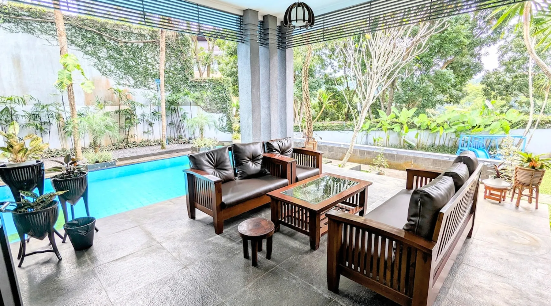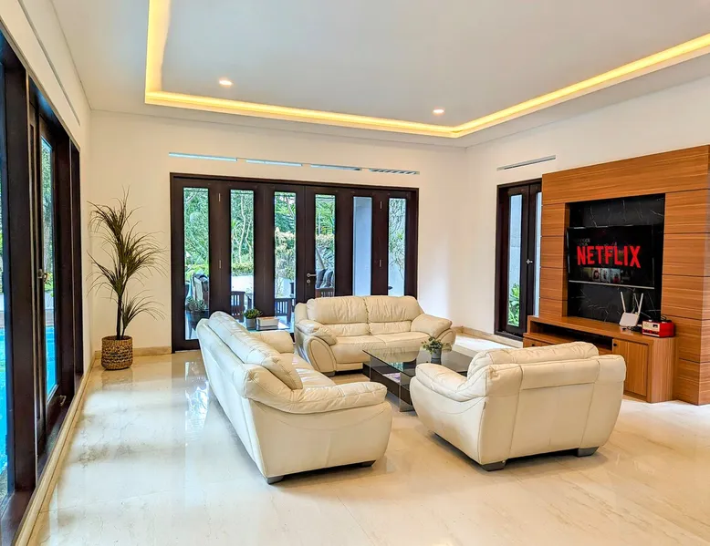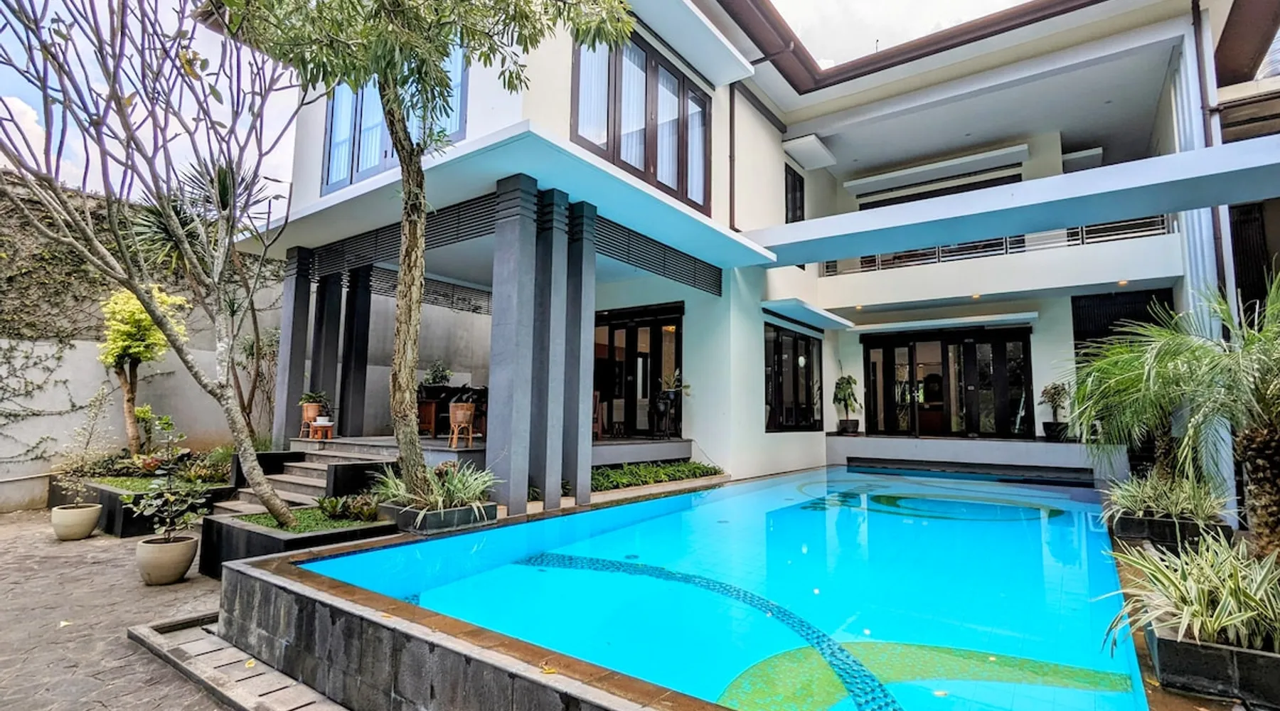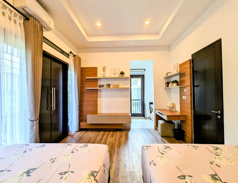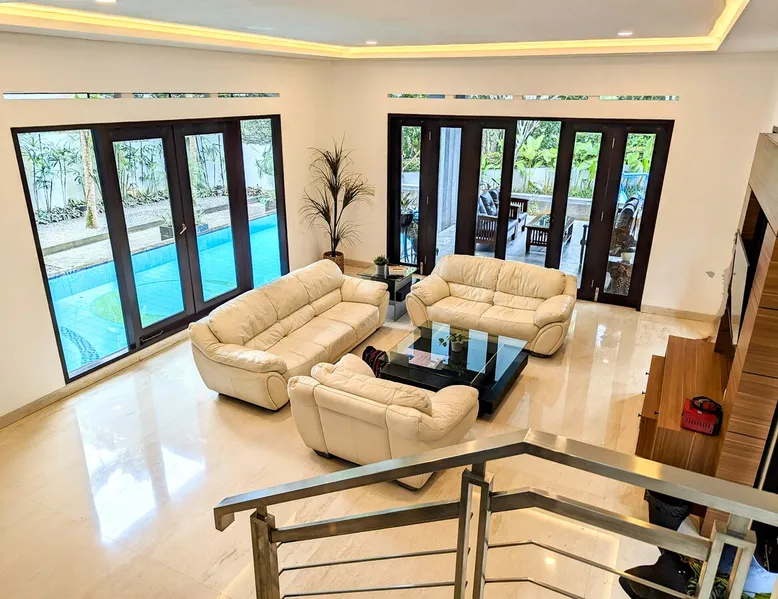 📍Kompleks Resor Dago Pakar, Bandung 🙏🏼 Jika di airbnb bookable artinya available. Feel free to book instantly. Bring the whole family to this great place with lots of room for fun. This 5-bedrooms + 4-bathrooms villa for 17-20 pax is equipped with large swimming pool (cold water), pingpong, Nintendo, books reading, Netflix, Kids playground, and many more. The space 2-story luxury villa, 5 bedrooms (all equipped with air conditioning) + 4 bathrooms, for 17 people. Can accommodate 20 people with an additional 3 folding mattresses @150k/bed , including extra bed sheets and bath towels. 1ST FLOOR 🛏 Room 1 (2 people) • 2x Double-size beds 120x200cm 🛏 Room 2 (4 people) • 2x King-size beds 180x200cm * Bathroom next to kitchen 2ND FLOOR 🛏 Room 3 (4 people) • 2x King-size beds 180x200cm (en-suite bathroom + bathtub) 🛏 Room 4 (3 people) • 1x Super-kingsize bed 200x200cm (en suite bathroom) 🛏 Room 5 (4 people) • 2x Queen-size beds 160x200cm (en suite bathroom) Guest access The carport area can accommodate parking for 6 cars. The villa's capacity is max 20 people, no more. Thank you.