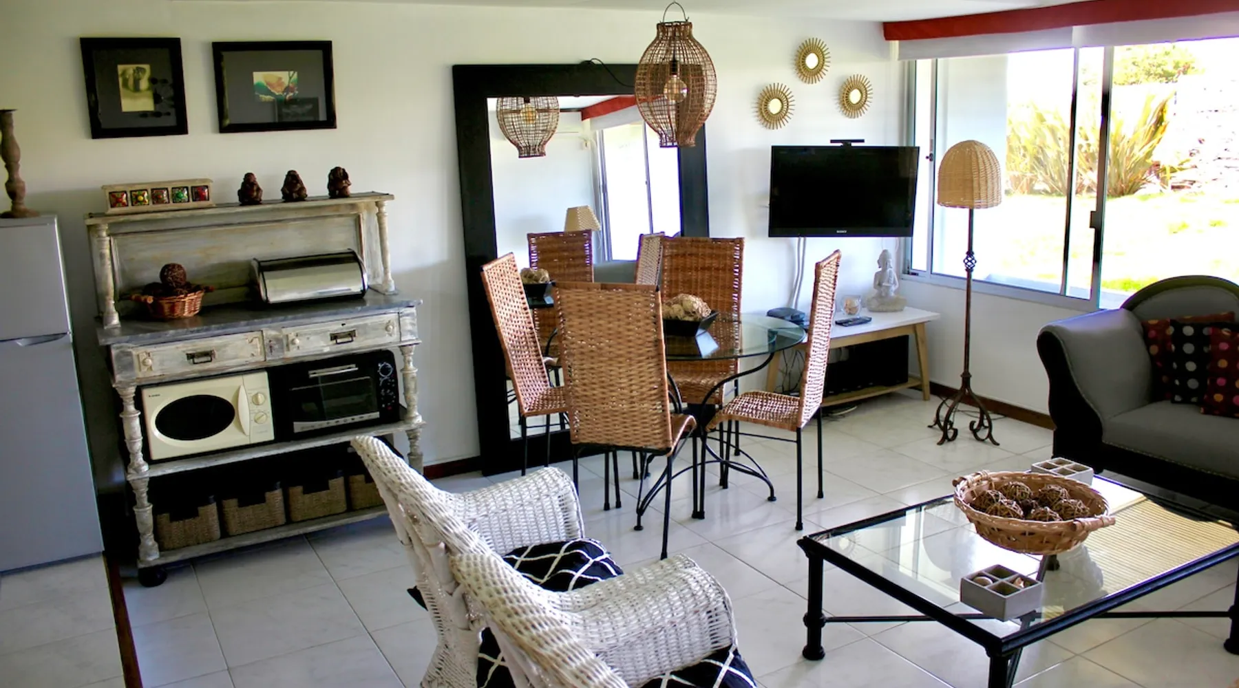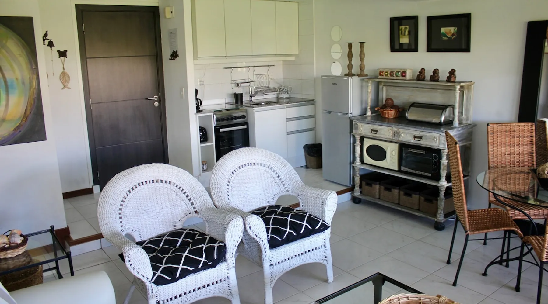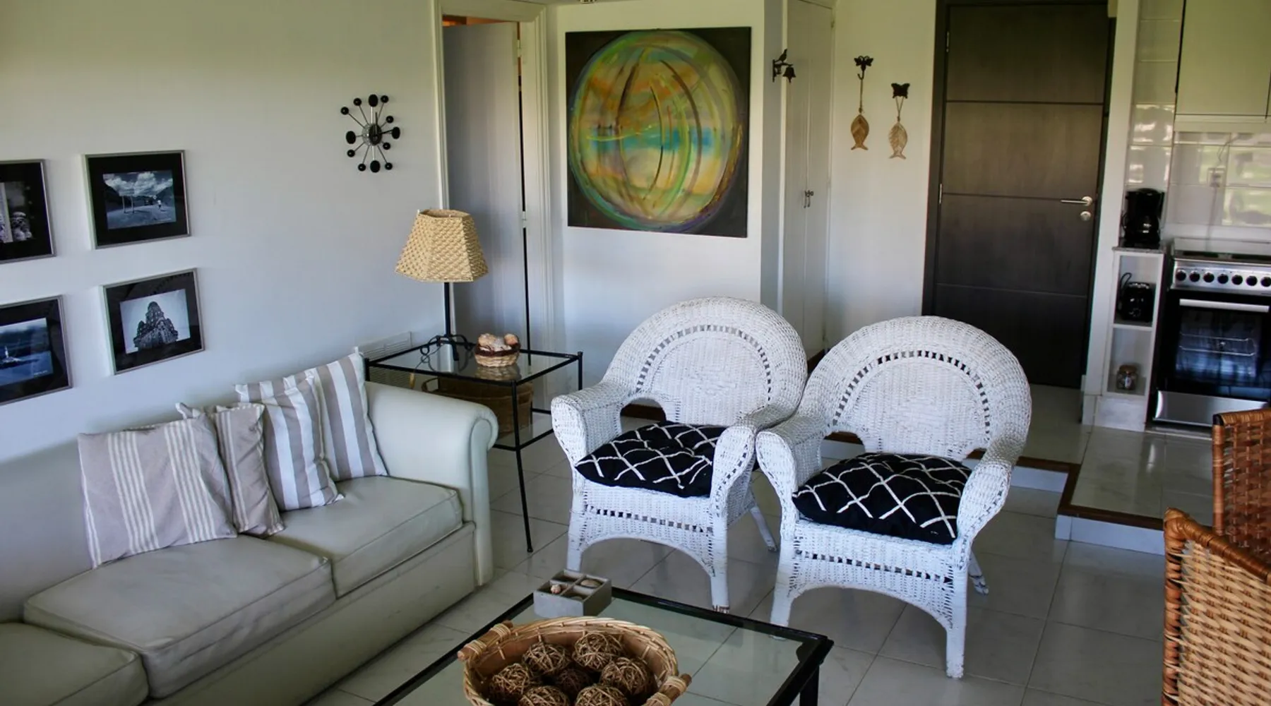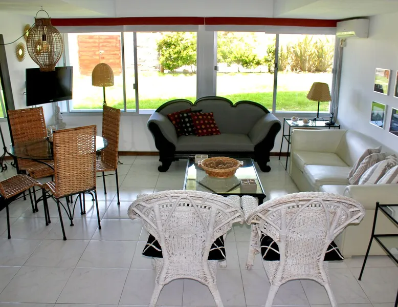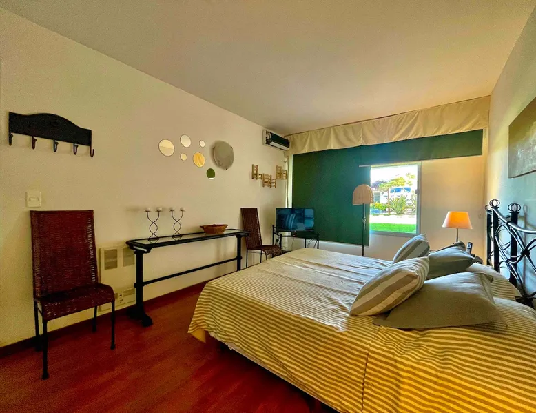 2 rooms apartment for 4 people (2 adults and 2 children) in the Esturion de Montoya building, in La Barra, Playa Montoya. Includes amenities of the building (beach service, maid service, swimming pool, wifi in common spaces) and the apartment (individual wifi, TV cable service, kitchenware and dining service for up to 6 people). In the bedroom, there are two twin beds that can be made double. Sofa bed in the living room for 2 minors. See The space It is located half a block from the beach, no need to cross the route. Beach service is provided directly on the spot, without the need to charge anything. There is a parking space for the apartment's exclusive cars. 24-hour security. Excellent location in La Barra, close to everything! IMPORTANT: High season runs from Dec 1 to 31-Mar. During the rest of the year there may be maintenance in the apartment, so the fee is reduced. Also, in the off-season, sheets and towels are not provided. In high season yes, for a weekly cost of US $20. Remember that it is not a hotel, it is an apartment (bring personal utensils such as shampoo and soap) thanks! The keys are removed at the front desk. If you have any questions or queries, there is maintenance and assistance service at the building. We are 24 hours online. Guest access The apartment comes with everything you need for cooking right there. Utensils and tableware for up to 6 diners. The common areas are very comfortable. Pool, beach service, and maid service stand out. Other things to note The apartment is family-friendly and designed to provide a comfortable stay for the guest.