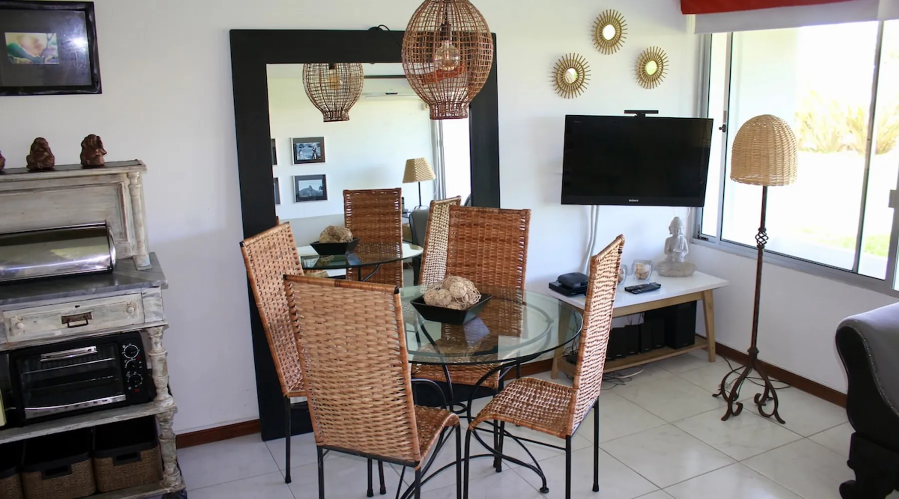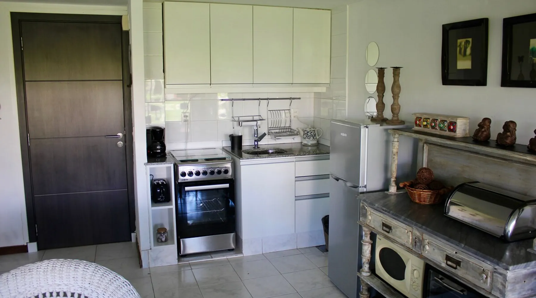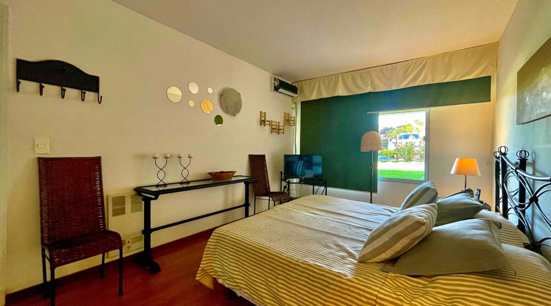 2 rooms apartment for 4 people (2 adults and 2 children) in the Esturion de Montoya building, in La Barra, Playa Montoya. Includes amenities of the building (beach service, maid service, swimming pool, wifi in common spaces) and the apartment (individual wifi, TV cable service, kitchenware and dining service for up to 6 people). In the bedroom, there are two twin beds that can be made double. Sofa bed in the living room for 2 minors. See The space It is located half a block from the beach, no need to cross the route. Beach service is provided directly on the spot, without the need to charge anything. There is a parking space for the apartment's exclusive cars. 24-hour security. Excellent location in La Barra, close to everything! IMPORTANT: High season runs from Dec 1 to 31-Mar. During the rest of the year there may be maintenance in the apartment, so the fee is reduced. Also, in the off-season, sheets and towels are not provided. In high season yes, for a weekly cost of US $20. Remember that it is not a hotel, it is an apartment (bring personal utensils such as shampoo and soap) thanks! The keys are removed at the front desk. If you have any questions or queries, there is maintenance and assistance service at the building. We are 24 hours online. Guest access The apartment comes with everything you need for cooking right there. Utensils and tableware for up to 6 diners. The common areas are very comfortable. Pool, beach service, and maid service stand out. Other things to note The apartment is family-friendly and designed to provide a comfortable stay for the guest.