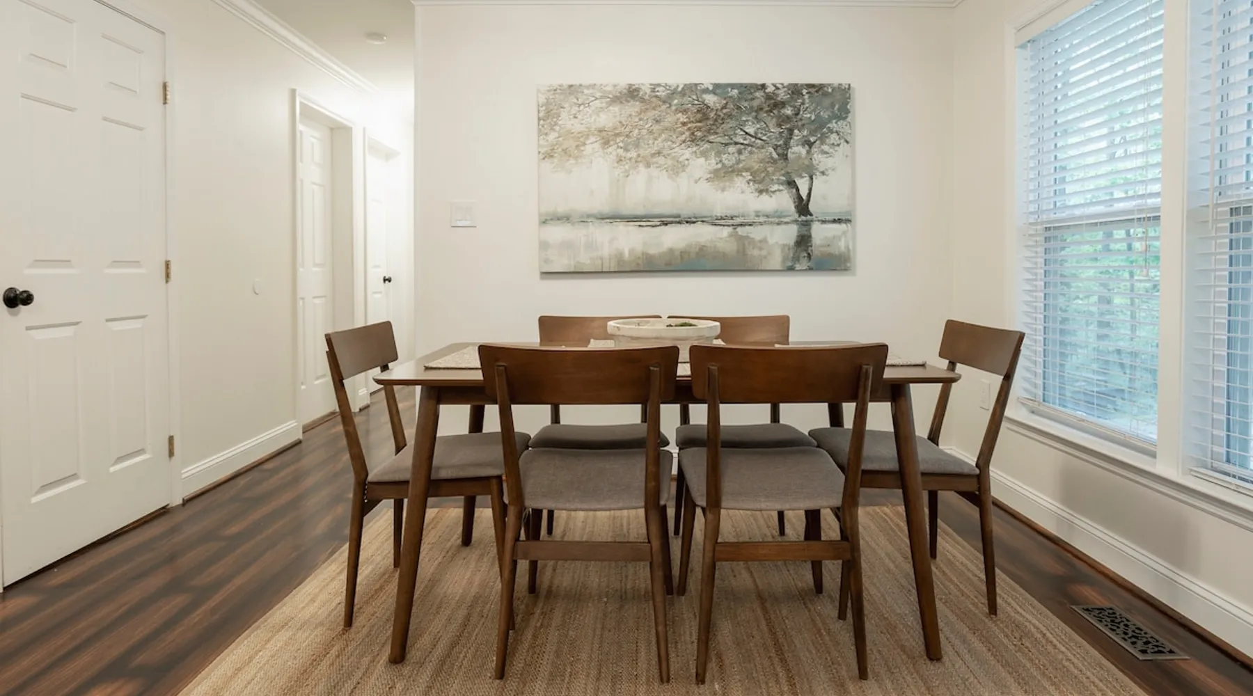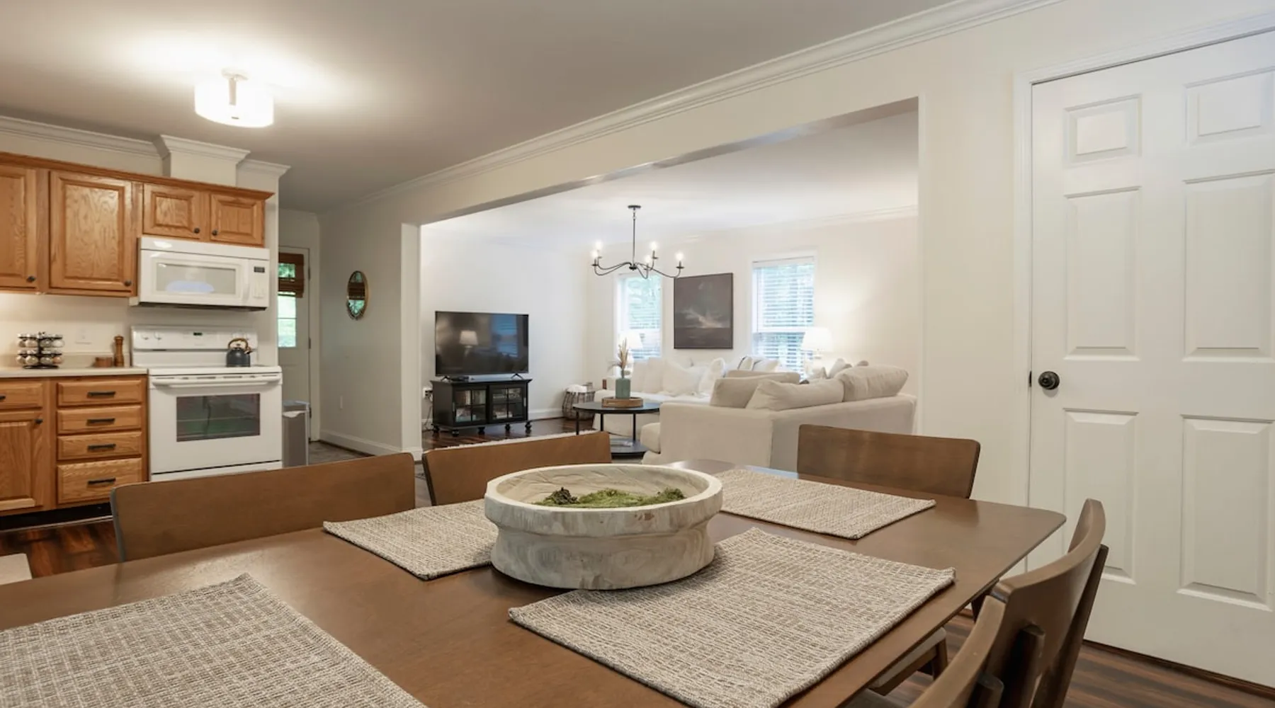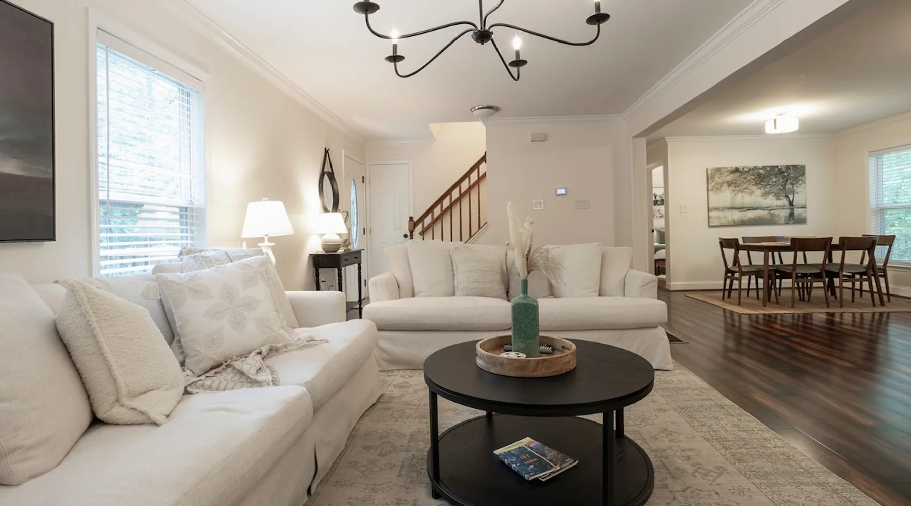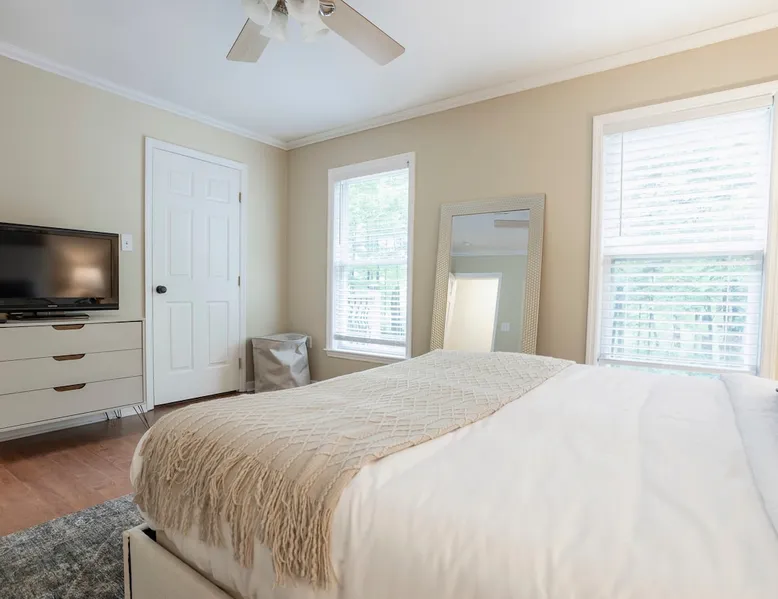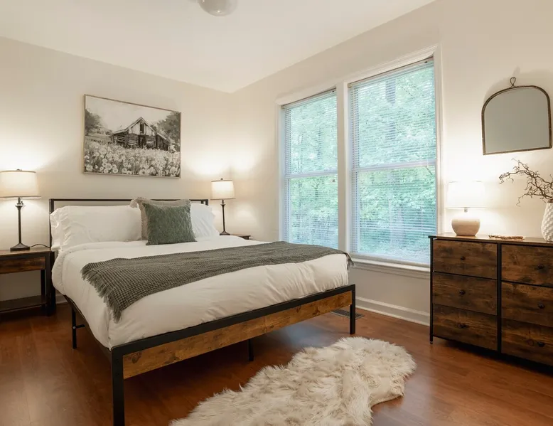 Welcome to our spacious family retreat in Asheville! Nestled in a serene neighborhood just minutes from the iconic Blue Ridge Parkway and vibrant downtown Asheville, our cozy home is the perfect getaway for families and groups seeking a memorable mountain escape. The space The Space Our spacious home comfortably accommodates up to 10 guests with 4 well-appointed bedrooms and 2.5 bathrooms. The master suite features a queen-sized bed and an en-suite bathroom. The second bedroom offers a queen-sized bed, while the third and forth bedrooms are both located on the second level, both equipped with queen beds. Two large sofas in the living room provides extra sleeping space. Living Area The open-concept living area is designed for relaxation and quality family time. The cozy living room boasts two large comfy sofas and a large flat-screen TV with streaming services. The adjacent dining area seats six comfortably, with additional seating at the kitchen island. Kitchen The fully-equipped kitchen has everything you need to prepare delicious home-cooked meals. Enjoy modern appliances, ample counter space, and a variety of cookware and utensils. A coffee maker, toaster, and microwave are also provided for your convenience. Outdoors There is a huge backyard where your kids can run and have fun. There's a large deck with seating for the family to have an outdoor dinner together. There's also an attached two car garage that is for you use during your stay.