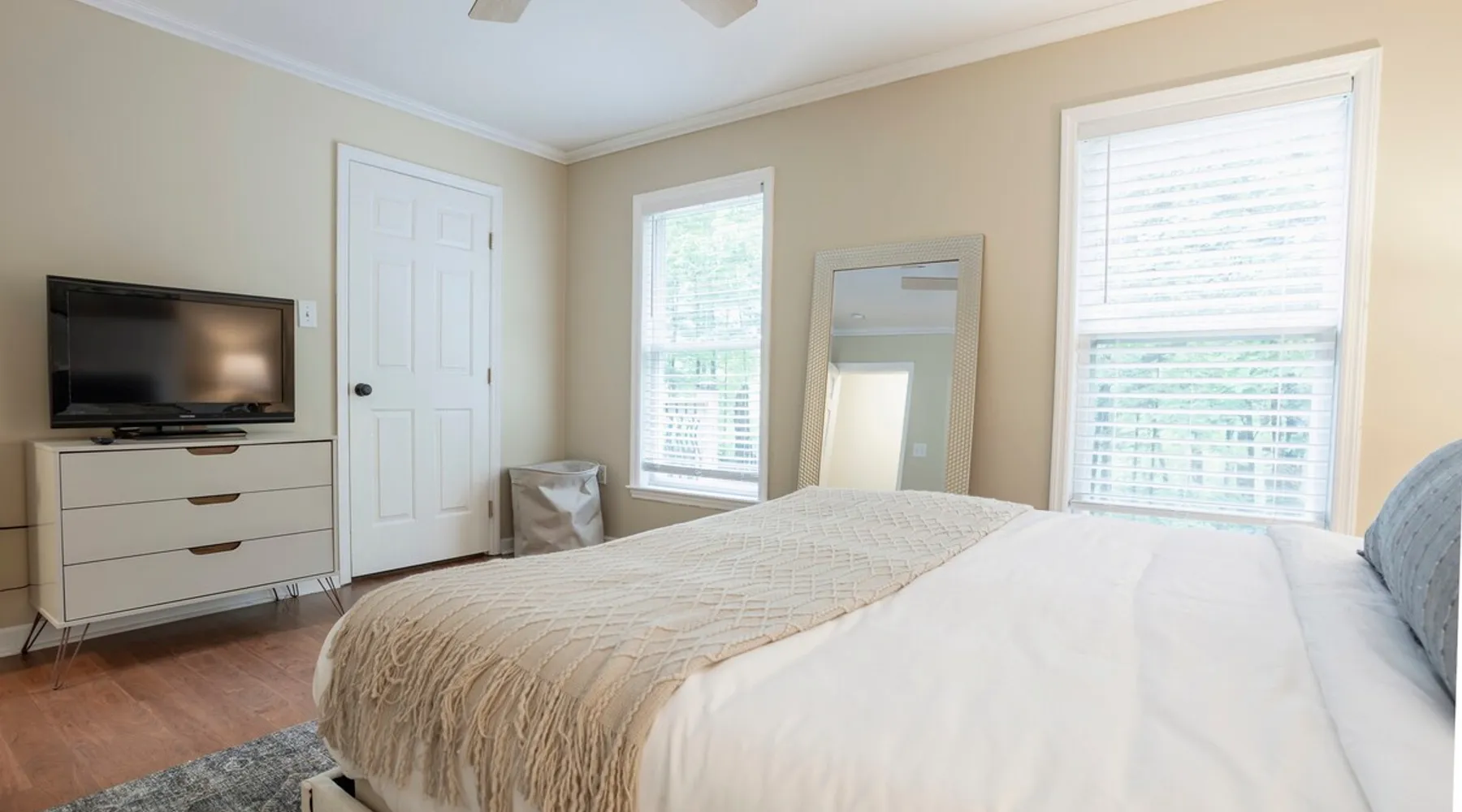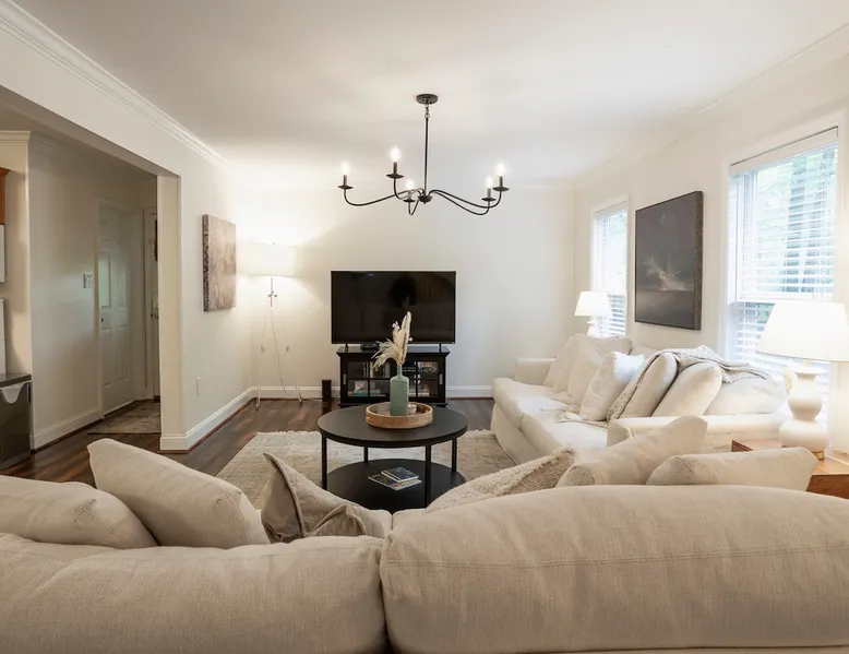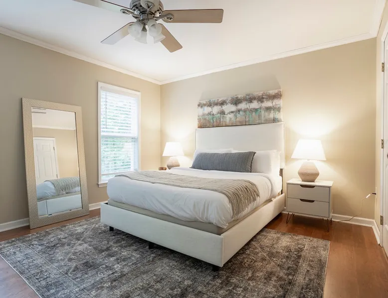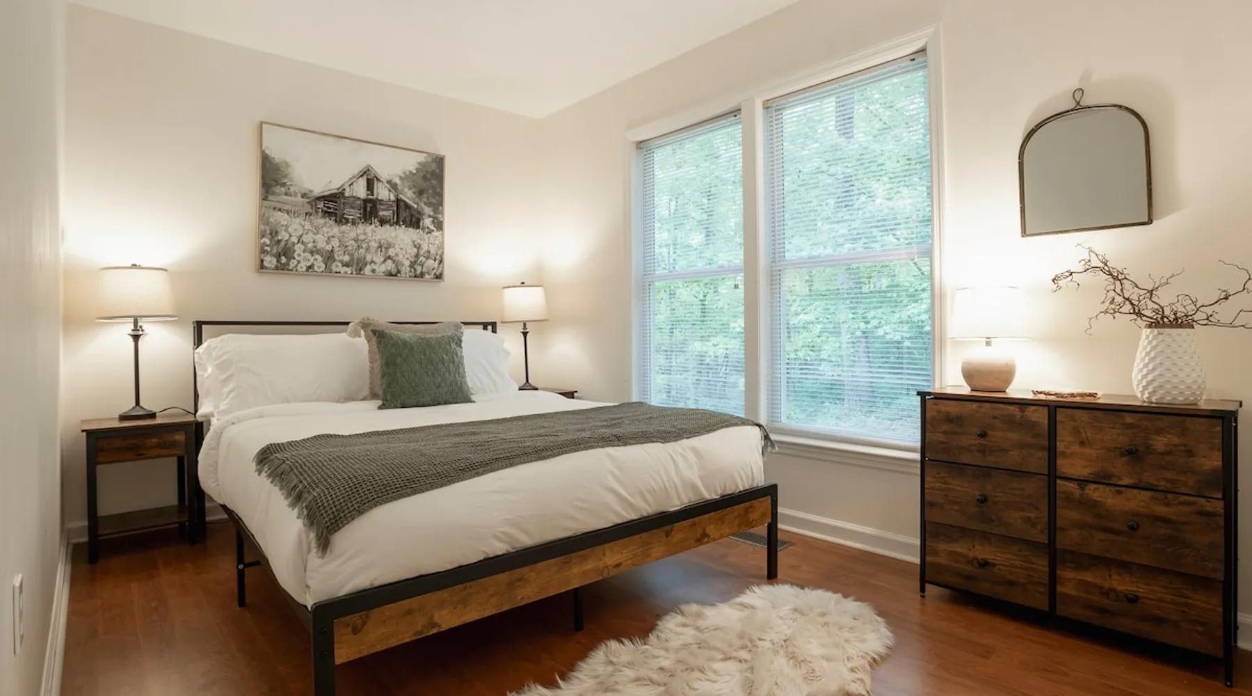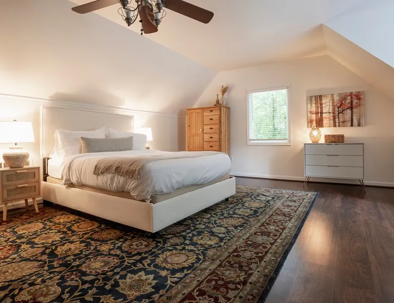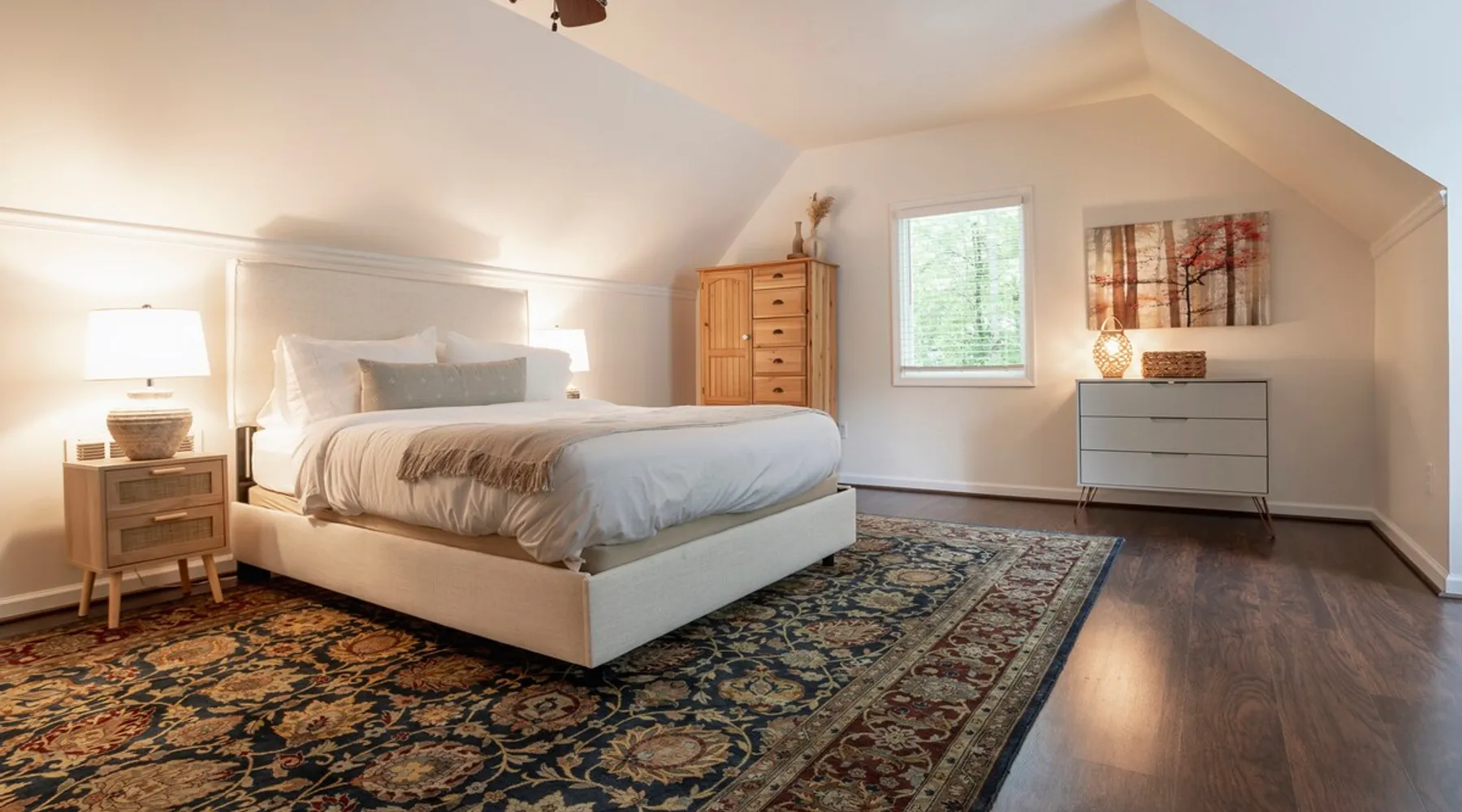 Welcome to our spacious family retreat in Asheville! Nestled in a serene neighborhood just minutes from the iconic Blue Ridge Parkway and vibrant downtown Asheville, our cozy home is the perfect getaway for families and groups seeking a memorable mountain escape. The space The Space Our spacious home comfortably accommodates up to 10 guests with 4 well-appointed bedrooms and 2.5 bathrooms. The master suite features a queen-sized bed and an en-suite bathroom. The second bedroom offers a queen-sized bed, while the third and forth bedrooms are both located on the second level, both equipped with queen beds. Two large sofas in the living room provides extra sleeping space. Living Area The open-concept living area is designed for relaxation and quality family time. The cozy living room boasts two large comfy sofas and a large flat-screen TV with streaming services. The adjacent dining area seats six comfortably, with additional seating at the kitchen island. Kitchen The fully-equipped kitchen has everything you need to prepare delicious home-cooked meals. Enjoy modern appliances, ample counter space, and a variety of cookware and utensils. A coffee maker, toaster, and microwave are also provided for your convenience. Outdoors There is a huge backyard where your kids can run and have fun. There's a large deck with seating for the family to have an outdoor dinner together. There's also an attached two car garage that is for you use during your stay.