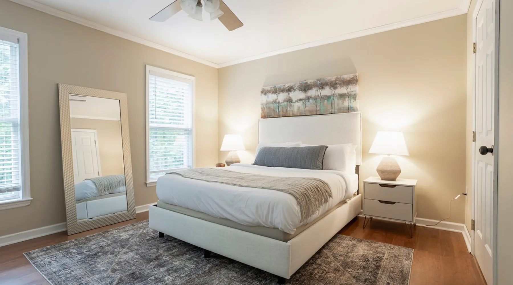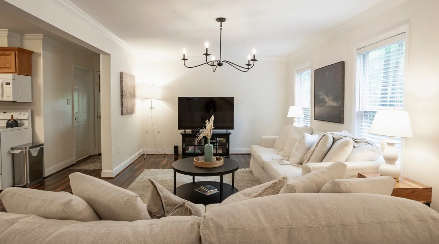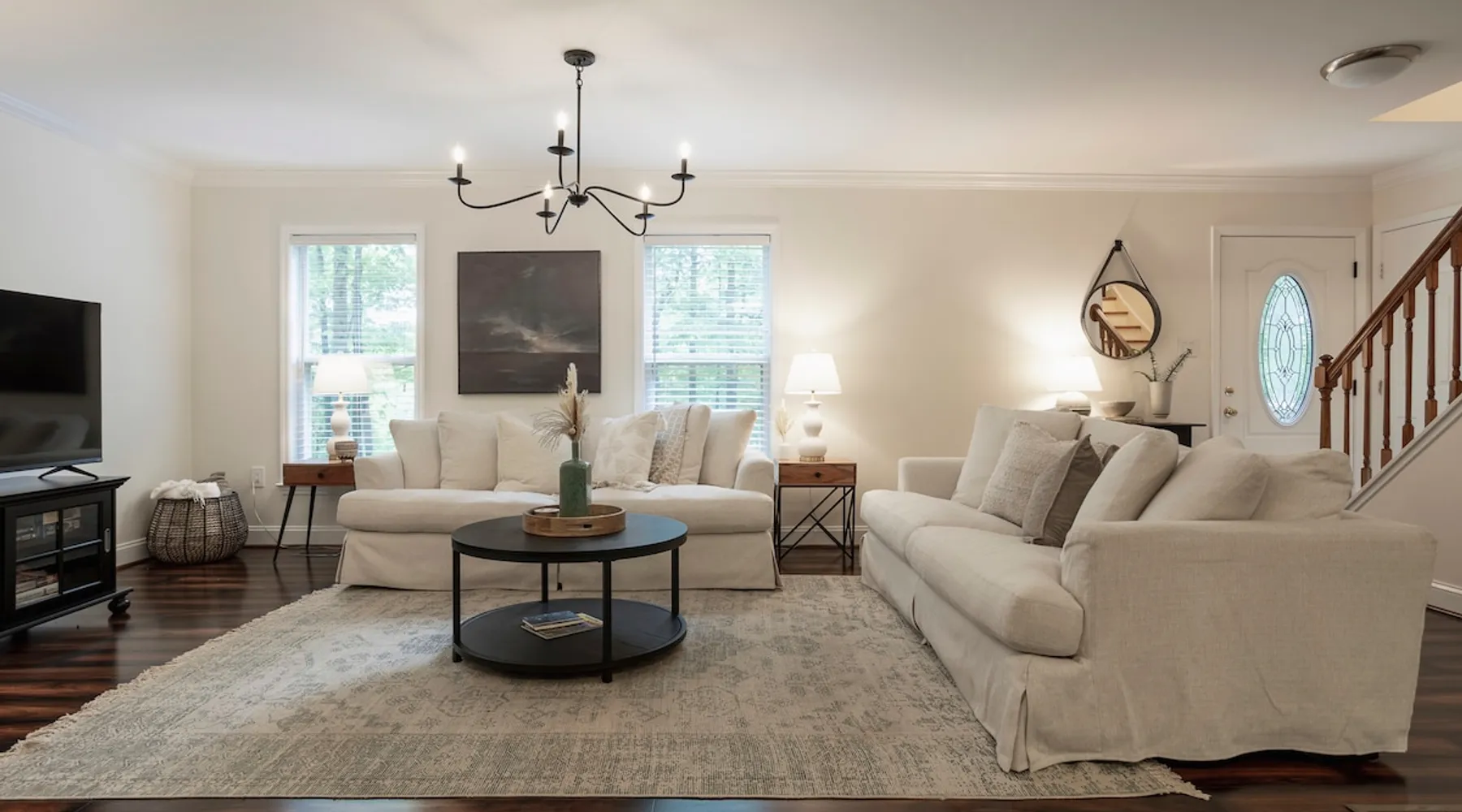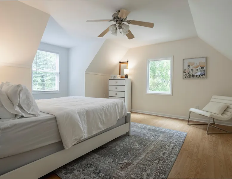 Welcome to our spacious family retreat in Asheville! Nestled in a serene neighborhood just minutes from the iconic Blue Ridge Parkway and vibrant downtown Asheville, our cozy home is the perfect getaway for families and groups seeking a memorable mountain escape. The space The Space Our spacious home comfortably accommodates up to 10 guests with 4 well-appointed bedrooms and 2.5 bathrooms. The master suite features a queen-sized bed and an en-suite bathroom. The second bedroom offers a queen-sized bed, while the third and forth bedrooms are both located on the second level, both equipped with queen beds. Two large sofas in the living room provides extra sleeping space. Living Area The open-concept living area is designed for relaxation and quality family time. The cozy living room boasts two large comfy sofas and a large flat-screen TV with streaming services. The adjacent dining area seats six comfortably, with additional seating at the kitchen island. Kitchen The fully-equipped kitchen has everything you need to prepare delicious home-cooked meals. Enjoy modern appliances, ample counter space, and a variety of cookware and utensils. A coffee maker, toaster, and microwave are also provided for your convenience. Outdoors There is a huge backyard where your kids can run and have fun. There's a large deck with seating for the family to have an outdoor dinner together. There's also an attached two car garage that is for you use during your stay.