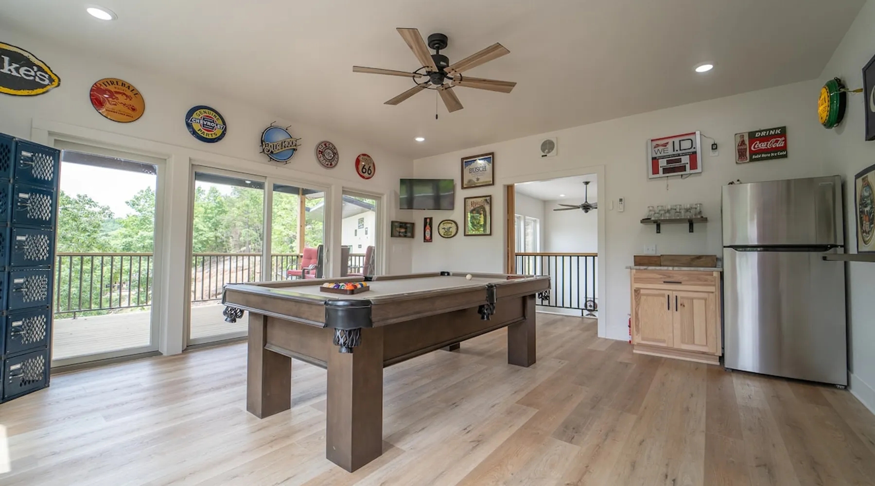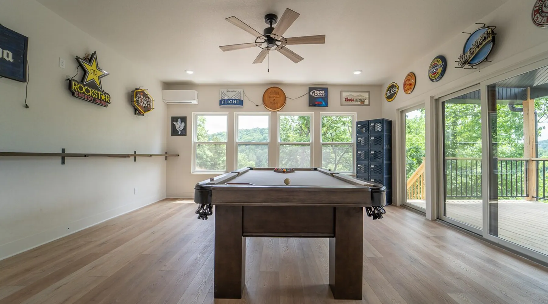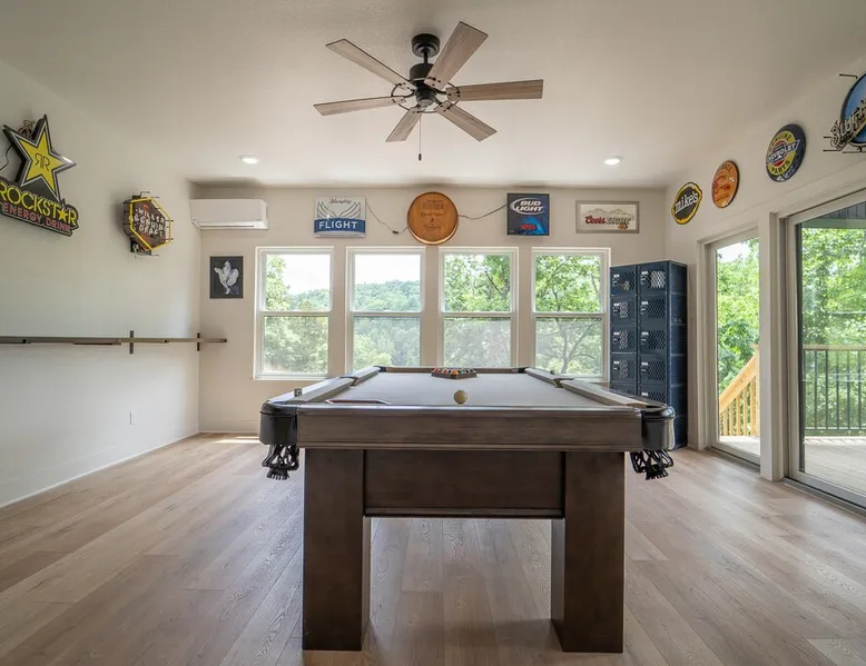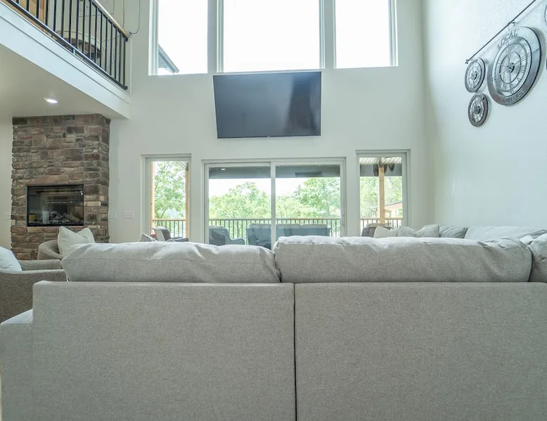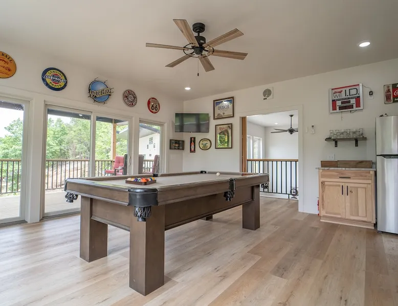 Jasper Cove offers a peaceful getaway for you and 13+ of your family members and or friends. Jasper Cove sits lakefront in Beaver Lakes Clear Point Cove which is visible from each room in the house! Enjoy lake days, hiking trails through neighboring Hobbs State Park, and/or spend your time relaxing at the house. Jasper Cove will keep you plenty entertained with its well equipped kitchen, game room with a pool table, cards and games, fire pit, hot tub and more! The space Each room in Jasper Cove is spacious and well equipped with linens and extra amenities. The two main level bedrooms have en suites with double sinks and large showers. Upstairs, another large bathroom is available to the guests occupying the 3rd bedroom and bunkroom. Safety gates are provided at each end of the lower deck, along with at each set stairs to keep your littles safe. Find everything you need to cook, grill, serve, shower, sleep, and more. Outside enjoy two large decks, a fire pit, hot tub, and access to the lake. Guest access The utility room upstairs (just off the stairs) is not accessible to guests. It is used as a storage room for our cleaners.