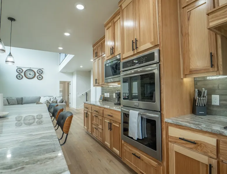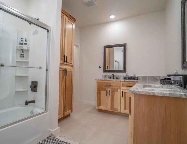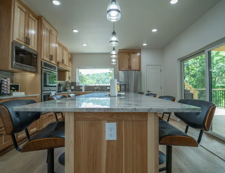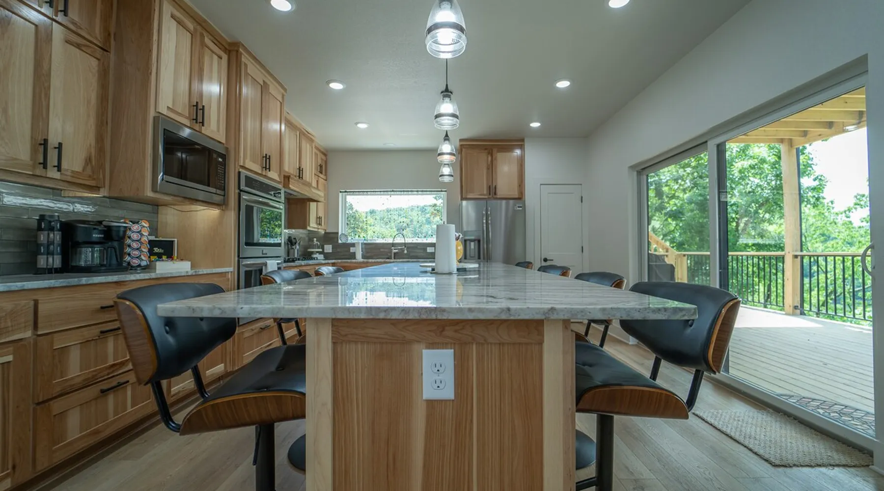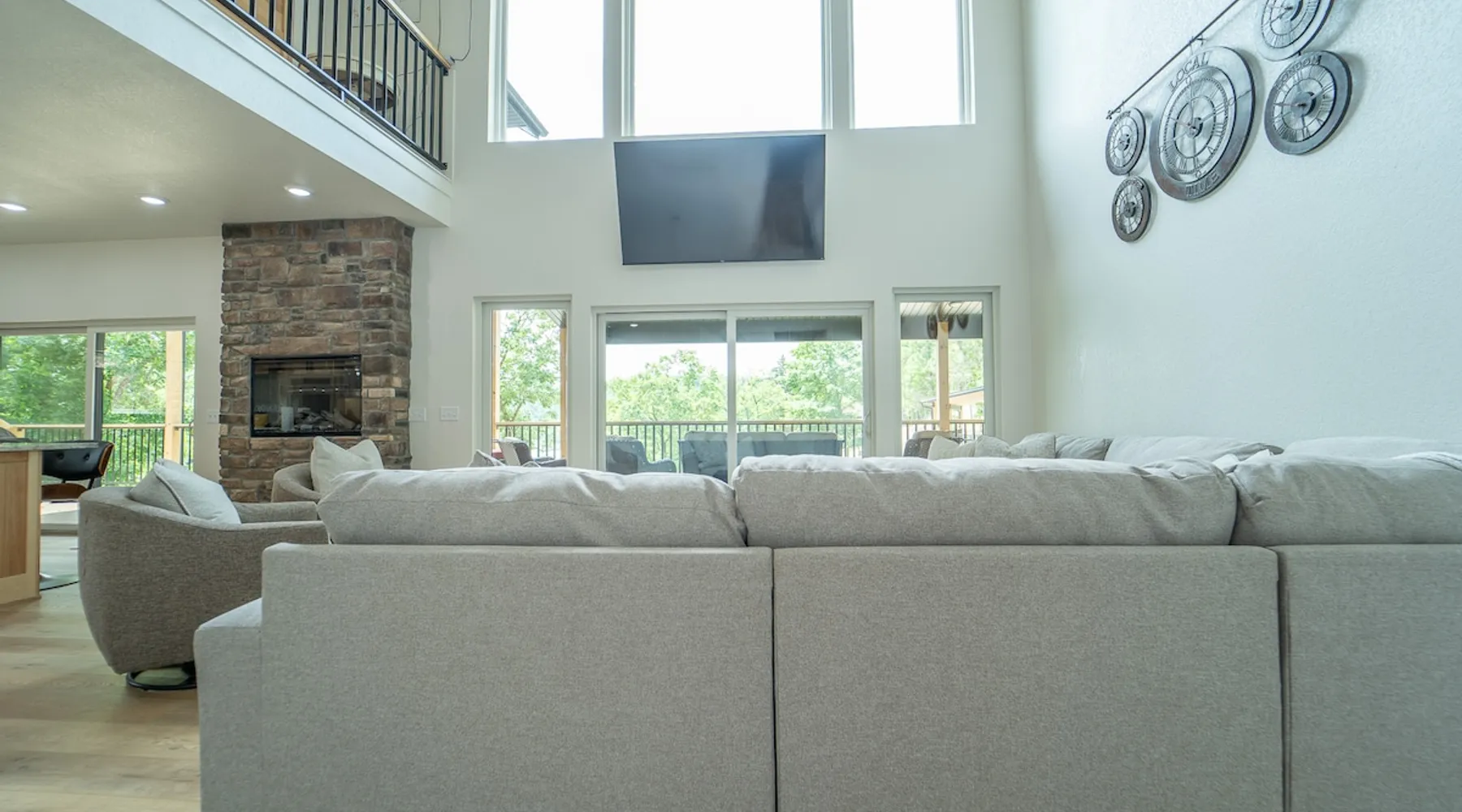Jasper Cove offers a peaceful getaway for you and 13+ of your family members and or friends. Jasper Cove sits lakefront in Beaver Lakes Clear Point Cove which is visible from each room in the house! Enjoy lake days, hiking trails through neighboring Hobbs State Park, and/or spend your time relaxing at the house. Jasper Cove will keep you plenty entertained with its well equipped kitchen, game room with a pool table, cards and games, fire pit, hot tub and more! The space Each room in Jasper Cove is spacious and well equipped with linens and extra amenities. The two main level bedrooms have en suites with double sinks and large showers. Upstairs, another large bathroom is available to the guests occupying the 3rd bedroom and bunkroom. Safety gates are provided at each end of the lower deck, along with at each set stairs to keep your littles safe. Find everything you need to cook, grill, serve, shower, sleep, and more. Outside enjoy two large decks, a fire pit, hot tub, and access to the lake. Guest access The utility room upstairs (just off the stairs) is not accessible to guests. It is used as a storage room for our cleaners.