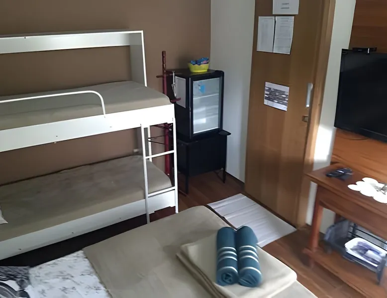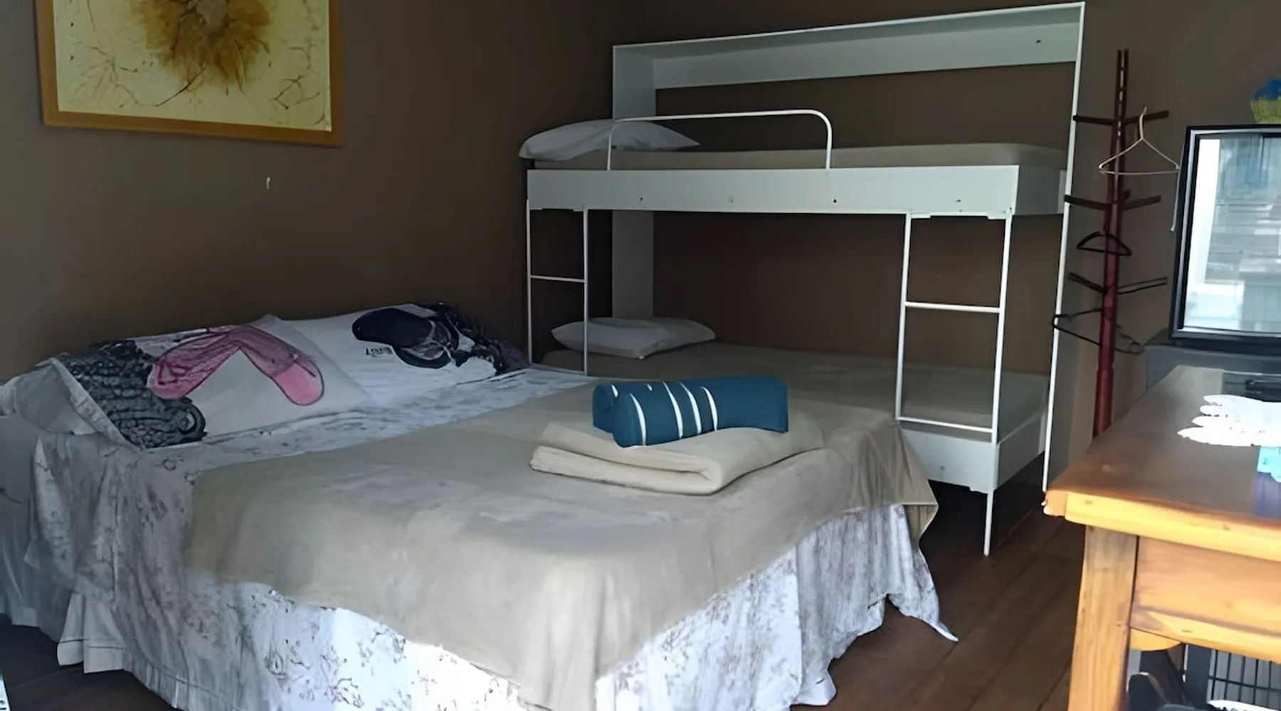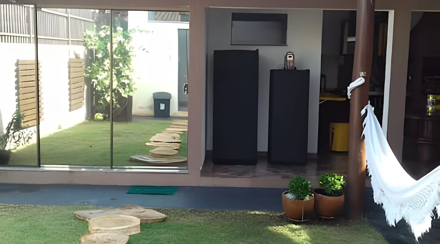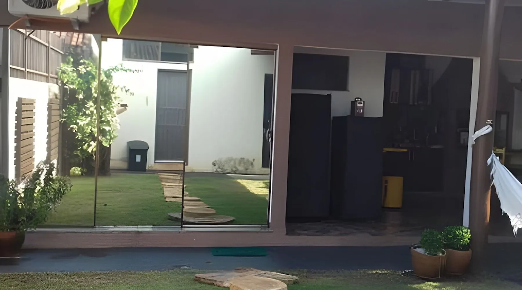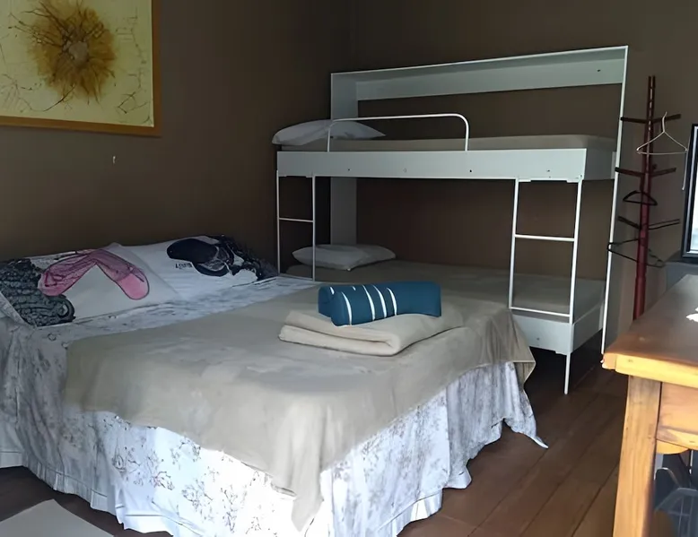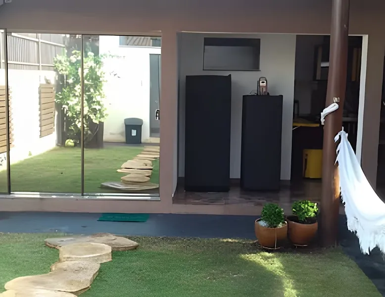 Suite with double bed and two bunk beds and one more mattress if necessary, wardrobes, air conditioning, hairdryer, straightener, bedding, duvets, flat-screen TV (40") with Netflix, Wi-Fi, barbecue grill with skewers and grills, meat board, stove, table and chairs, cutlery, crockery, pots and pans, coffee maker, refrigerator. Close to the center, supermarkets, nightclubs, restaurants, bakery, Anhanguera and Unigran (universities) convenience, beauty salon and Santa Rita hospital. The space The space has a barbecue area with an exclusive suite for guests who can use the entire area behind my house... Dishes and flatware available... Side access, separate from main house. Guest access Guests can use the entire space at the bottom of my residence, including the barbecue and hammocks. Side entrance. If you need a garage, it will be available. Other things to note We have two small dogs that live in the back (do not enter the room), Skye (entizu) and the Moon (1/2 poodle, 1/2 virusata)