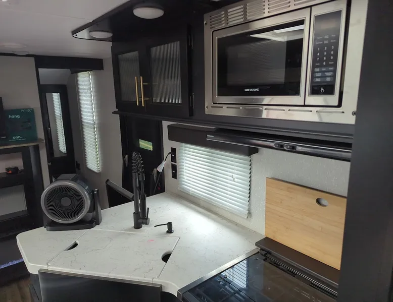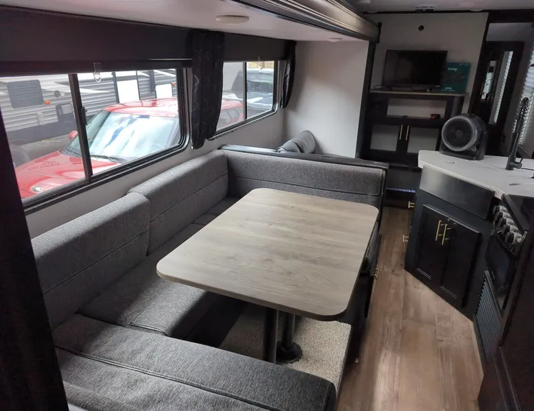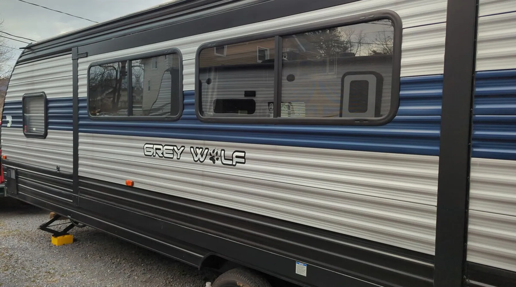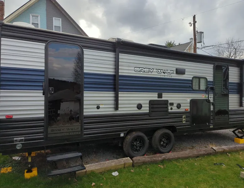 welcome Penn state fans! Are you ready for a great football weekend! The 26DBH is the ultimate family camper, with a double entry and access to the bath from outside. The double bed bunk, with ladder, provides extra sleeping room for kids and adults. The modern custom kitchen, oversized full pantry and extra-large U-shaped dinette with full length drawers give you more than enough storage for camping gear and supplies. The exterior will provide a great entertainment area.